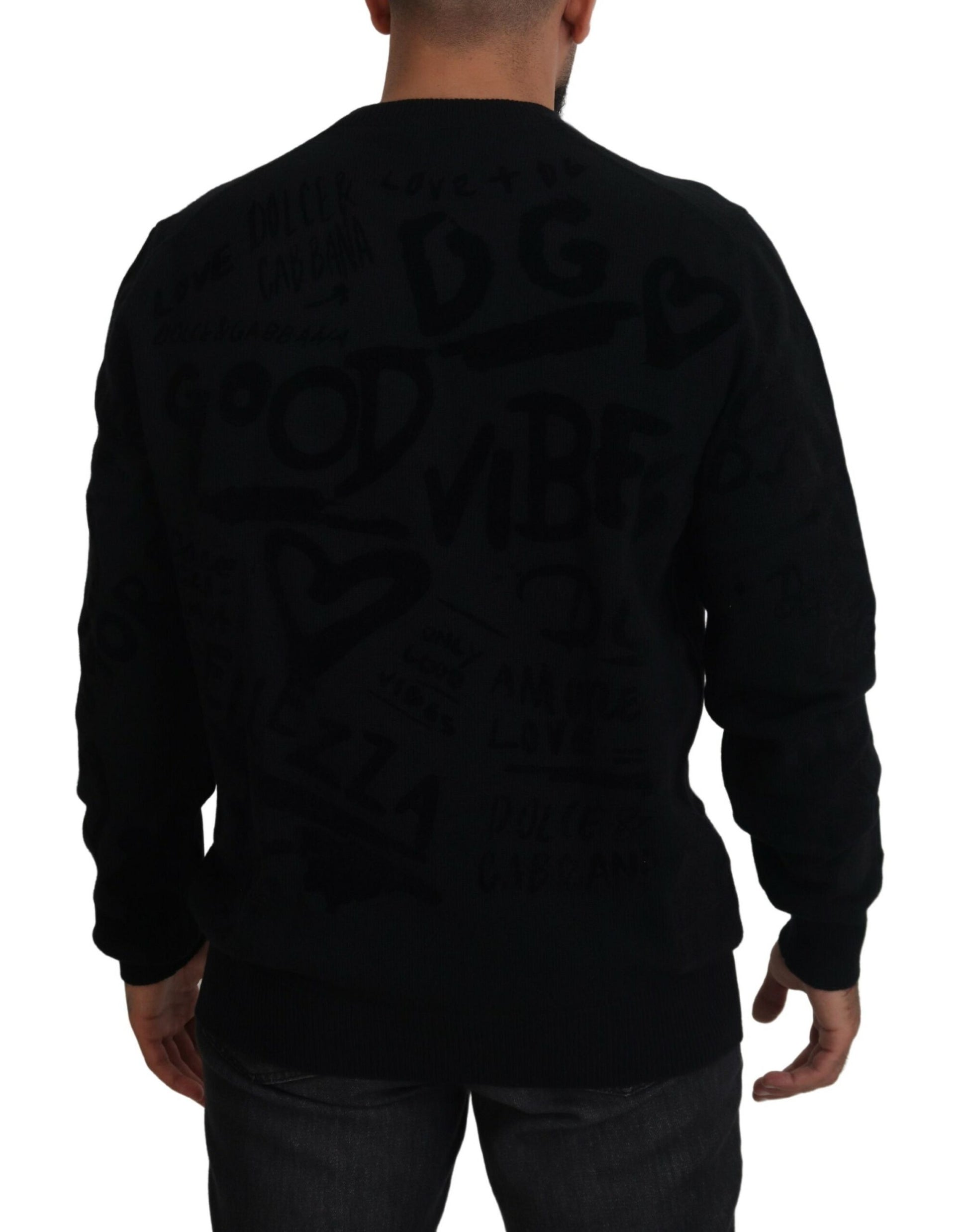 Indulge in the epitome of luxury with this absolutely stunning sweater from the prestigious house of Dolce & Gabbana. Crafted from the finest 100% wool, this crewneck piece is not just a garment but a statement of elegance and sophistication. In a classic black hue, it features the subtle yet distinctive Dolce & Gabbana logo details that set it apart. Designed and made with Italian precision, it’s a wardrobe must-have for those who appreciate enduring style.