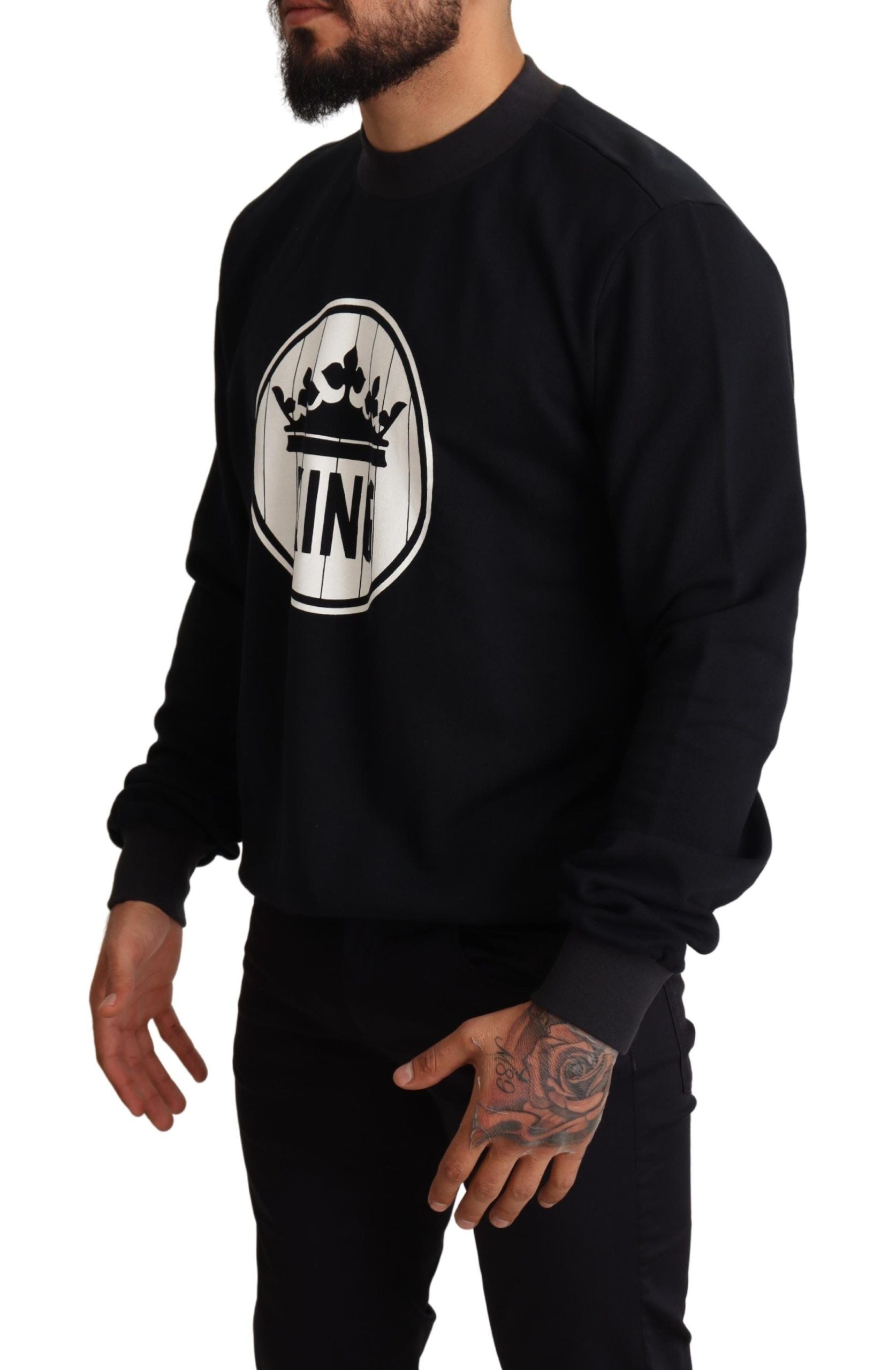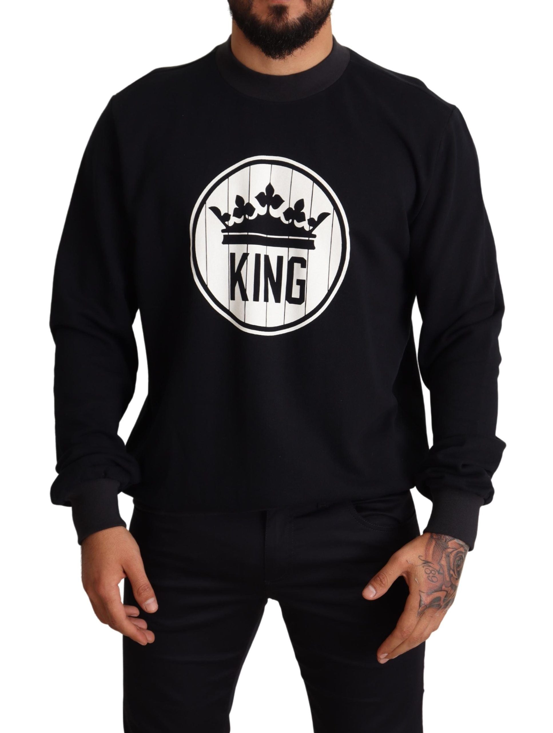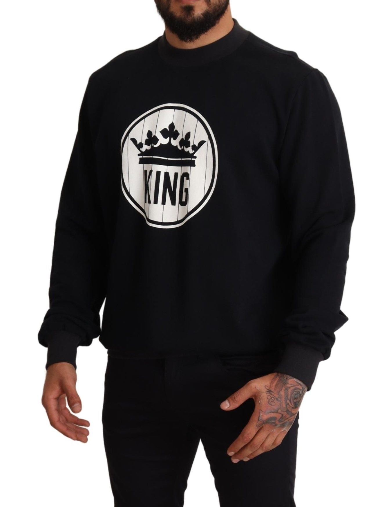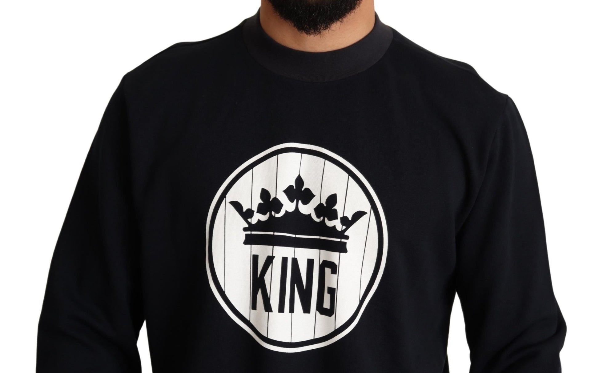 Step into the realm of high fashion with this absolutely stunning, 100% Authentic Dolce & Gabbana pullover sweater. Boasting a majestic crown king print motive, this black crewneck sweater is the embodiment of luxury style. Tailored to perfection, its pure cotton material ensures comfort without compromising on elegance. Crafted in Italy, it features logo details that add a further touch of class to this royal ensemble.