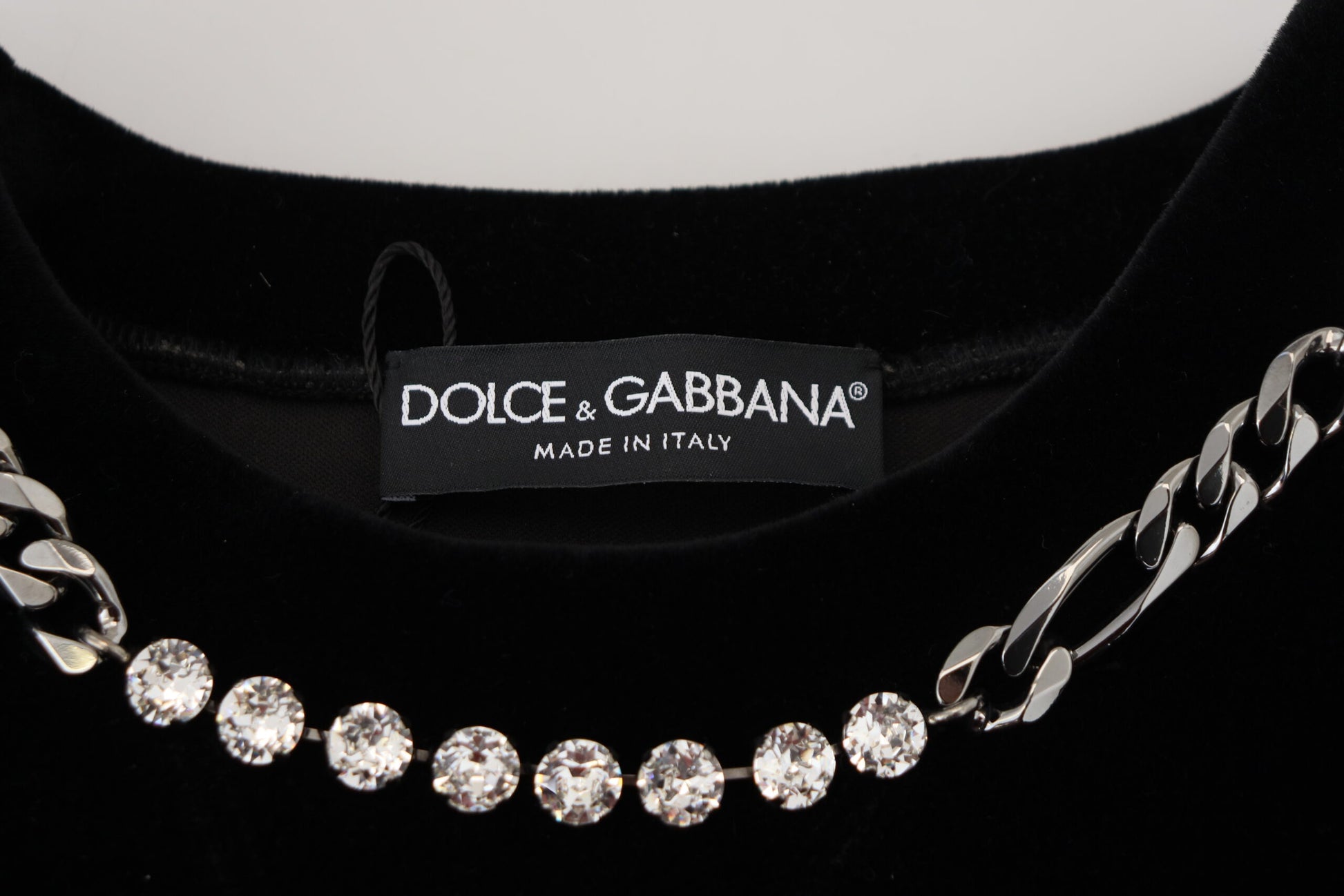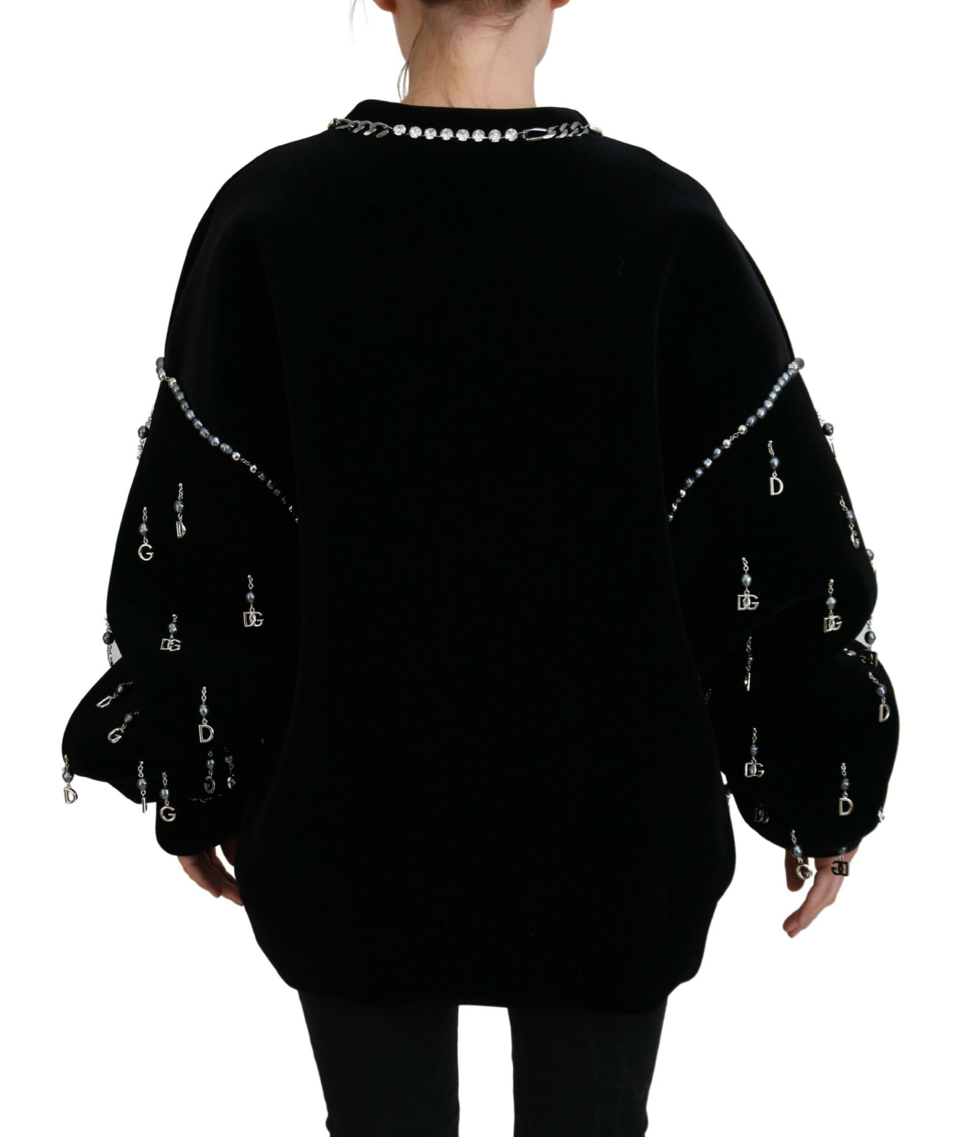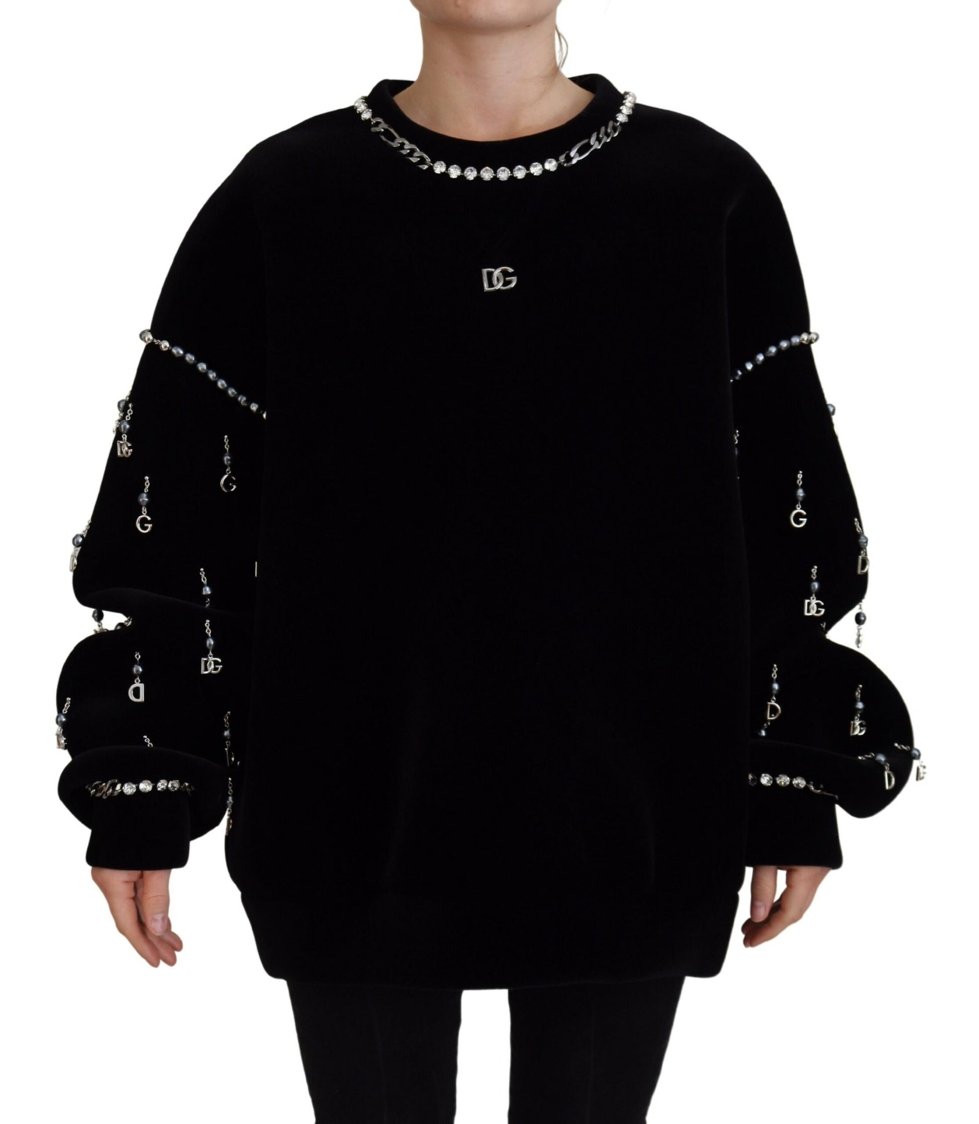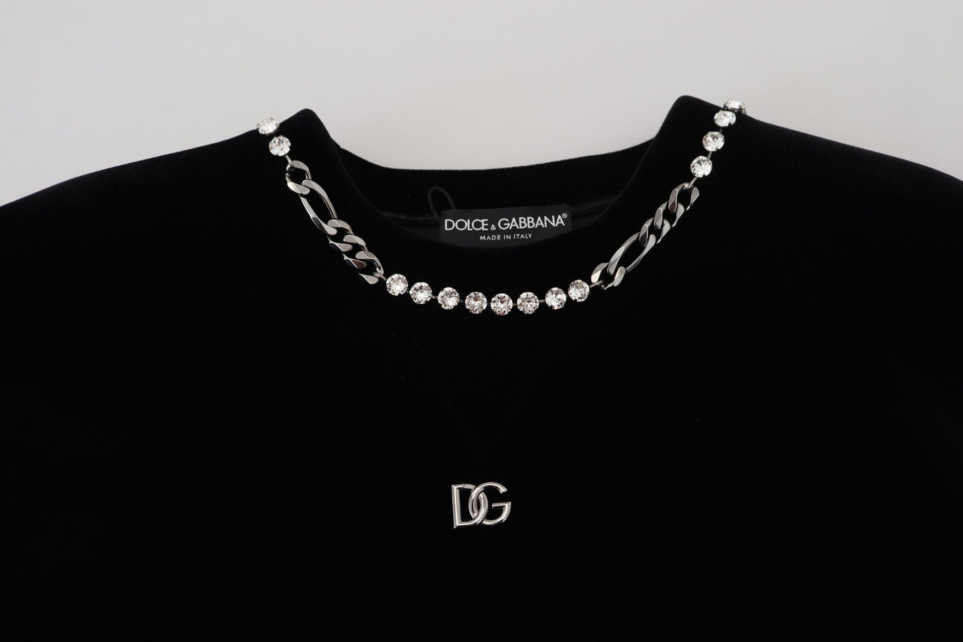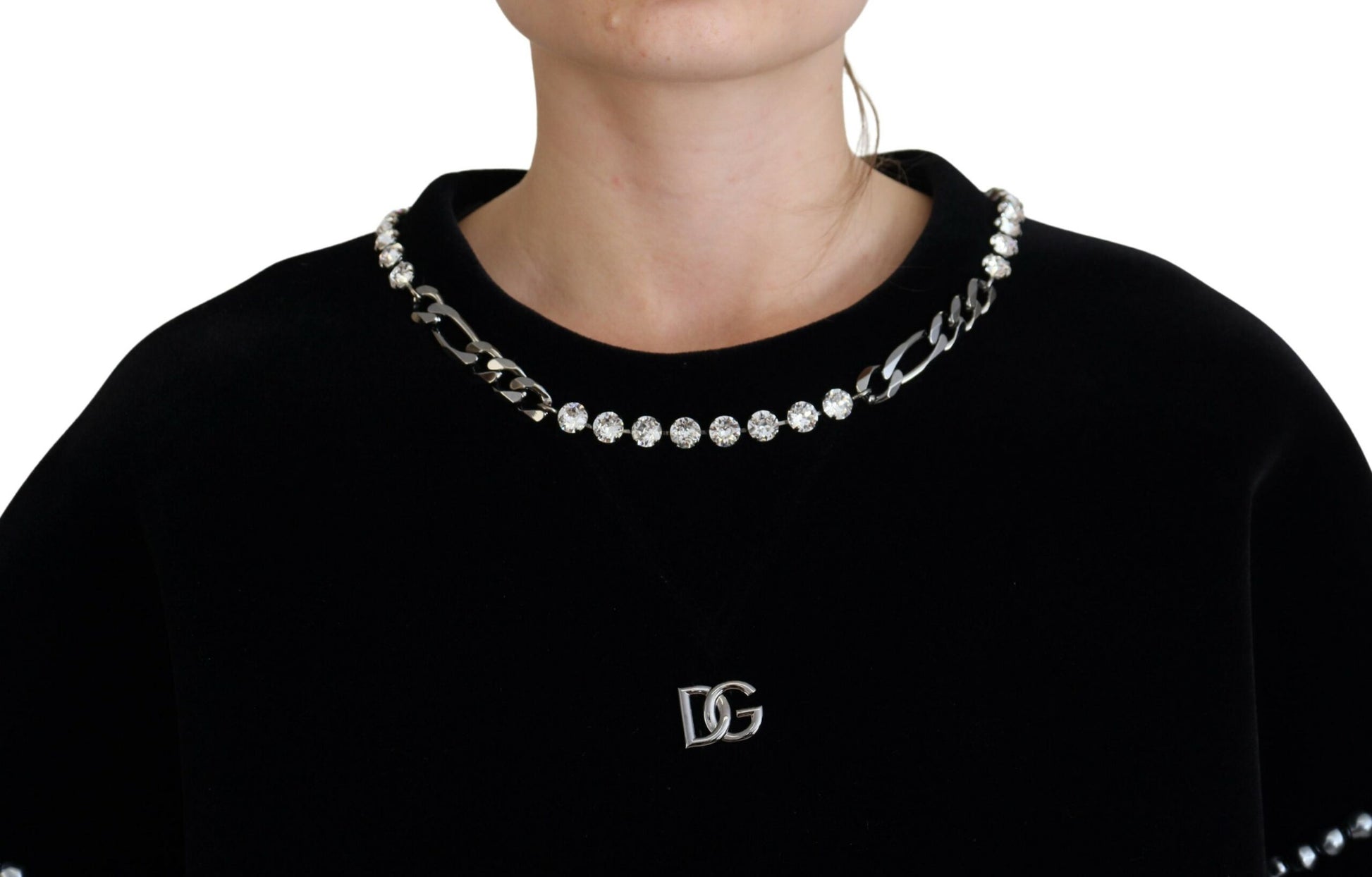 Exude sophistication with this Dolce & Gabbana pullover sweater, a perfect addition to your wardrobe. This top-tier garment features shimmering crystal embellishments, offering a touch of glamour to your ensemble. Skilfully crafted in Italy, this sweater is made from a plush blend that promises both comfort and durability. Its chic black hue makes it a versatile piece that’s easy to style for any occasion.