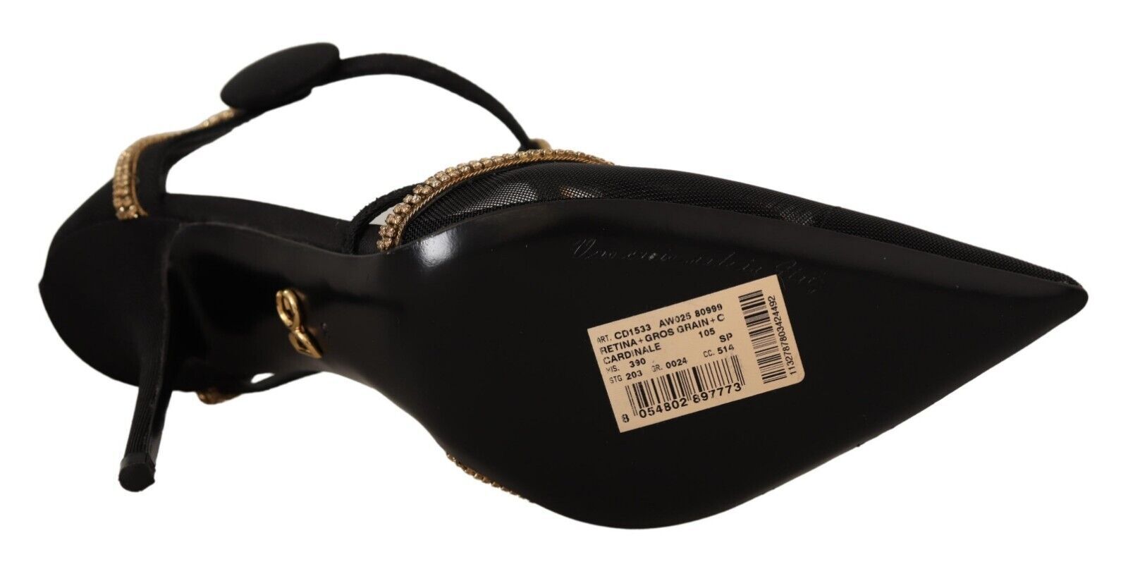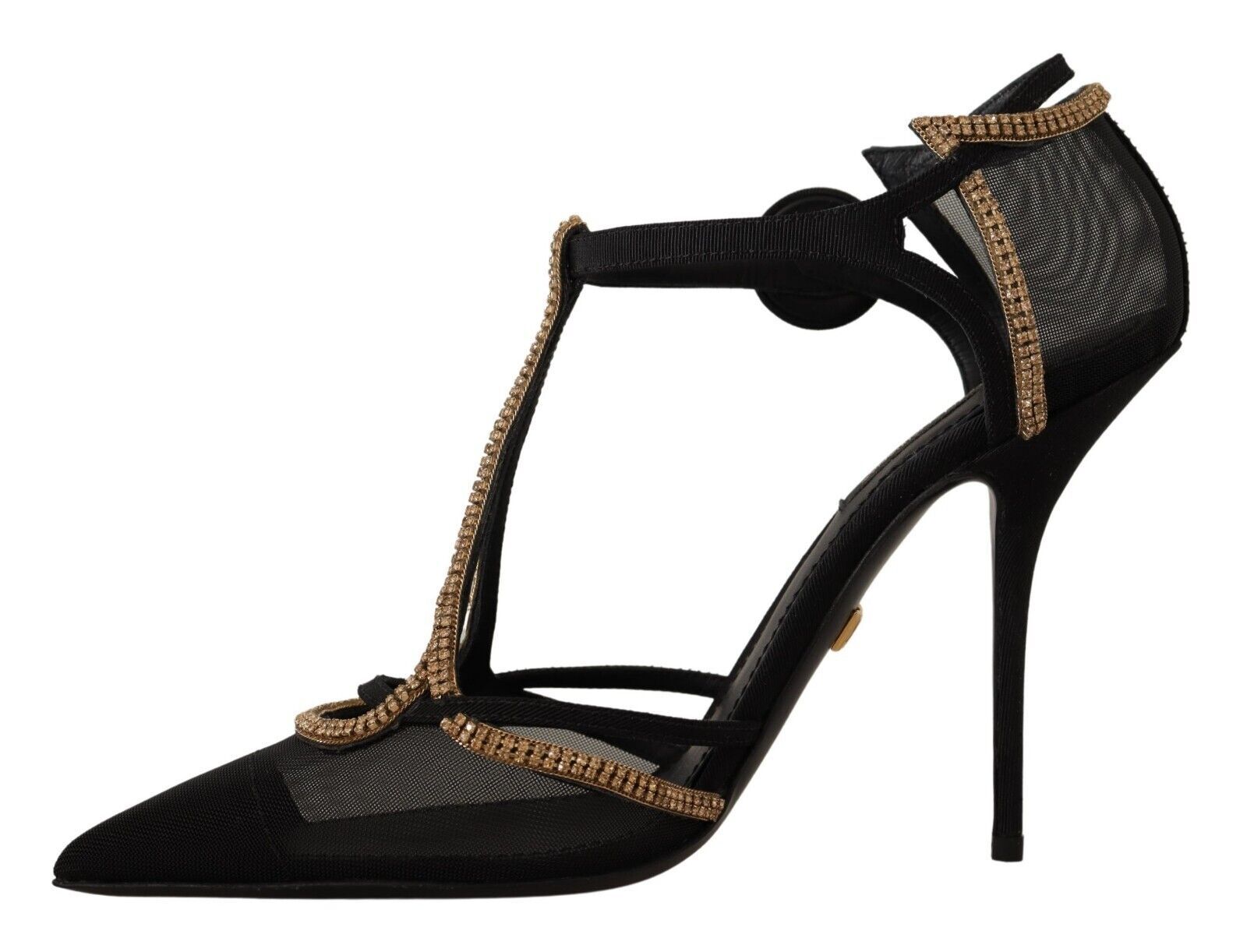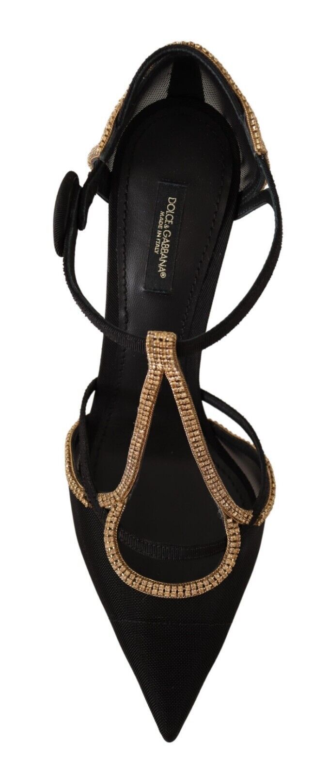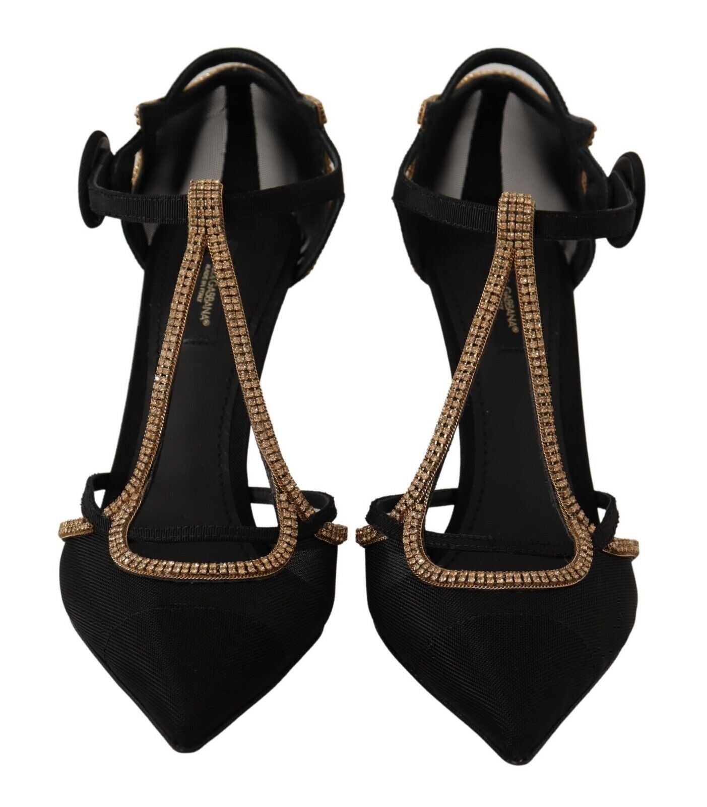 Indulge in the epitome of luxury with our brand new, 100% authentic heels from Dolce & Gabbana. These exquisite black pumps are crafted from premium Retina Gros Grain, boasting a sleek pointed toe silhouette complemented by dazzling champagne crystal embellishments for that extra touch of opulence. The leather sole ensures durability and comfort, making them perfect for a sophisticated evening affair or a high-end business event. Experience the pinnacle of Italian craftsmanship with these stunning heels.