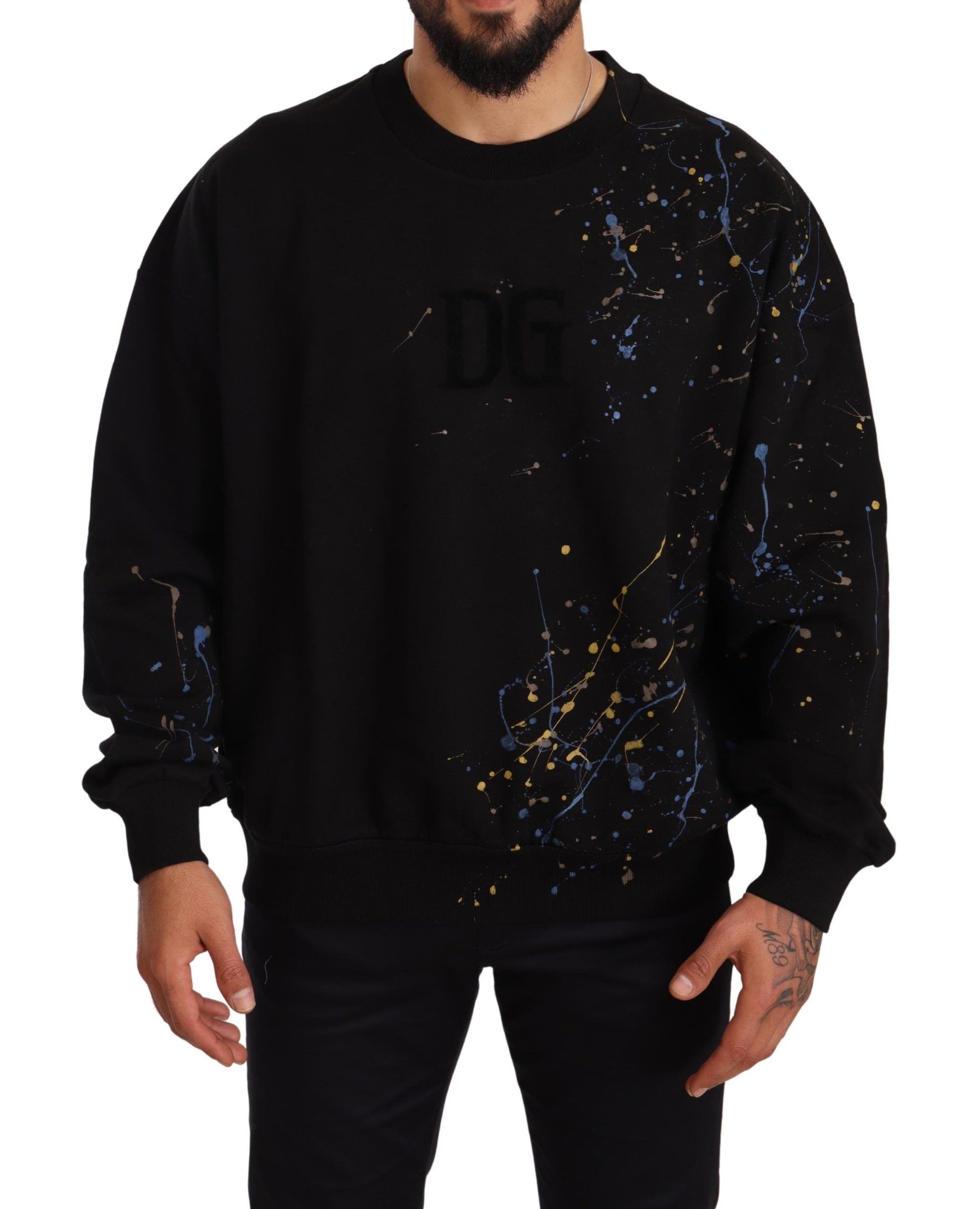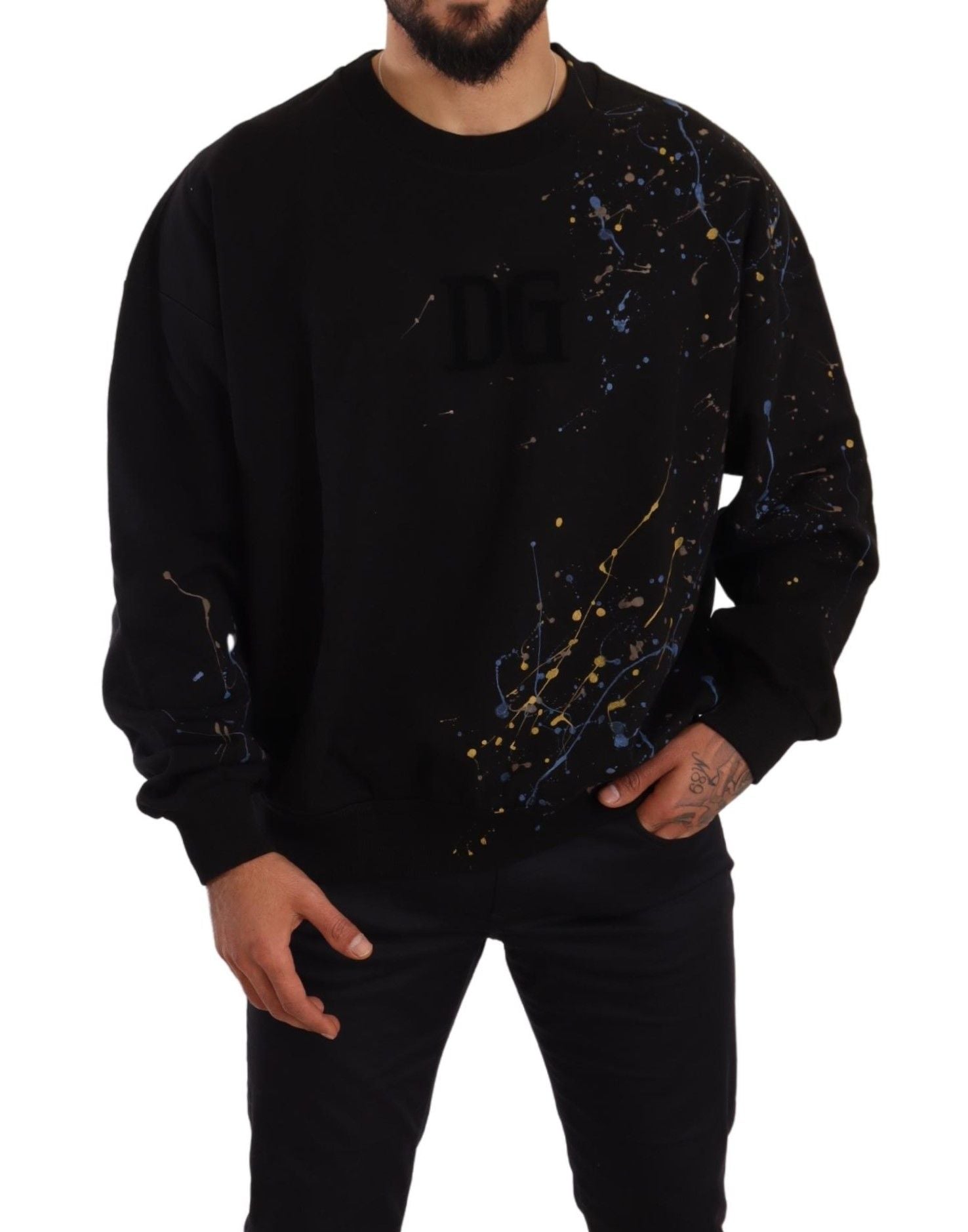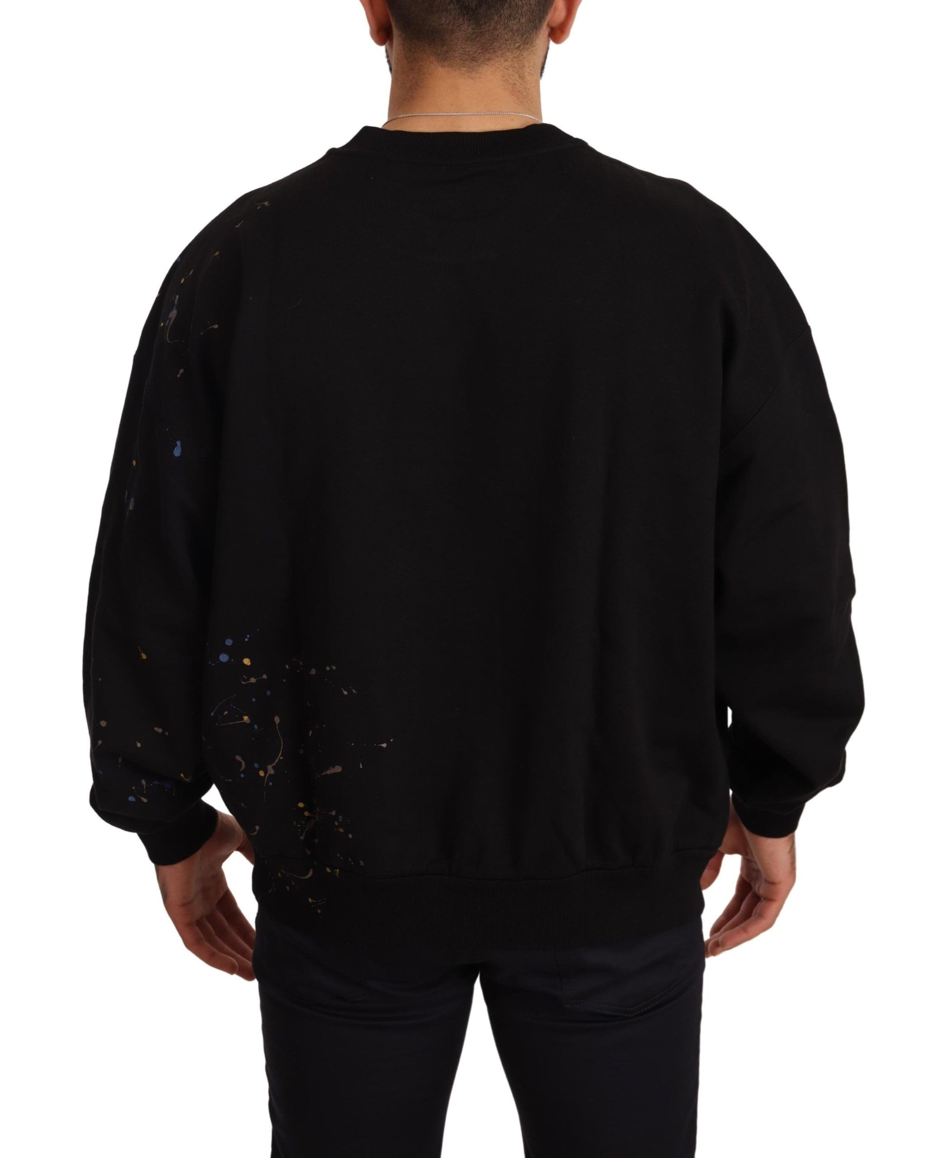 Immerse yourself in the sartorial elegance of this Dolce & Gabbana pullover sweater, a quintessential piece for those who appreciate luxury and style. The classic black backdrop is artfully adorned with vibrant, paint-splash-inspired prints, providing an eye-catching contrast. Crafted with the finest 100% cotton, this sweater offers superior warmth without compromising breathability, perfect for the fall-winter season. This made-in-Italy creation flawlessly reflects the brand’s penchant for logo details and high-end fashion.