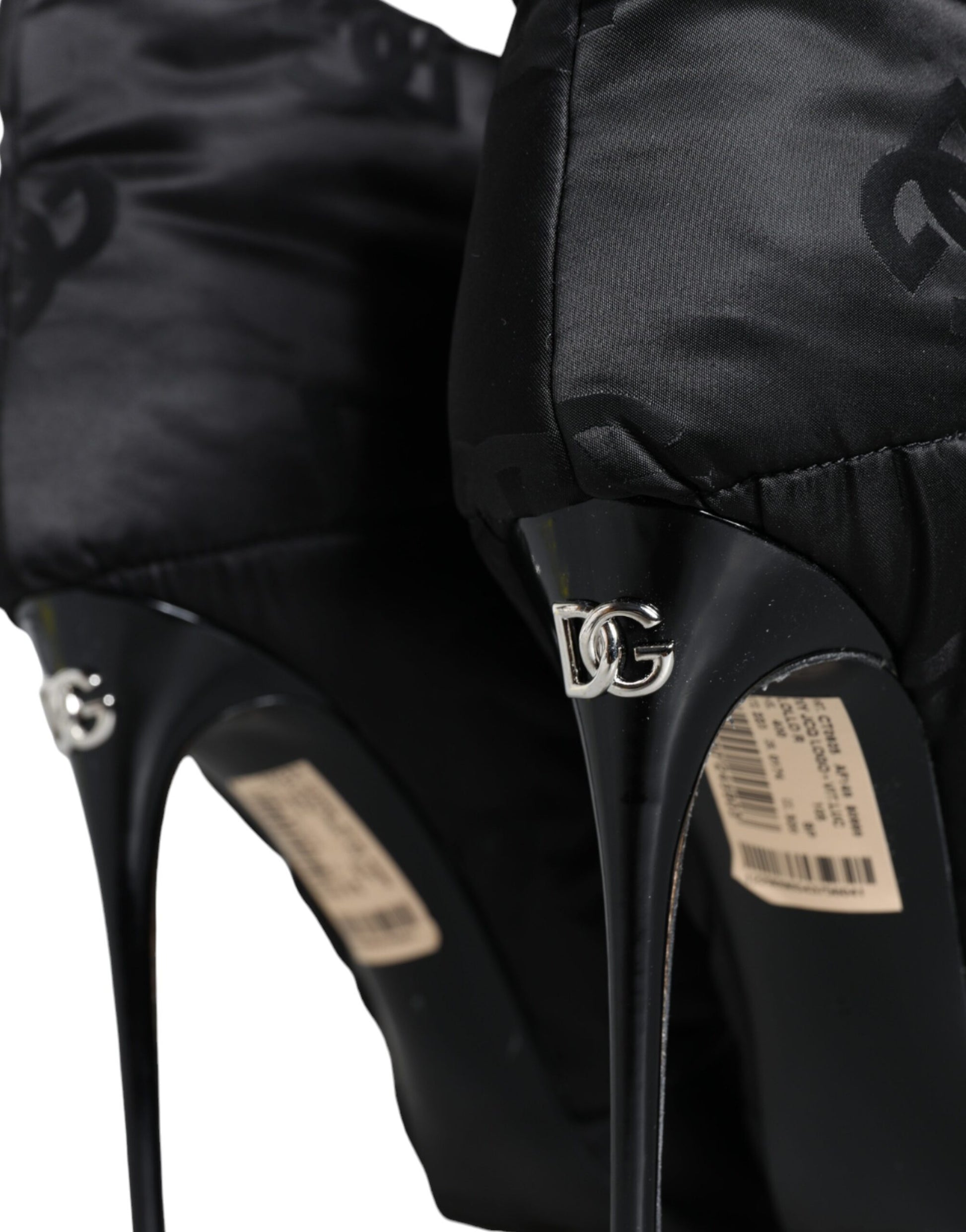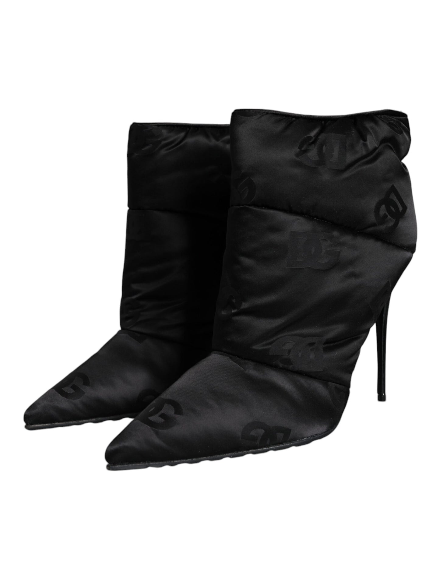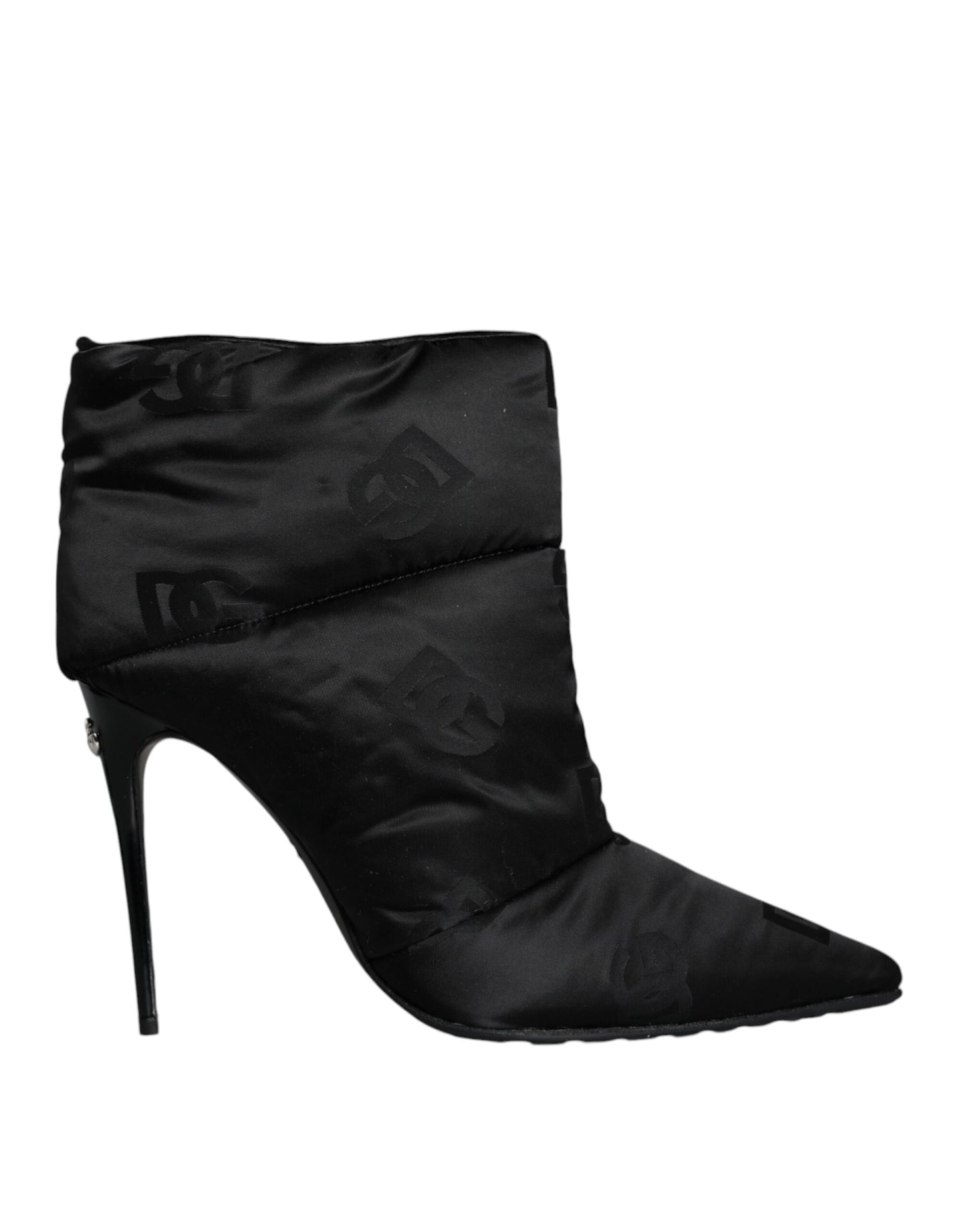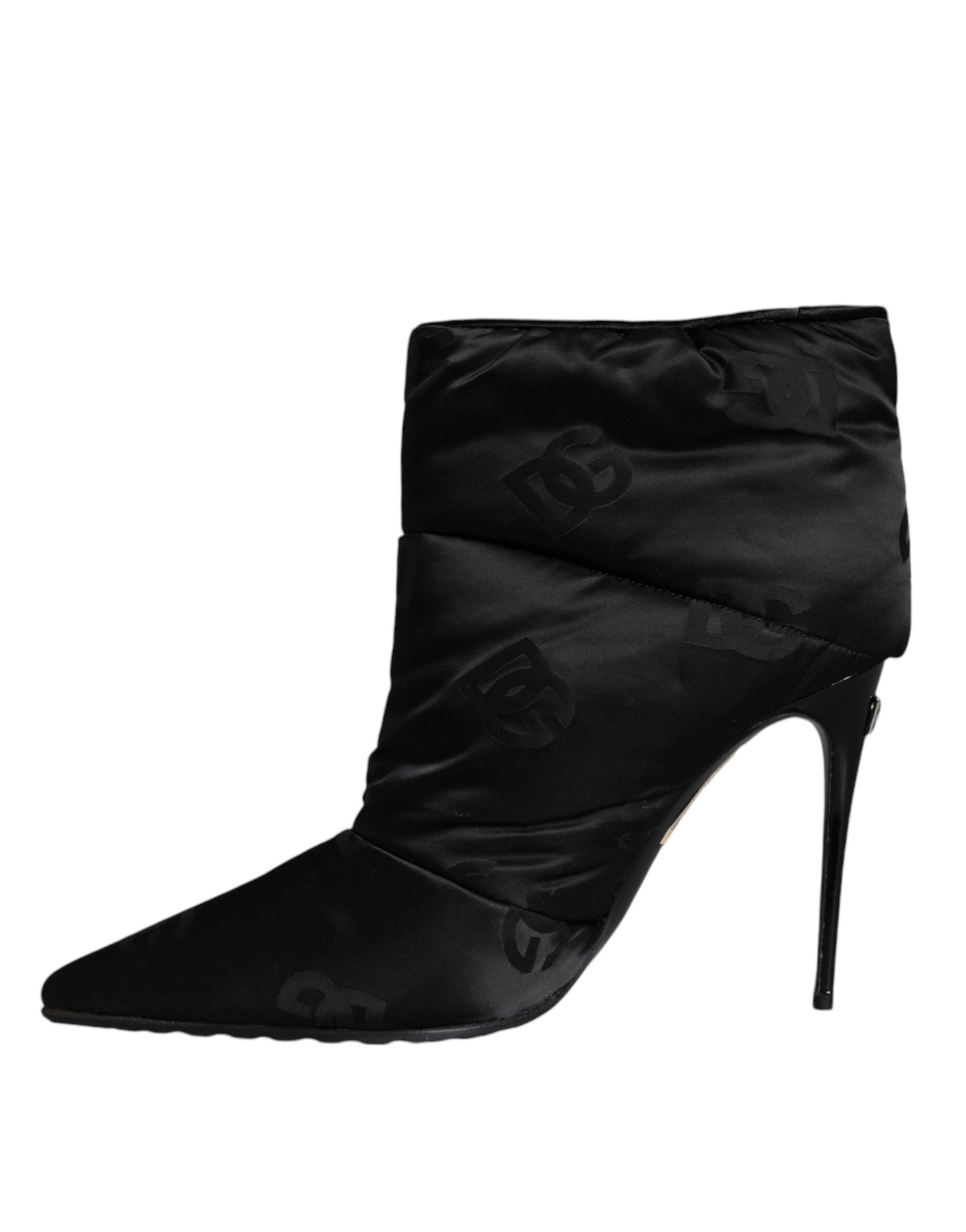 Black DG Logo Padded Heels Ankle Boots Shoes