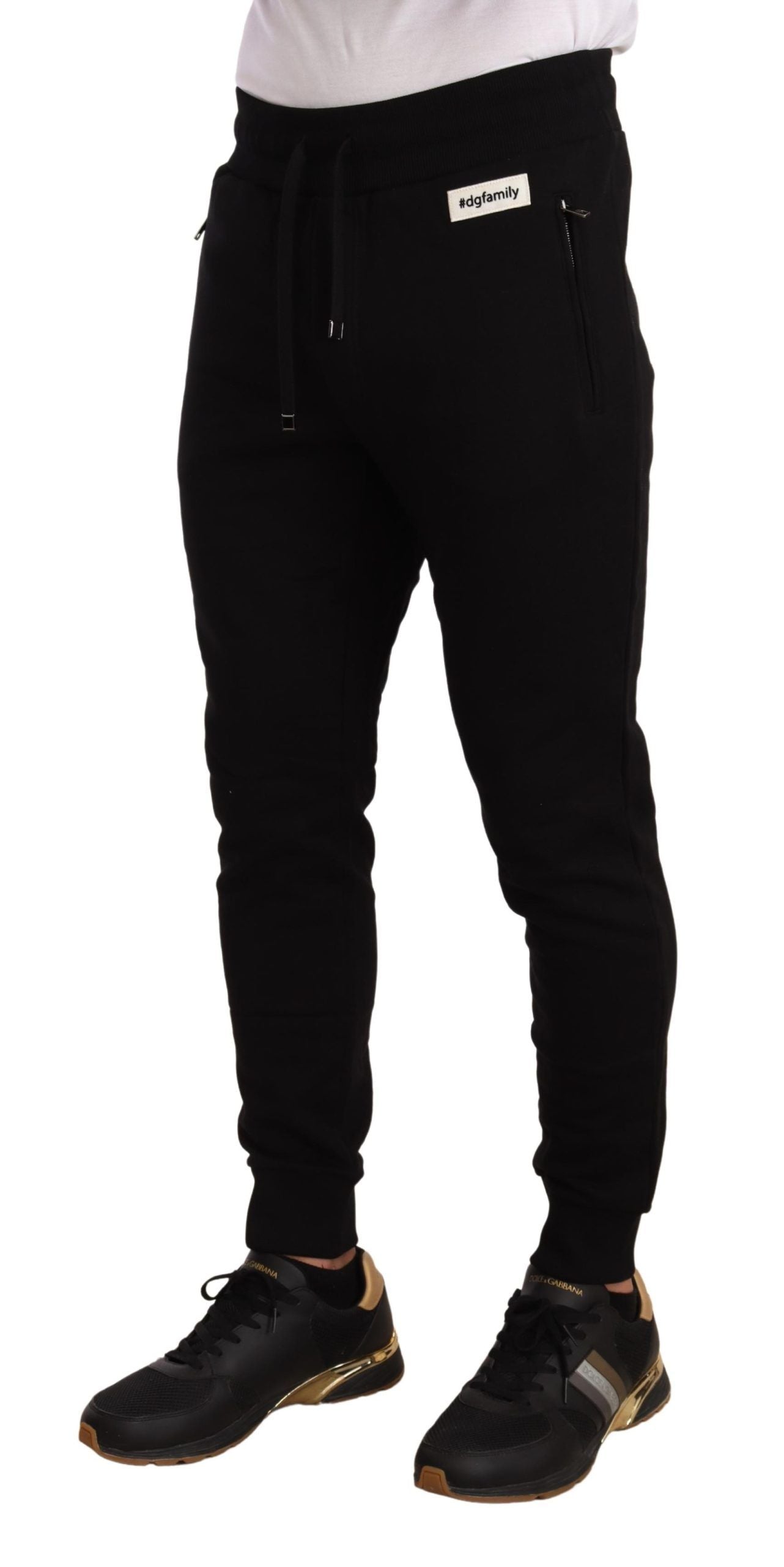 Experience the perfect blend of comfort and style with these Dolce & Gabbana jogging pants. Adorned with the playful #dgfamily motif, these pants come with an adjustable elastic waistband complete with a drawstring to ensure a snug fit. Crafted for both leisure and luxury, they are suitable for a cozy day in or a casual outing.