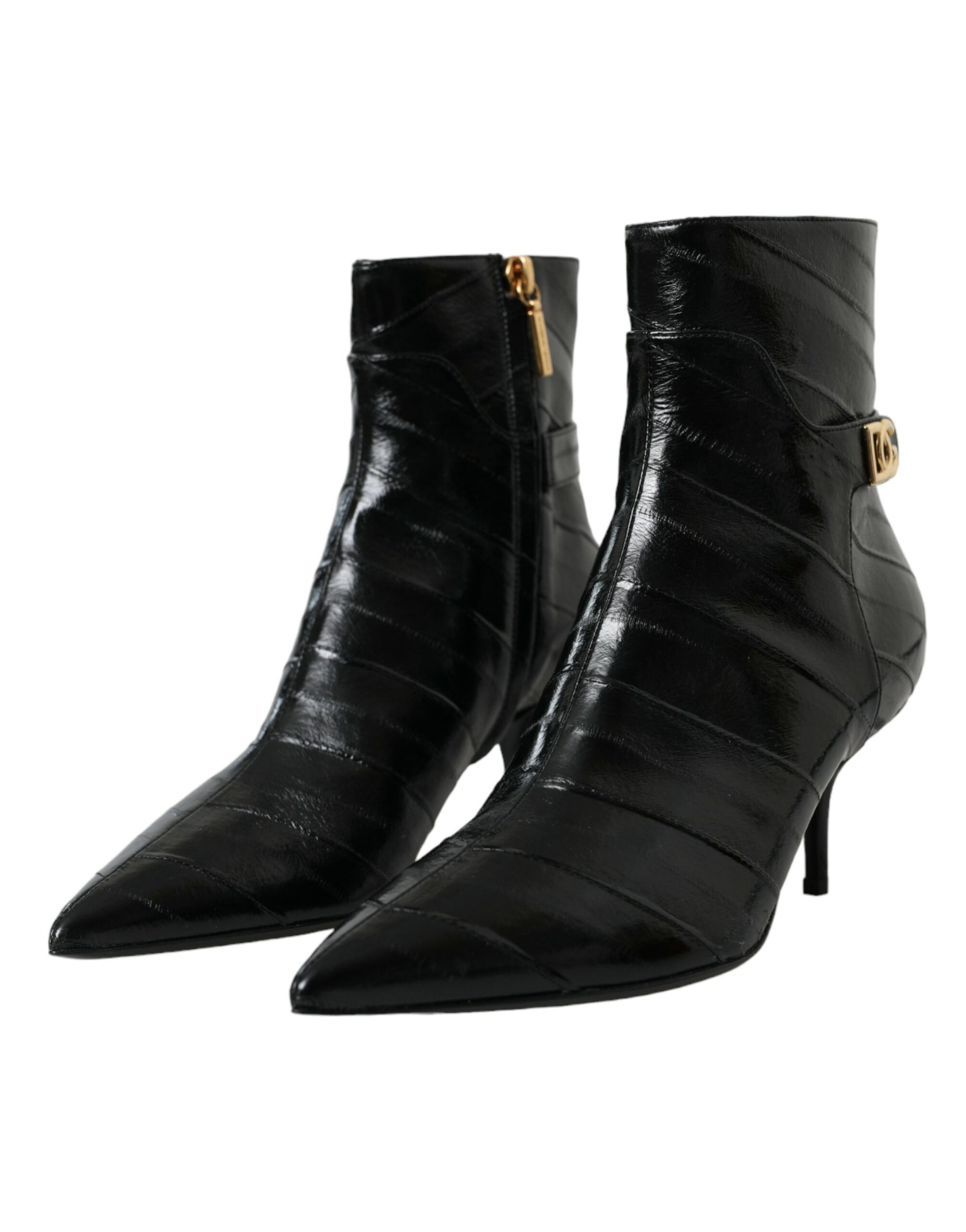 Black Eel Leather Logo Short Boots Shoes