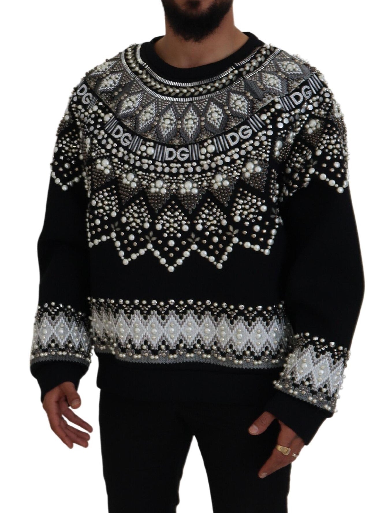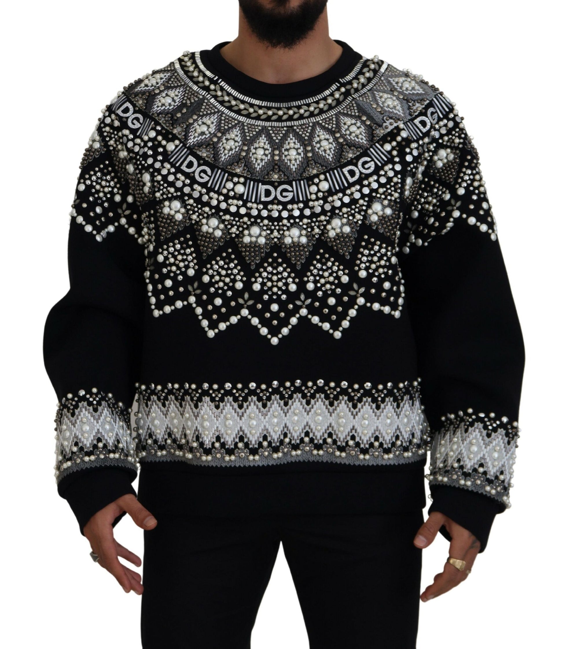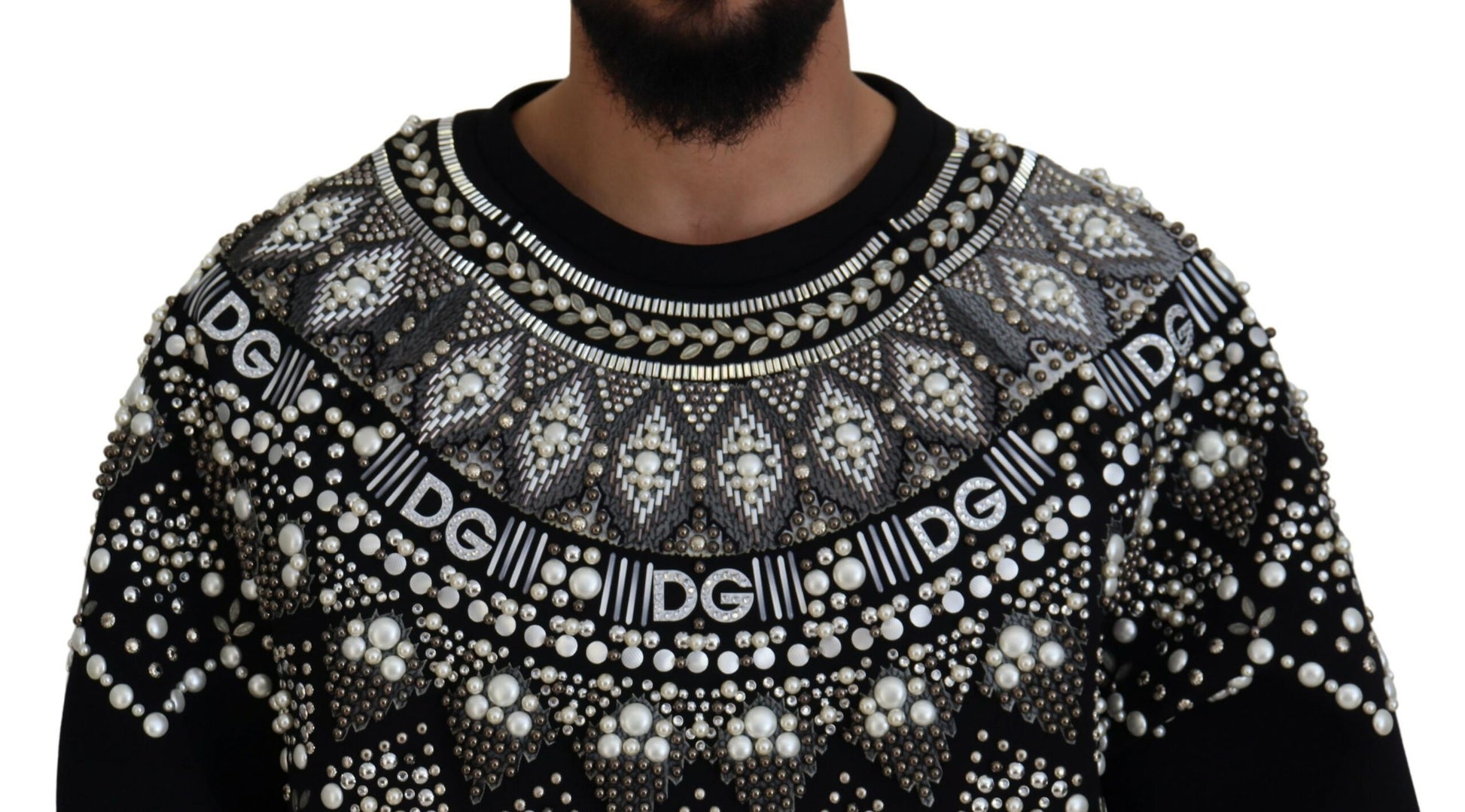 Indulge in the epitome of luxury knitwear with this stunning pullover sweater from the renowned house of Dolce & Gabbana. Crafted from premium 100% cotton, this black sweater features exquisite embellishments that add a touch of elegance and sophistication to any outfit. Perfect for those who admire high fashion with a classic edge, it’s a versatile piece made in Italy that promises to upgrade your wardrobe.