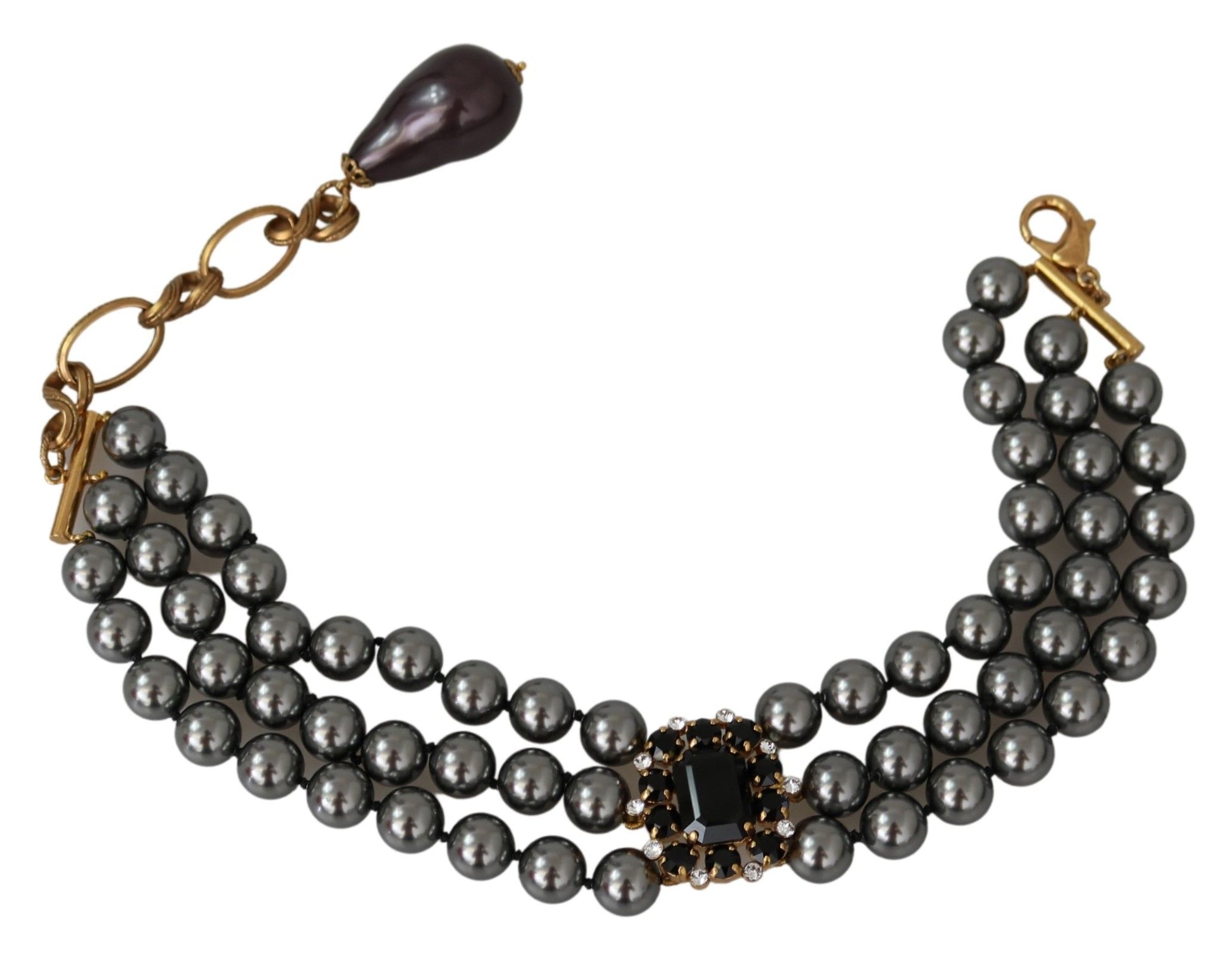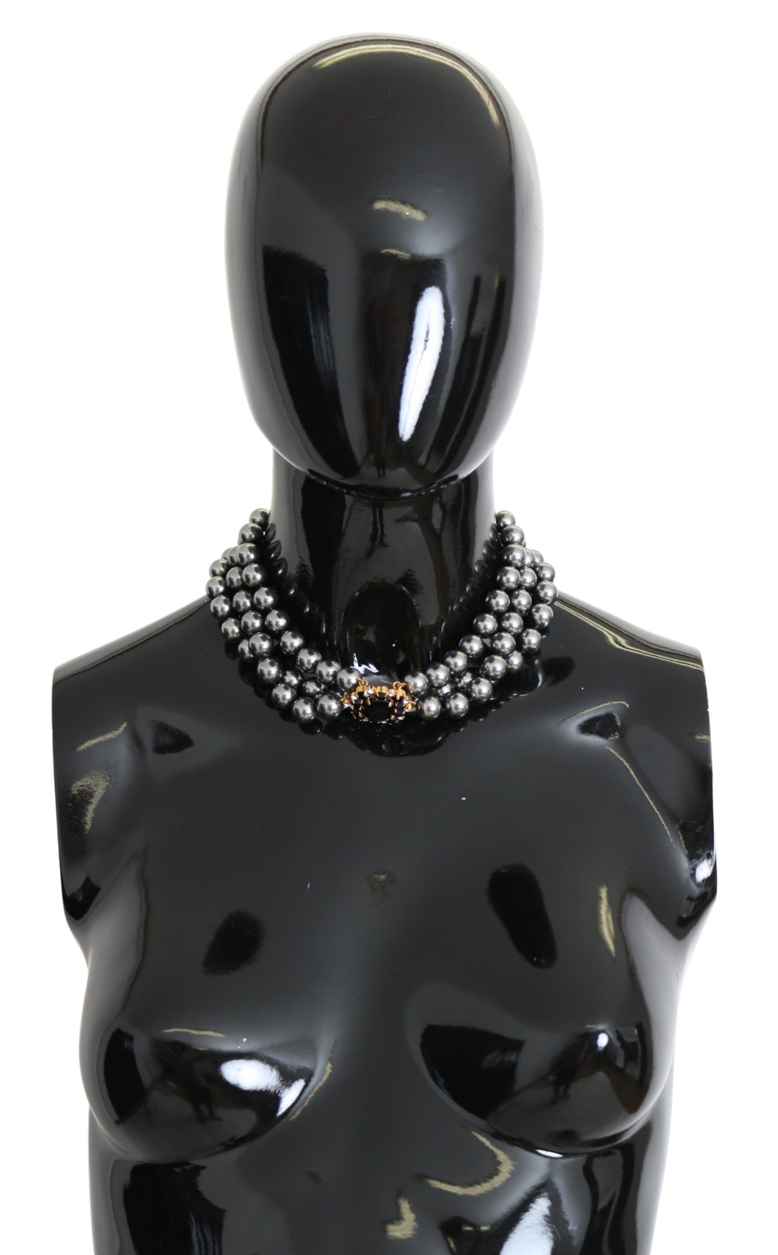 Indulge in the epitome of elegance with this stunning gold tone necklace by Dolce & Gabbana . Adorned with lustrous black faux pearls and crystals, this exquisite piece is a perfect blend of luxury and style, poised to elevate any ensemble. Crafted in Italy with meticulous attention to detail, it offers both charm and sophistication to your jewelry collection. Complete with a secure lobster clasp closure and distinctive logo details, this necklace is a truly exclusive and rare find that speaks volumes of its wearer’s refined taste.