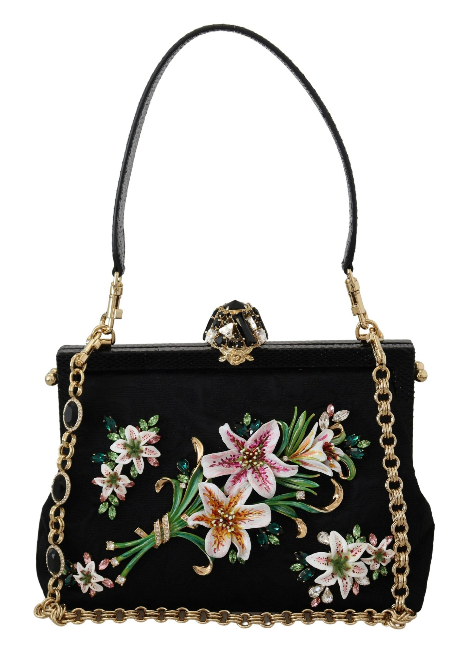 Indulge in the epitome of Italian luxury with this stunning Dolce & Gabbana Vanda Clutch. A perfect companion for your evening soirees, this clutch is a blend of elegance and sophistication with its eye-catching mix of black, silver, and gold metal detailing. Experience the opulence of ayers leather combined with the softness of cotton and rayon, meticulously crafted to create a statement piece that’s both stylish and functional. With its versatile shoulder chain and chic python skin handle, you can flaunt this accessory as a shoulder bag or opulent clutch, depending on your mood and occasion.