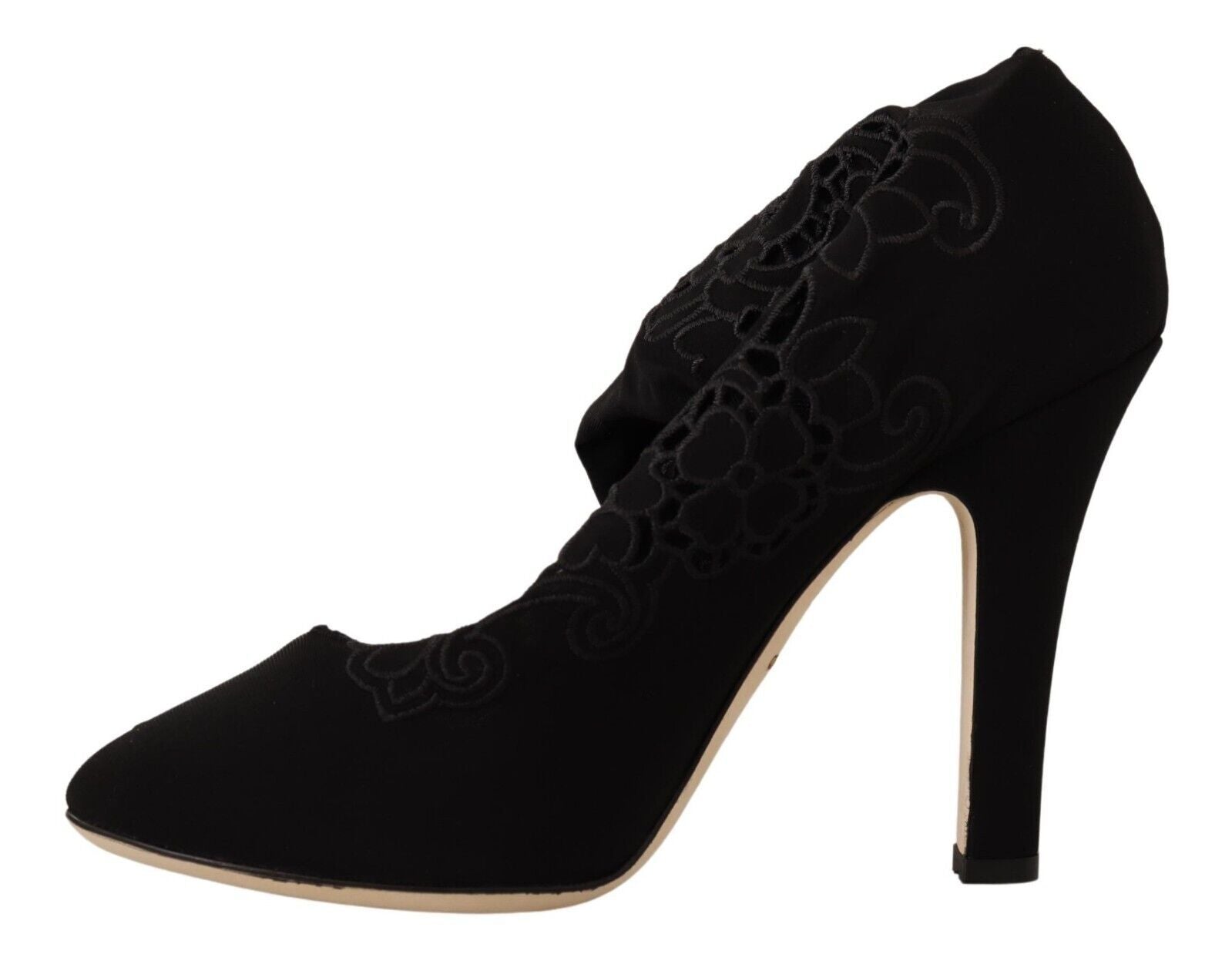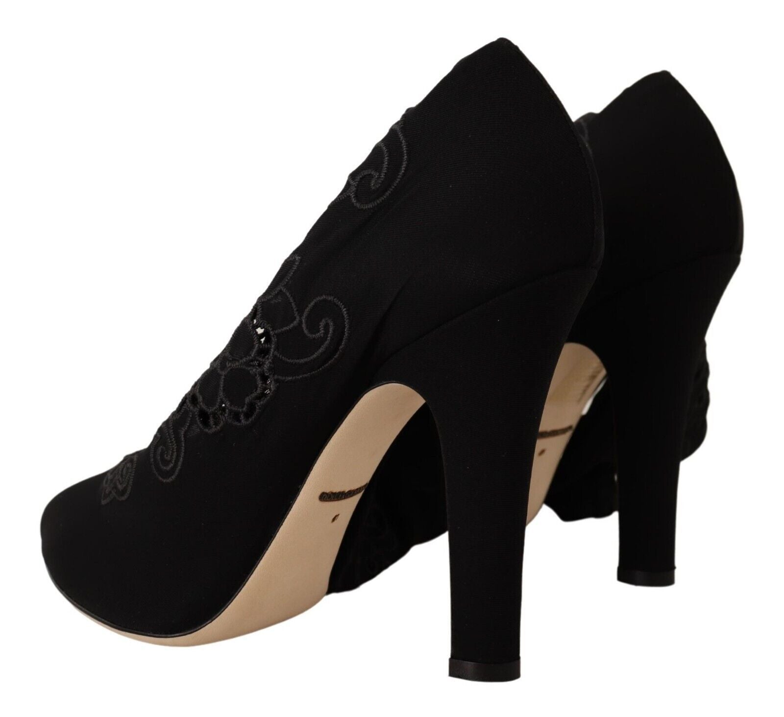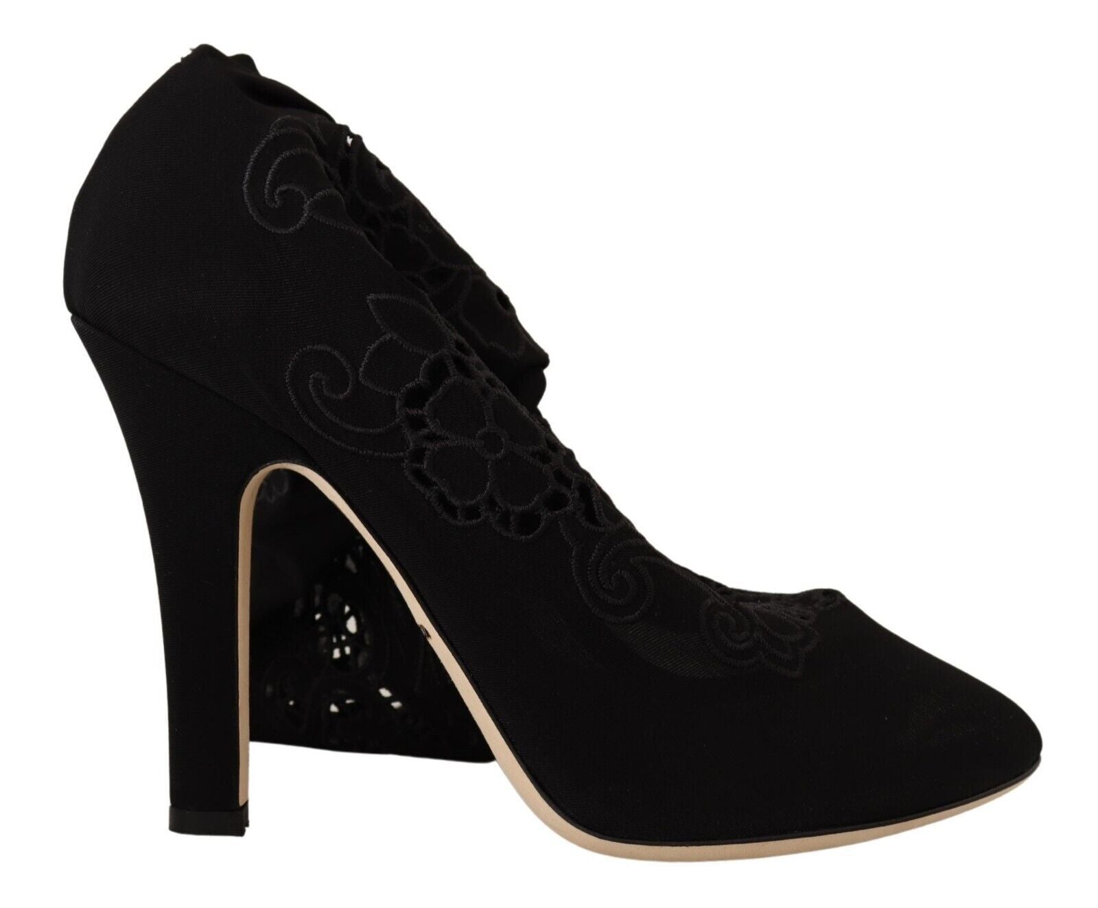 Step into luxury with these stunning Dolce &Gabbana Elastic Sock Pumps. Featuring a gorgeous floral design against a sleek black background, these boots blend comfort with high-end fashion. Impeccably crafted in Italy, with a leather bottom sole for durability and logo details for an exclusive touch, they’re perfect for stylish ladies seeking to make a statement.