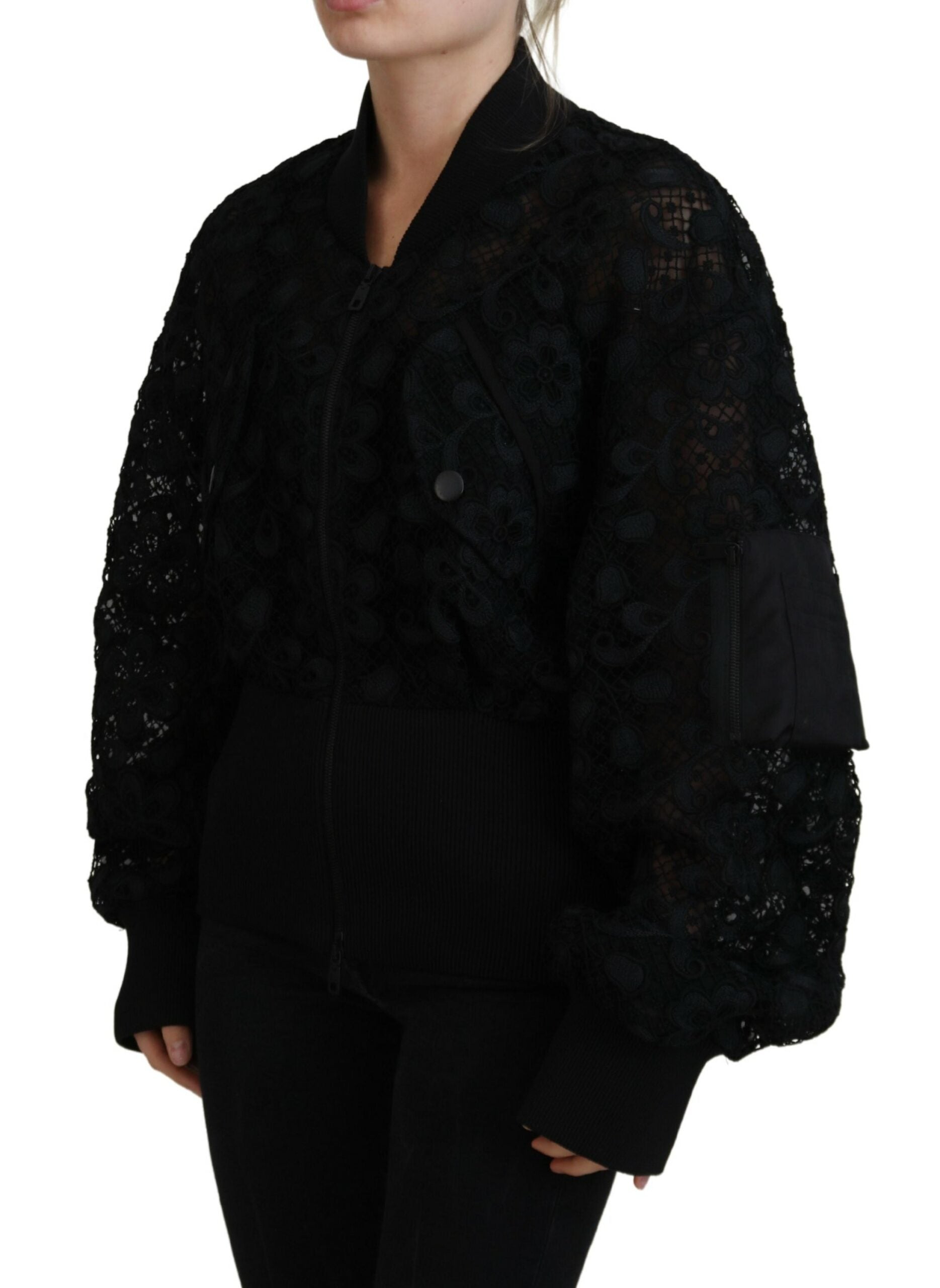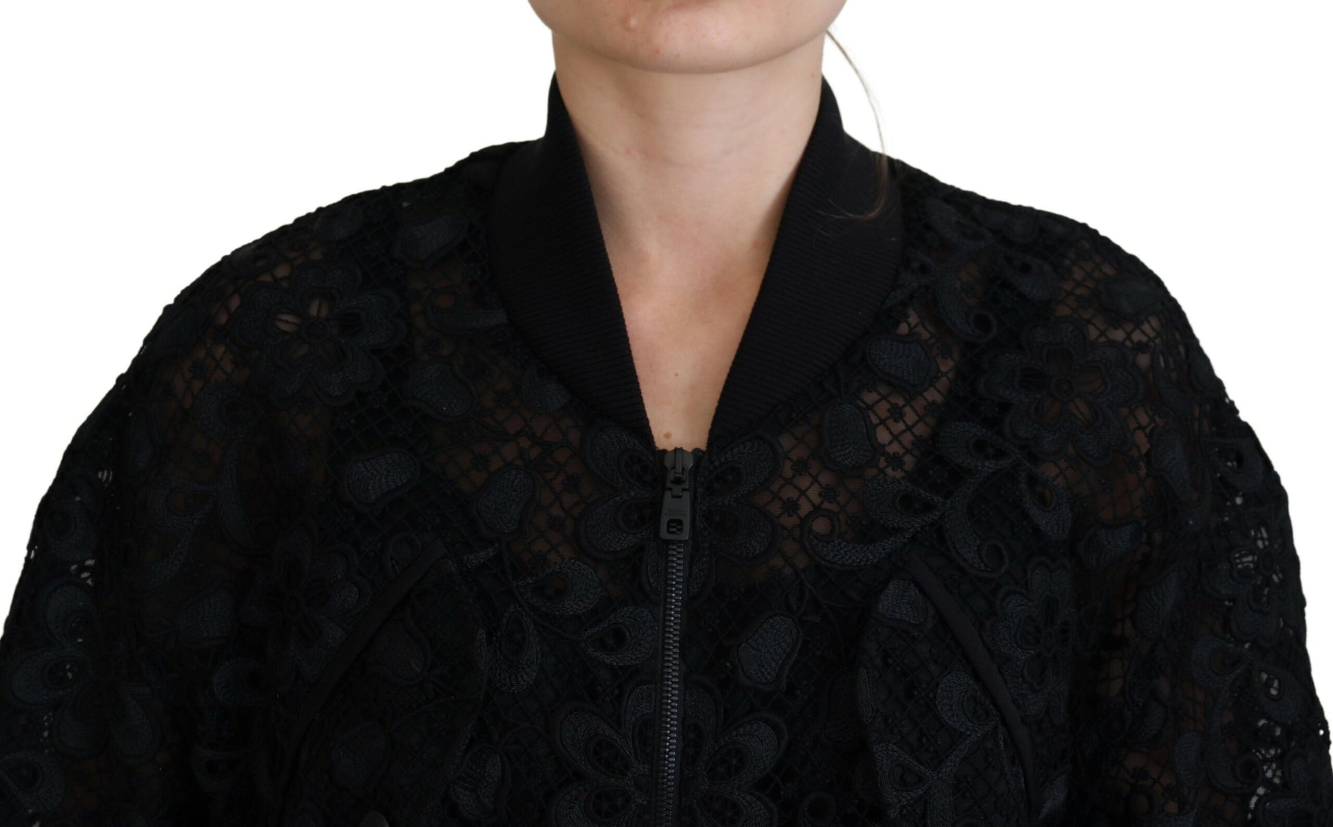 Indulge in the lavish excellence of this stunning Black Floral Lace Bomber Jacket, a testament to the intricate and high craftsmanship Dolce & Gabbana is renowned for. This gorgeous jacket, brand new with tags, flaunts an elegant black floral lace that exudes sophistication and style. Perfect for adding a luxurious touch to any outfit, it’s designed to offer a regular fit and features the unmistakable logo details. Made in Italy, it promises not only trendsetting style but also exceptional quality and an exclusive wearing experience.