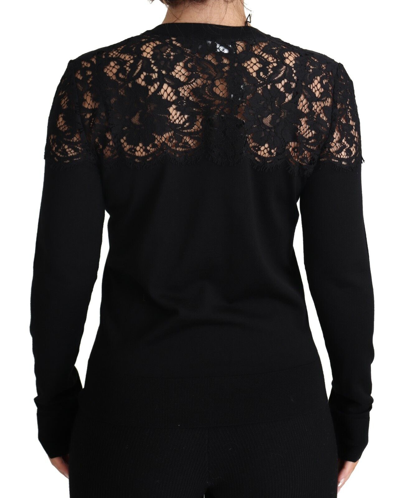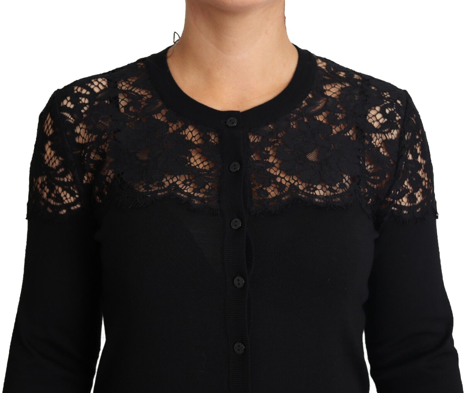 Immerse yourself in the epitome of luxury with this exquisite cardigan from Dolce & Gabbana. This brand new, tags-on piece features a sophisticated black base complemented by delicate floral lace trimming, exuding timeless style and Italian craftsmanship. A versatile addition to your wardrobe, perfect for layering over elegant dresses or a chic casual ensemble.