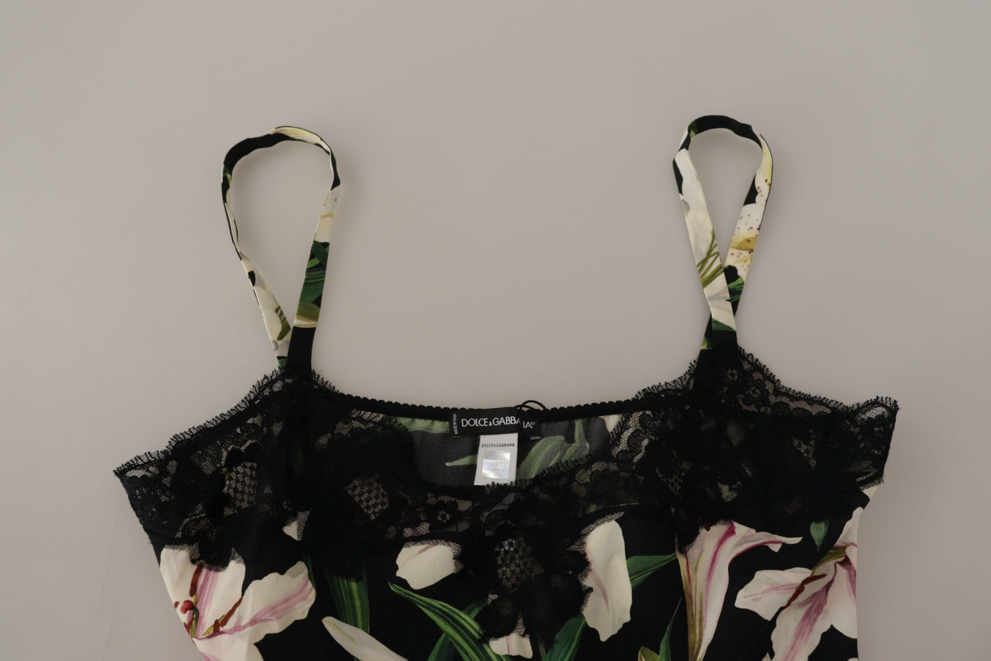 Indulge in the delicate allure of this Gorgeous new-with-tags lingerie camisole by Dolce & Gabbana. Exquisitely designed with a refined touch of black lace trim, it showcases a gentle concoction of silk blend fabric which provides both comfort and a luxurious feel. The piece is adorned with dainty spaghetti straps leading to a scalloped lace hem, offering a relaxed yet sophisticated silhouette that’s perfect for layering or as a stand-alone piece. Detailed with the signature logo, this camisole is a testament to Italian craftsmanship and elegant styling.