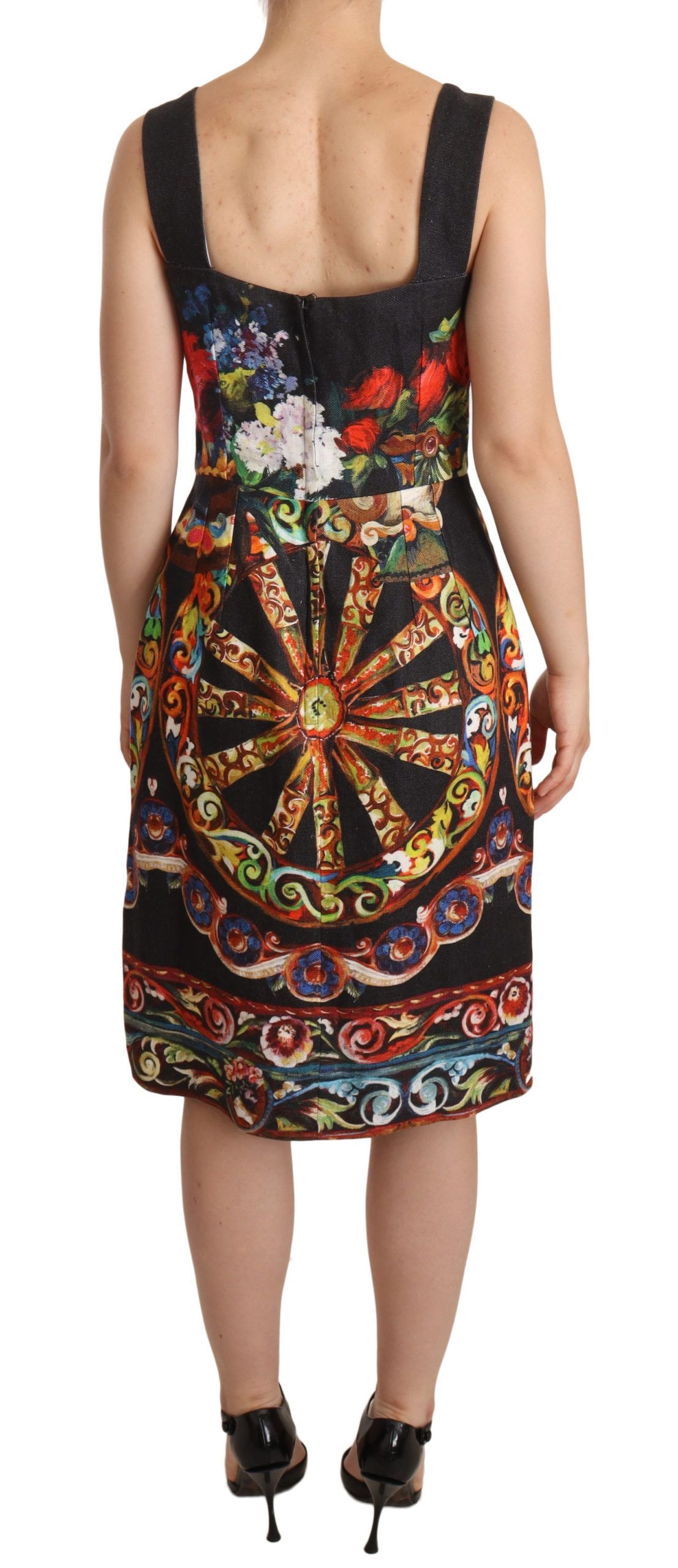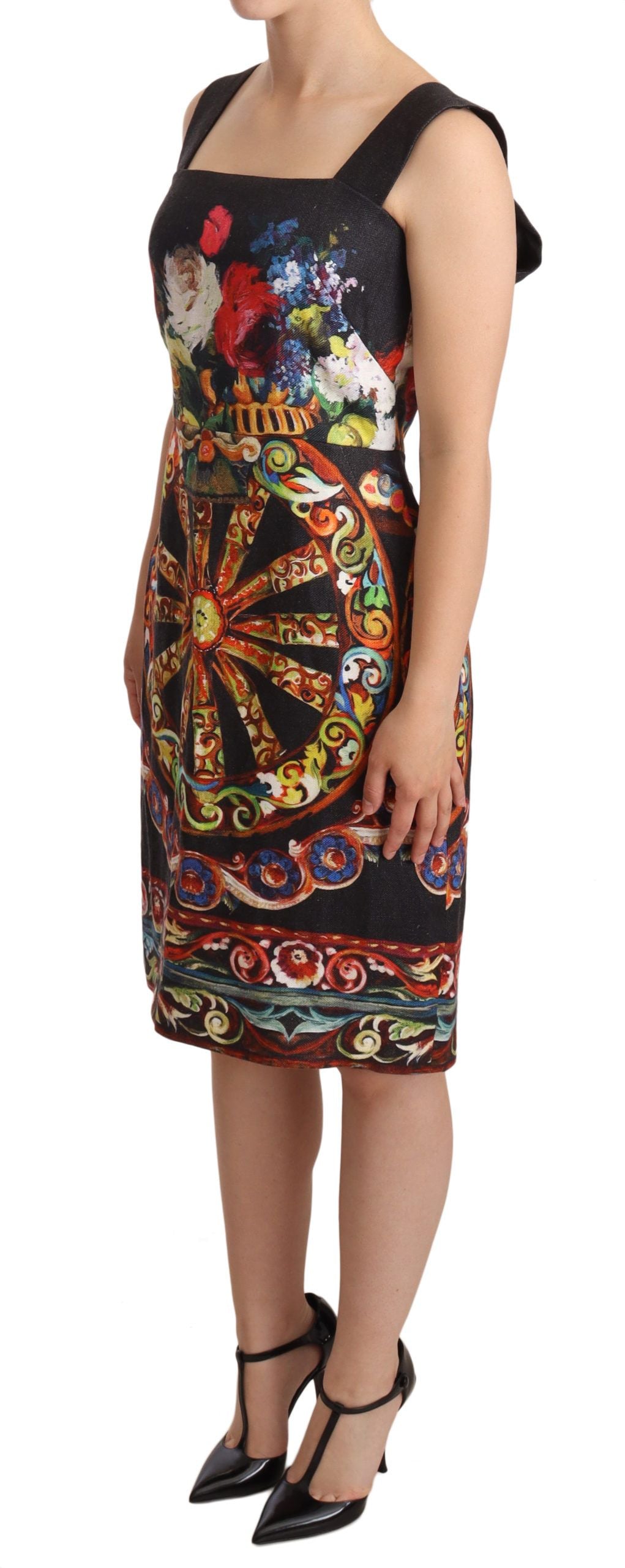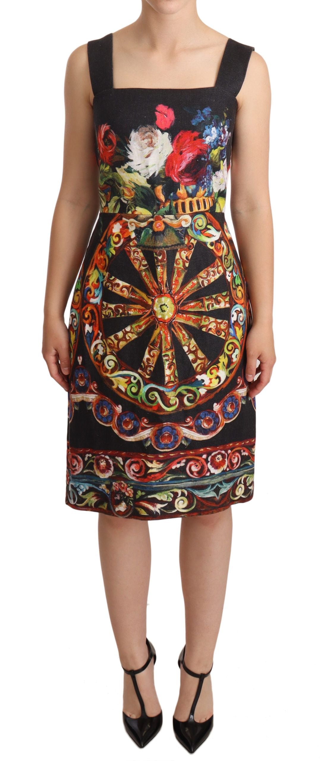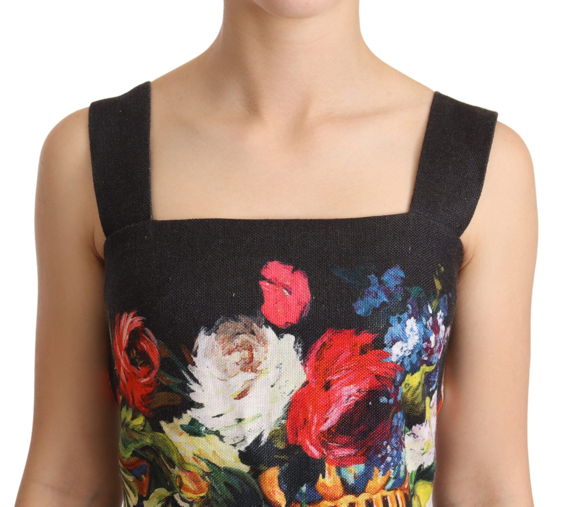Embrace timeless elegance with this stunning Dolce & Gabbana sheath dress, brand new with tags. Crafted in Italy, this luxurious 100% Linen dress features a captivating Carretto floral print on a classic black backdrop. Designed to make a sophisticated statement, it’s perfect for special occasions or a chic day at the office. Accentuated with a sleek zipper closure and signature logo details, this dress is a testament to exquisite craftsmanship and style.