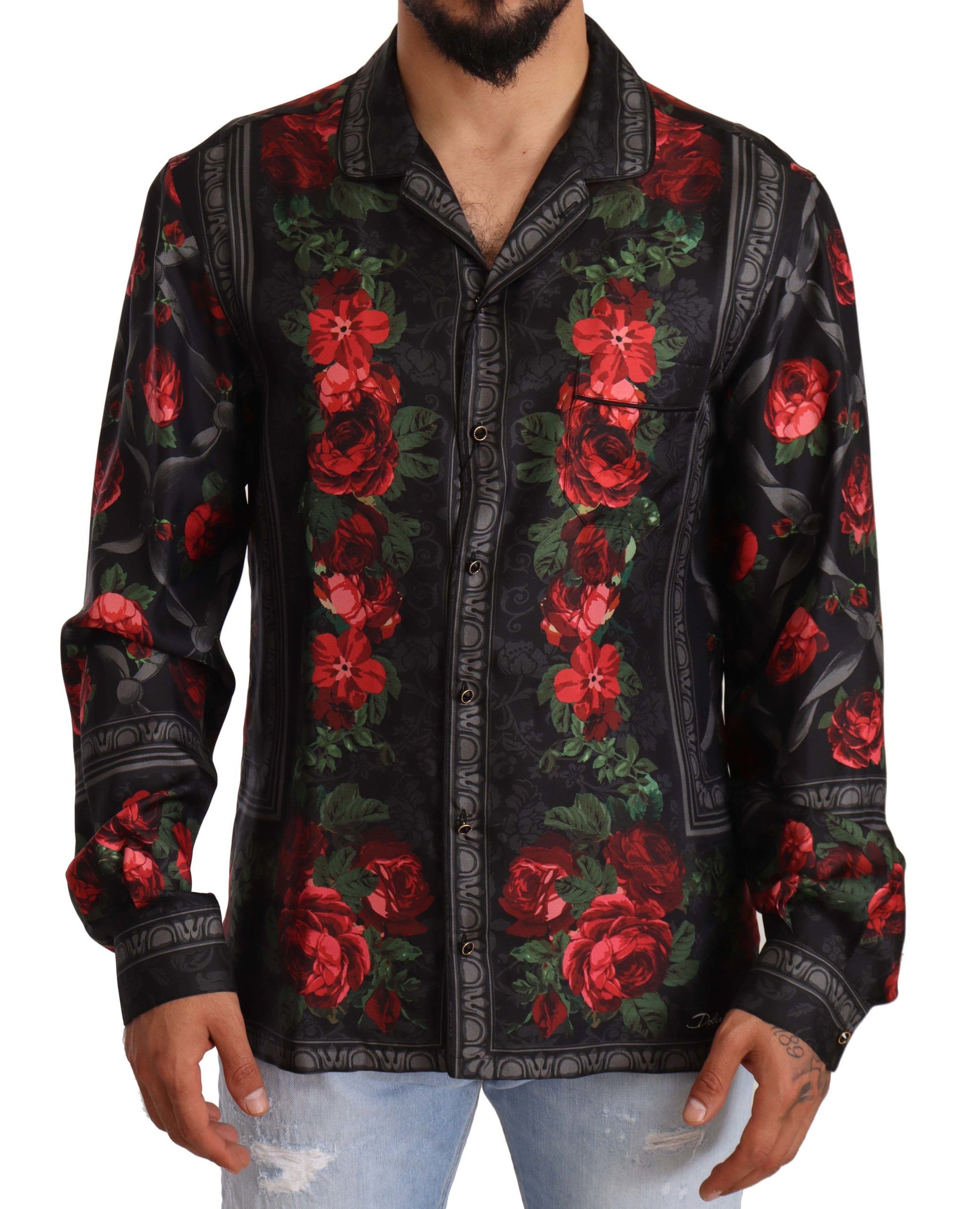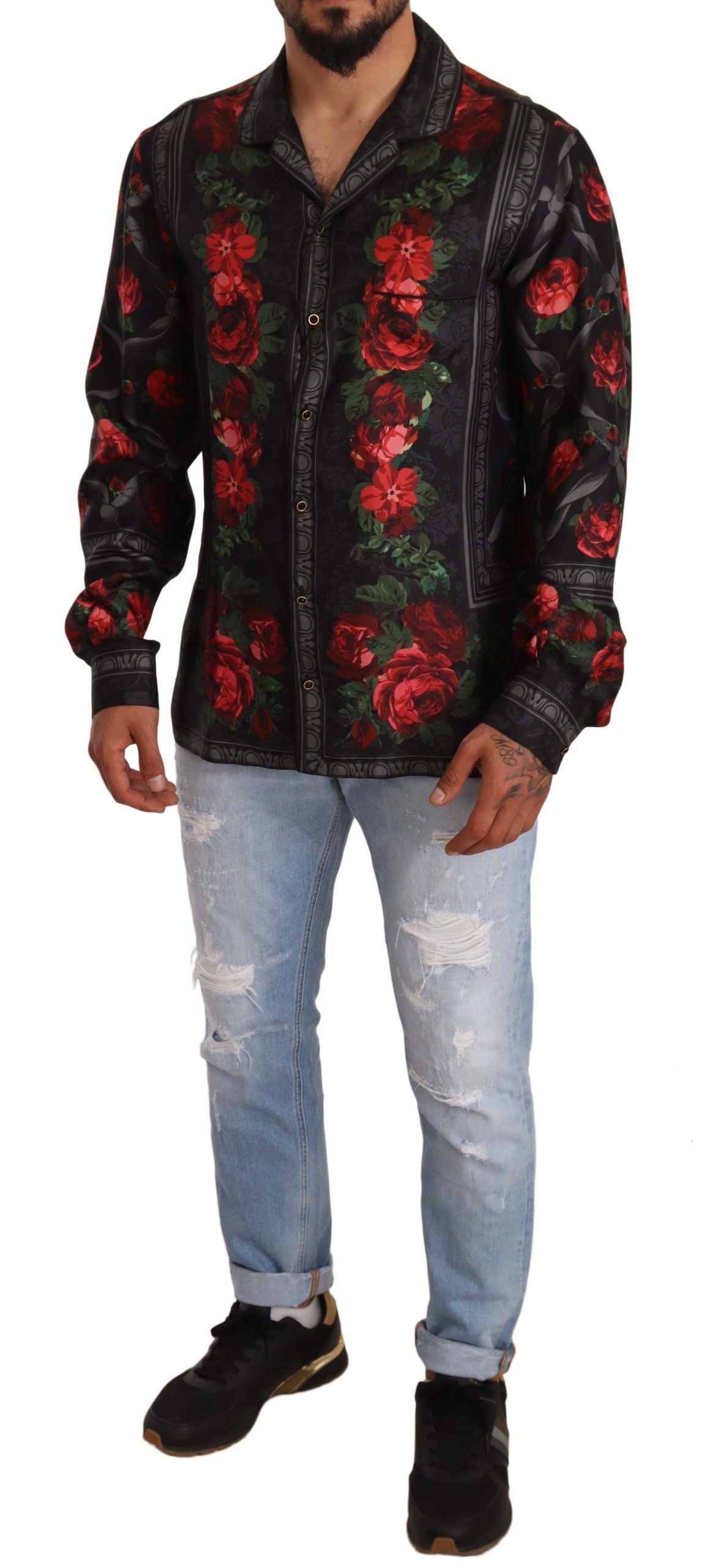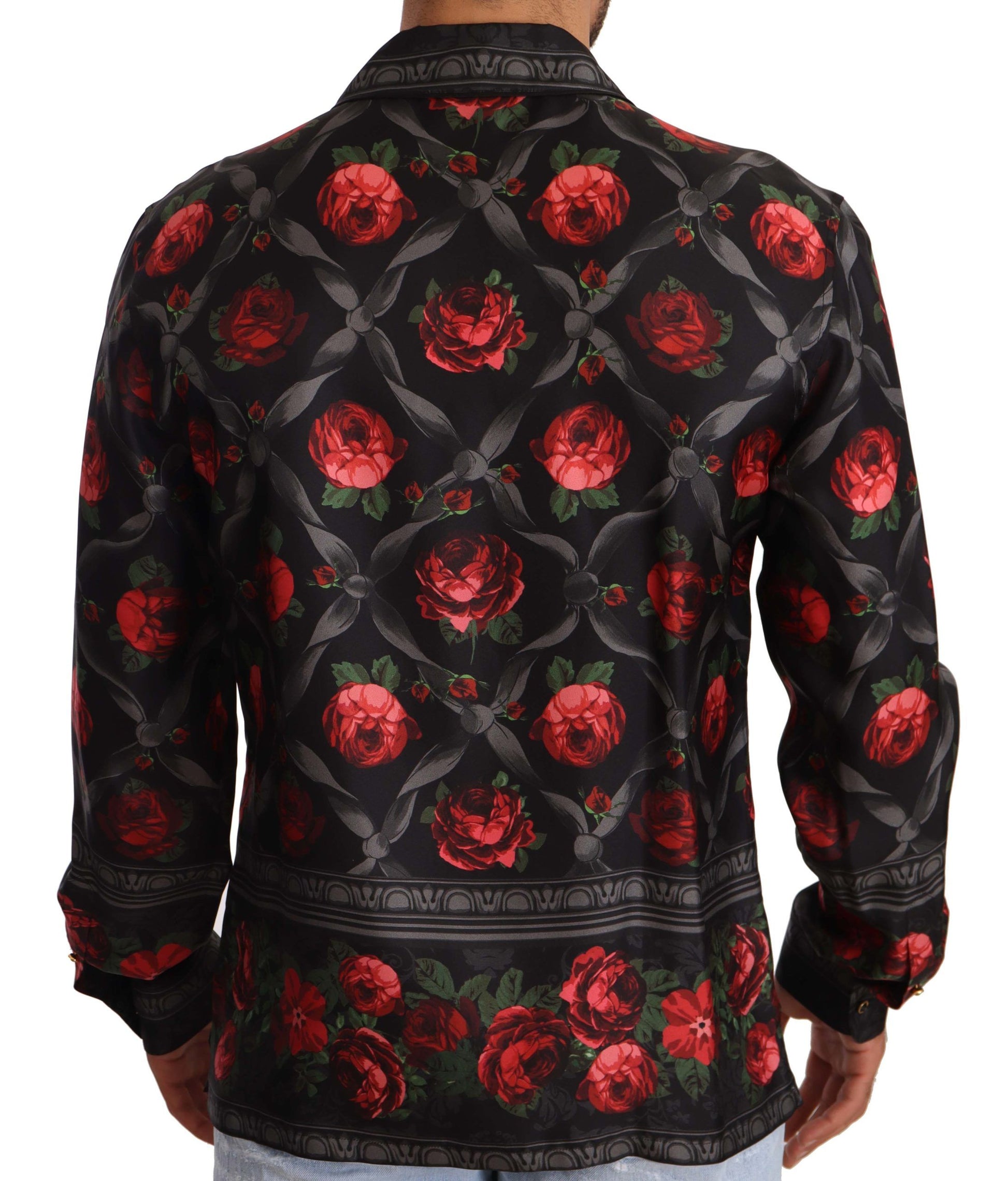 Exude timeless elegance with this stunning, slim-fit dress shirt from Dolce & Gabbana. Crafted from luxurious 100% silk, this shirt features a sophisticated black base adorned with a vibrant red roses print, perfect for making a bold fashion statement. Tailored with a classic collar and front button closure, it embodies the brand’s renowned Italian craftsmanship and attention to detail.