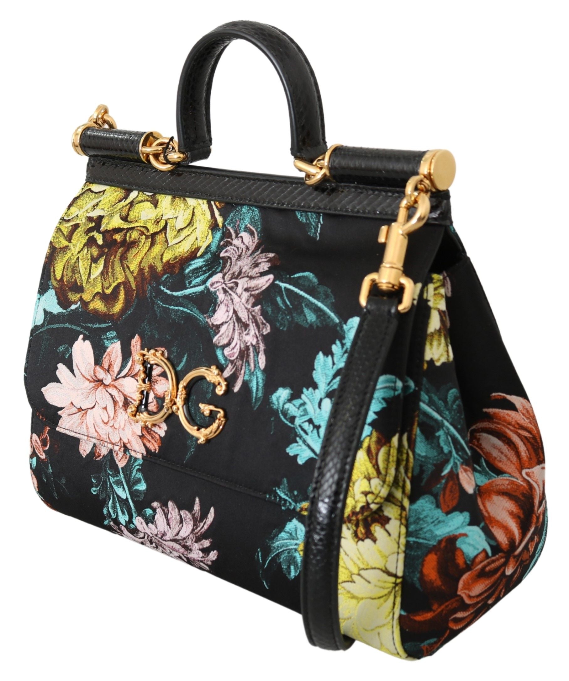 Indulge in the epitome of Italian luxury with the Dolce & Gabbana Sicily Shoulder Bag. Adorned with a vibrant floral print set against a sleek black background, this exquisite item blends classic elegance with a touch of modern flair. Crafted from a sumptuous blend of materials with a predominant composition of 70% PL and 30% Ayers Leather, this stunning bag boasts both beauty and durability. Gold metal accents provide a lavish finishing touch, exemplifying the brand’s attention to detail and commitment to opulence.