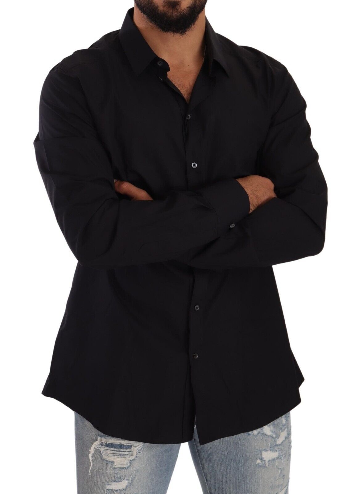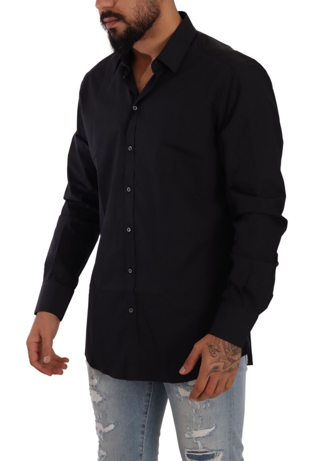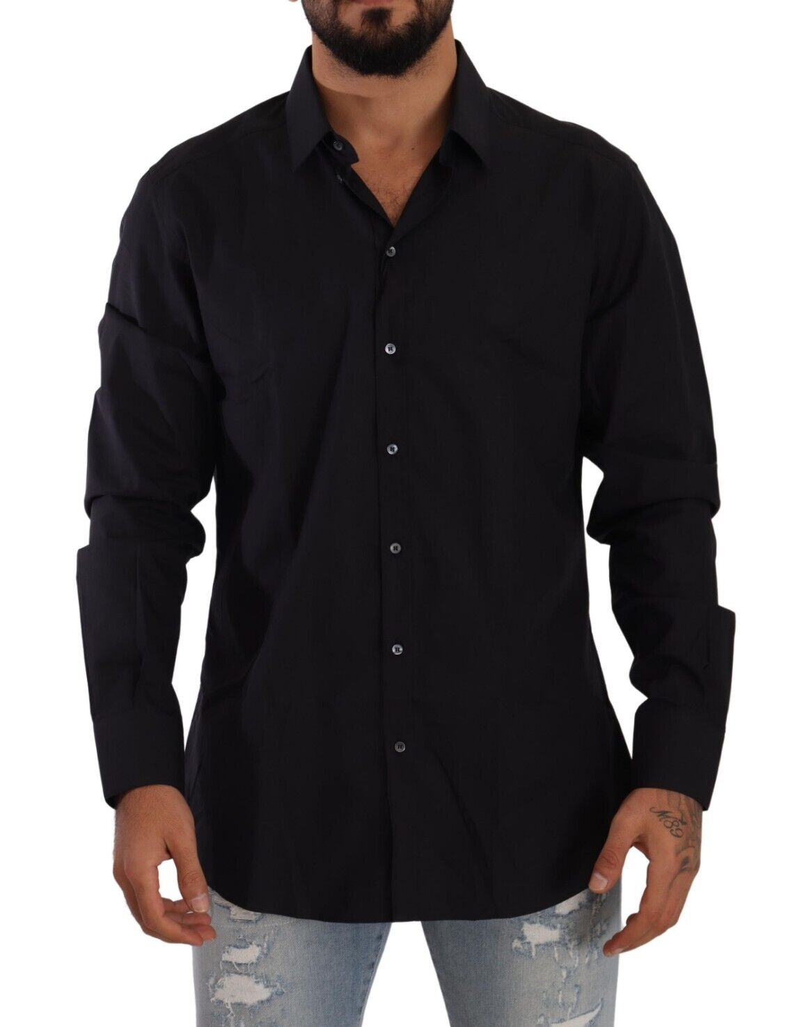 Introducing the epitome of sophistication with our exclusive Dolce & Gabbana dress shirt, from their esteemed GOLD collection. This piece exudes elegance with its sleek black hue and slim fit, crafted from the finest 100% cotton for a luxurious feel against the skin. Perfect for discerning gentlemen who demand both style and comfort.