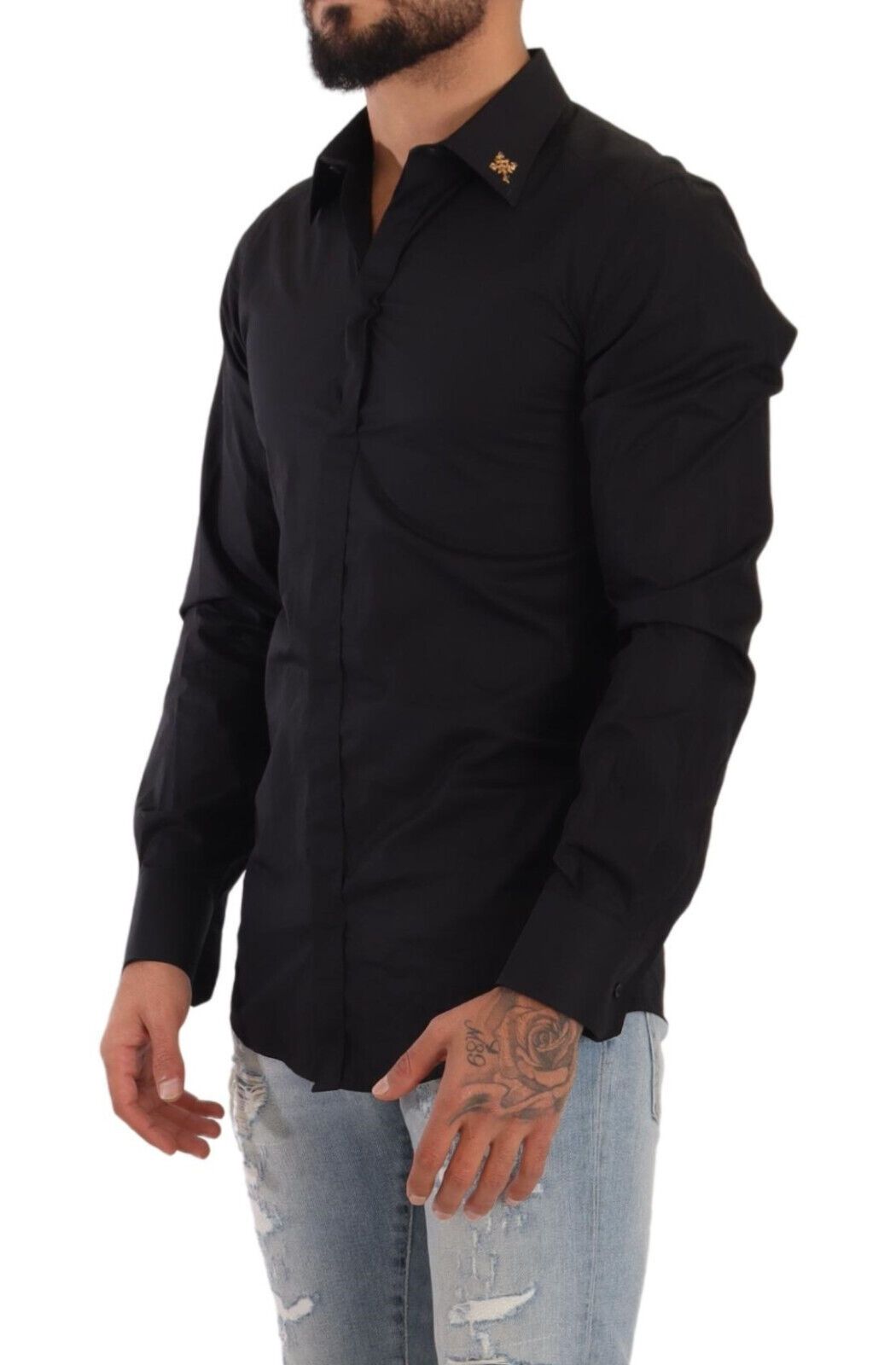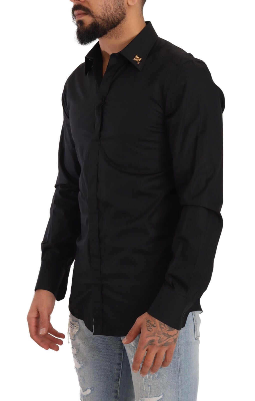 Experience the epitome of Italian craftsmanship with this exquisite Dolce & Gabbana GOLD dress shirt. Defined by its luxurious 100% cotton fabric, this shirt boasts a sharp slim fit that accentuates the silhouette. The classic neck, long sleeves, and sophisticated front button closure make it a timeless addition to any wardrobe. Intricate logo details add a dash of the brand’s iconic style, ensuring that this piece is not just a garment, but a statement.