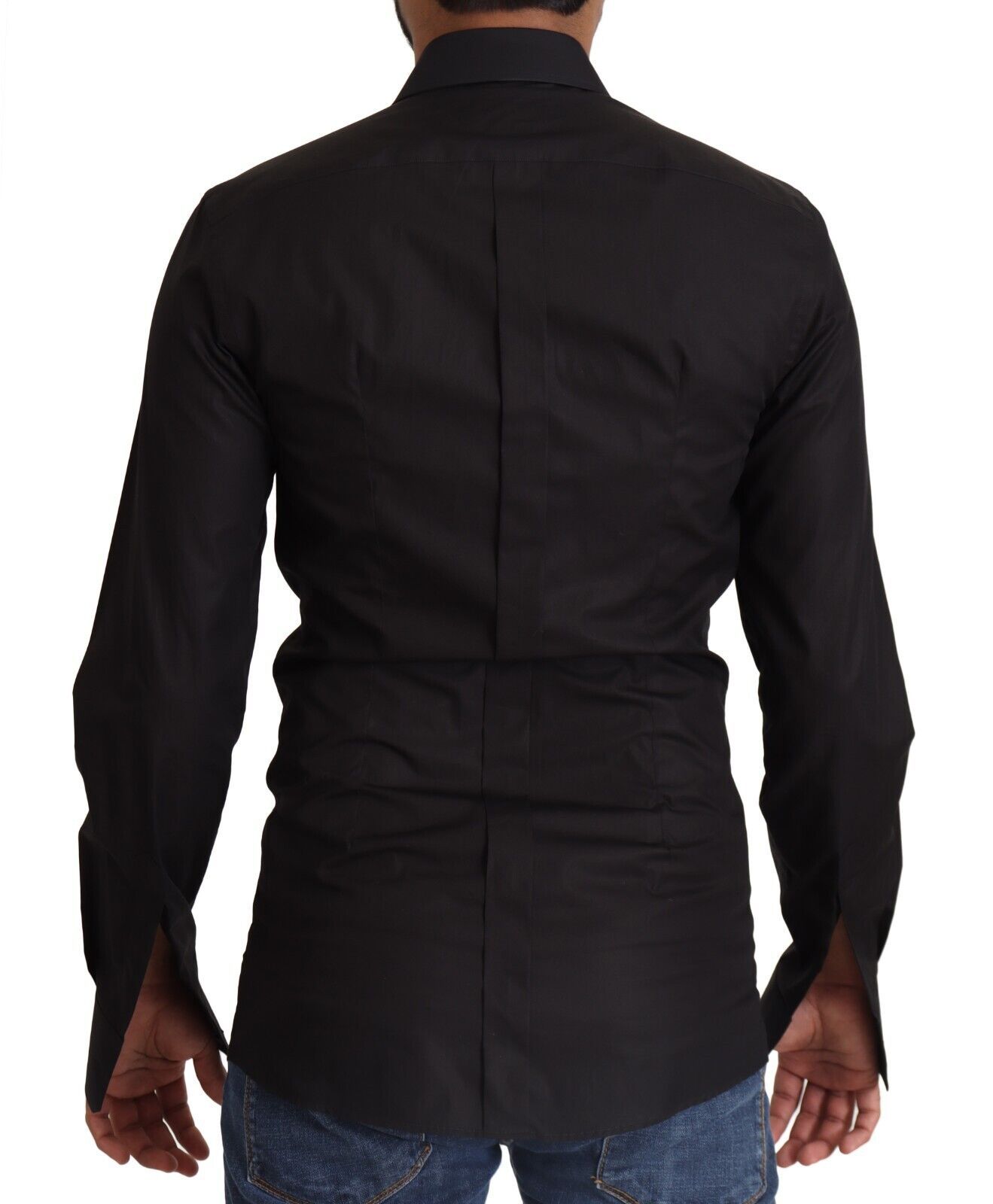Indulge in the epitome of sophistication with this absolutely stunning Dolce & Gabbana dress shirt. Perfect for the modern gentleman, this 100% authentic slim-fit GOLD model boasts exquisite embellishments, a classic collar, and is crafted from the finest black cotton. Designed with French cuffs and a front button closure, this shirt exudes elegance and Italian craftsmanship.