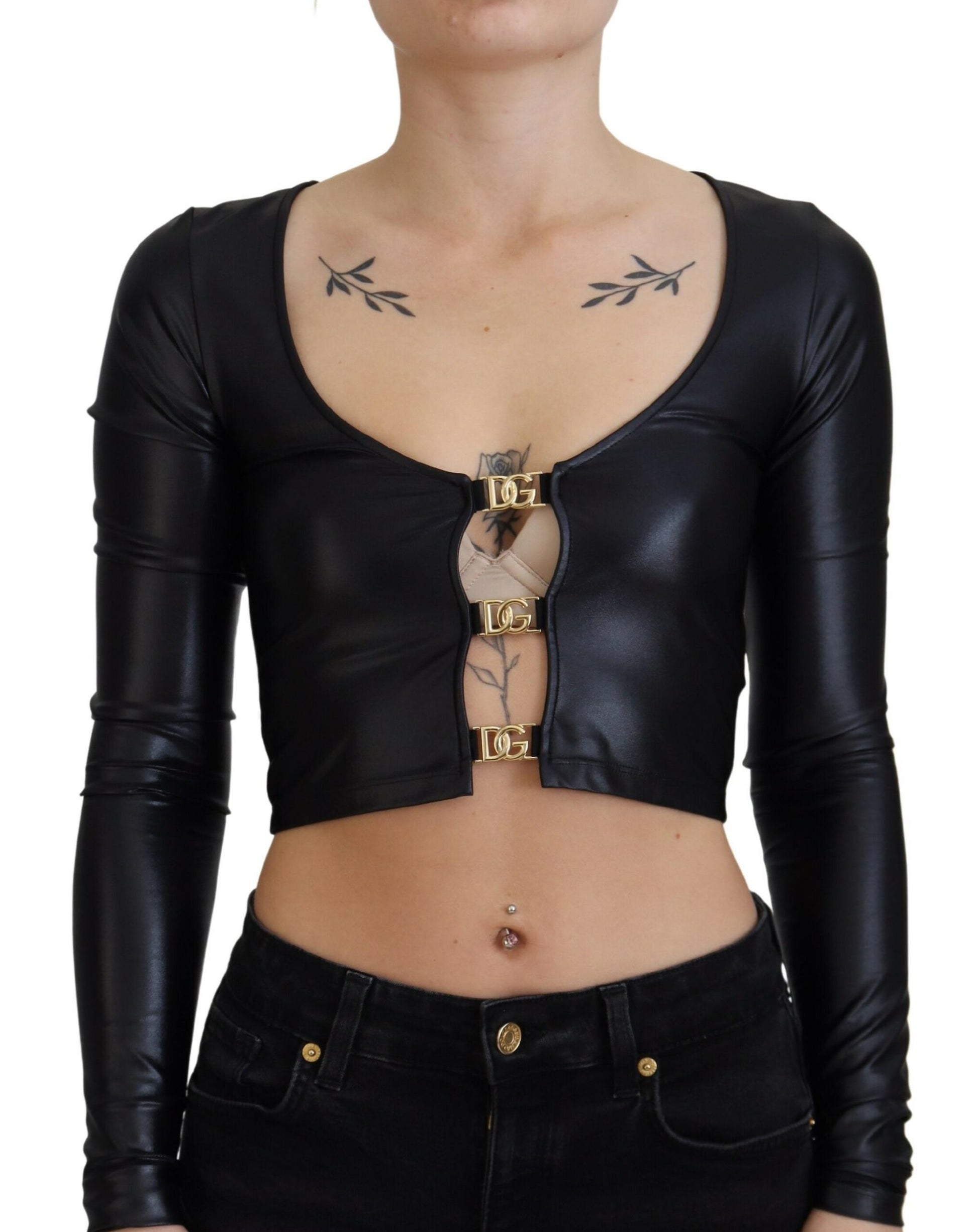 Embrace elegance with this gorgeous new arrival, a 100% Authentic piece from Dolce & Gabbana. This sleek black long sleeve top features a sophisticated buckle front closure, perfect for a casual yet chic look. Crafted in Italy with a blend of quality materials, it assures comfort with a touch of stretch.