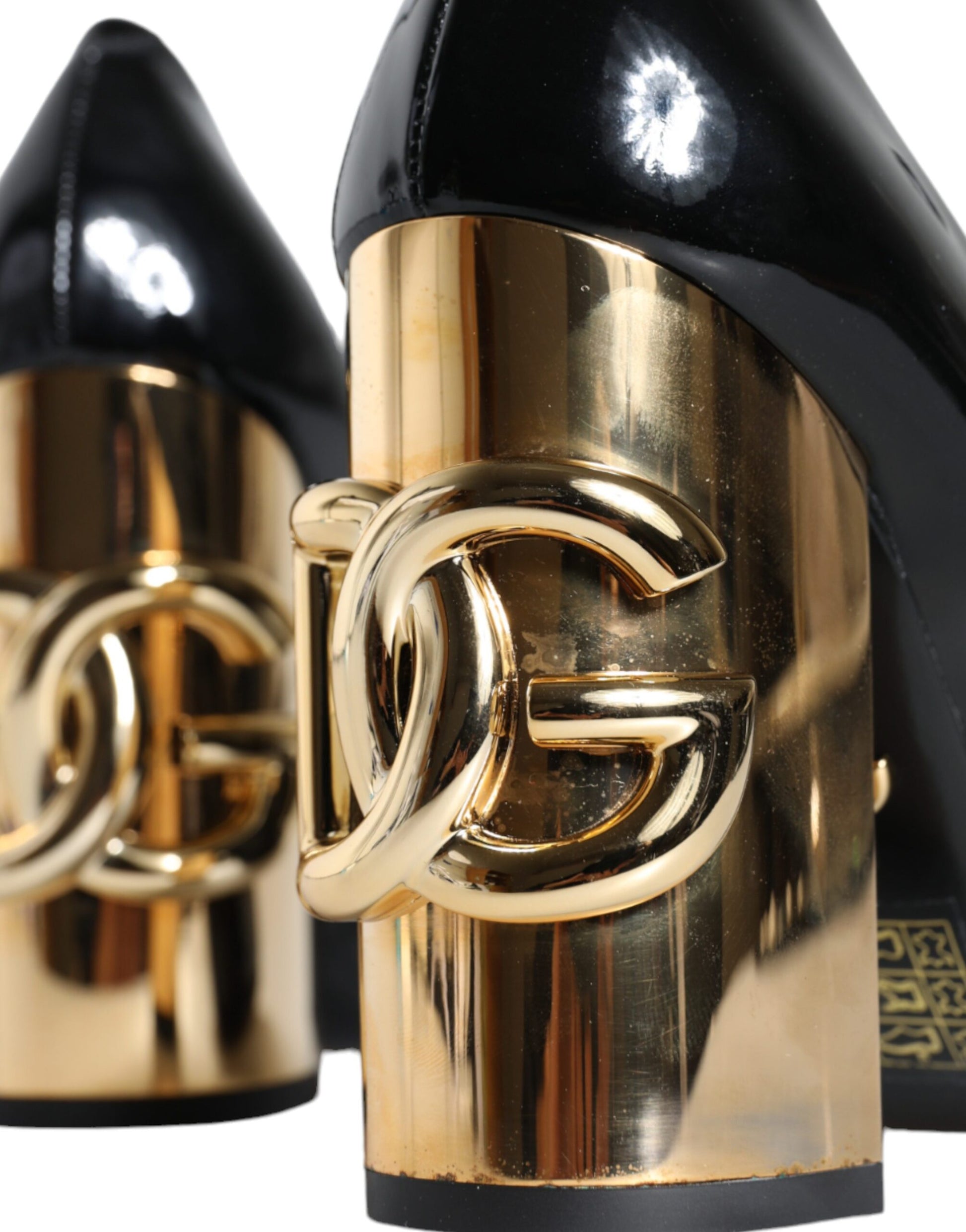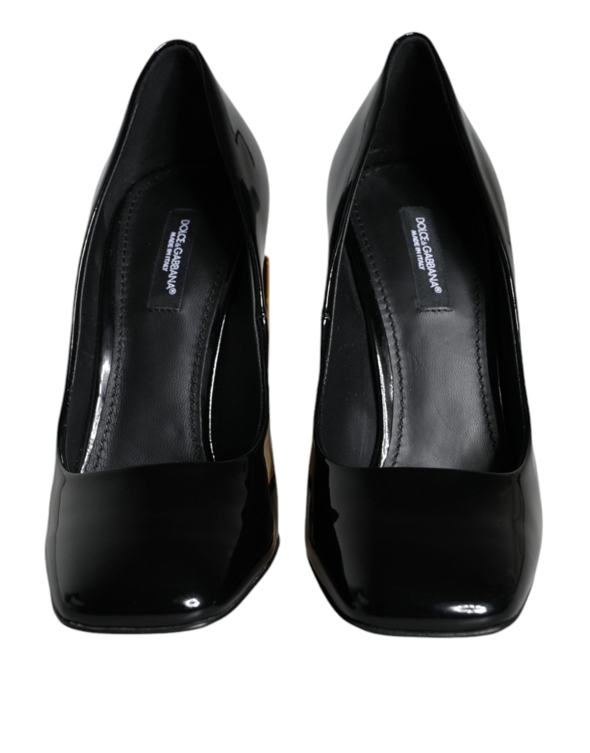 Black Gold Patent Leather Logo Heels Pumps Shoes