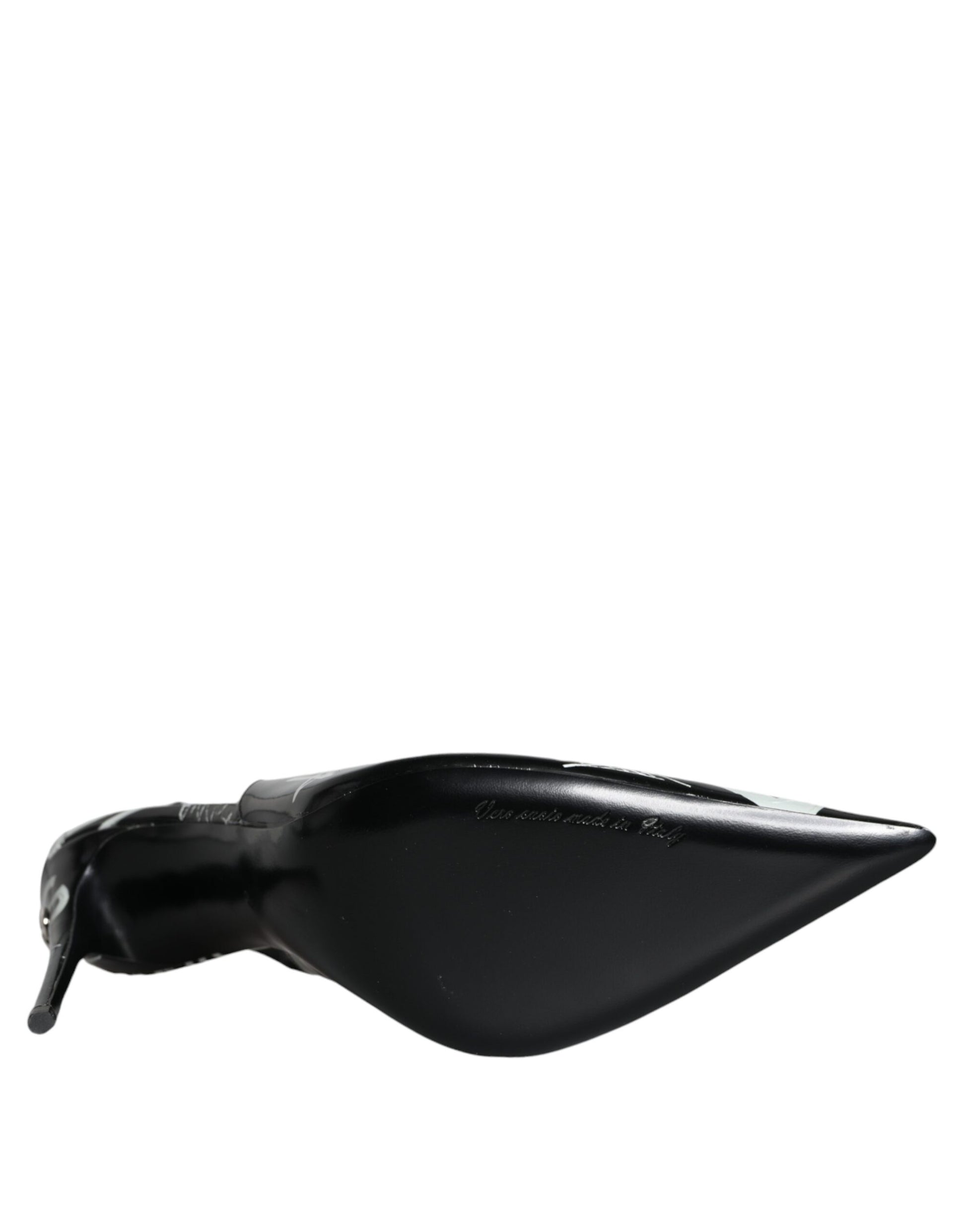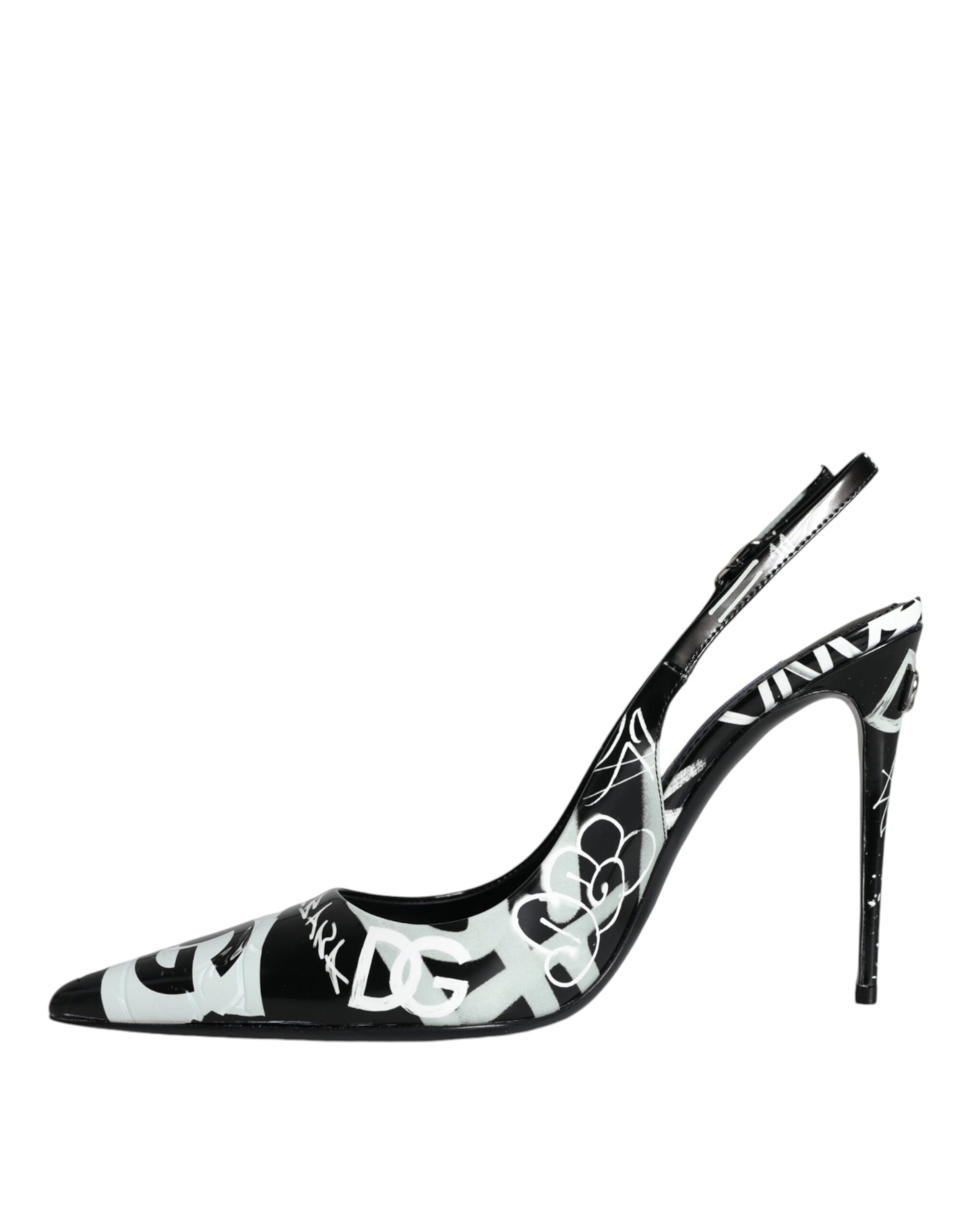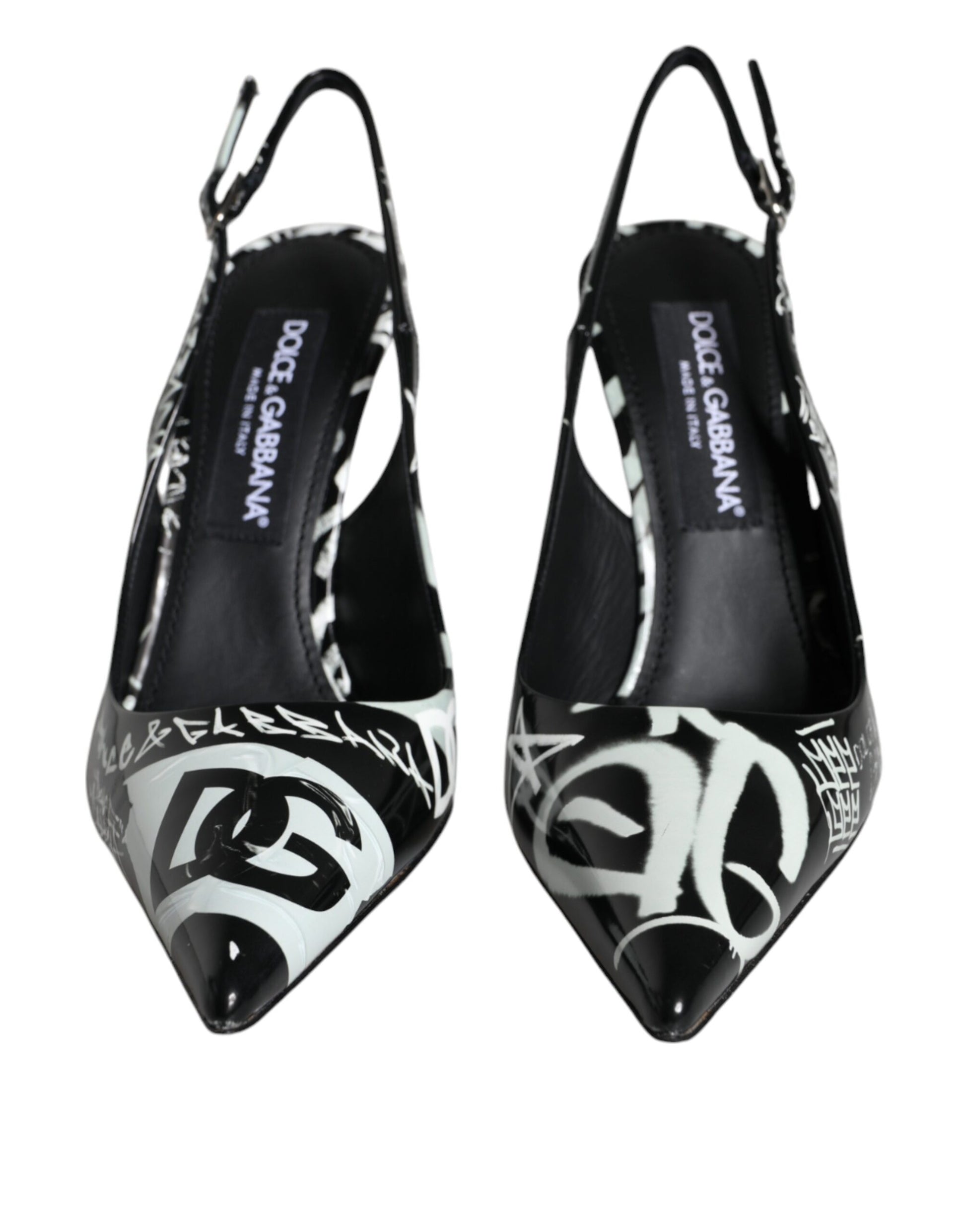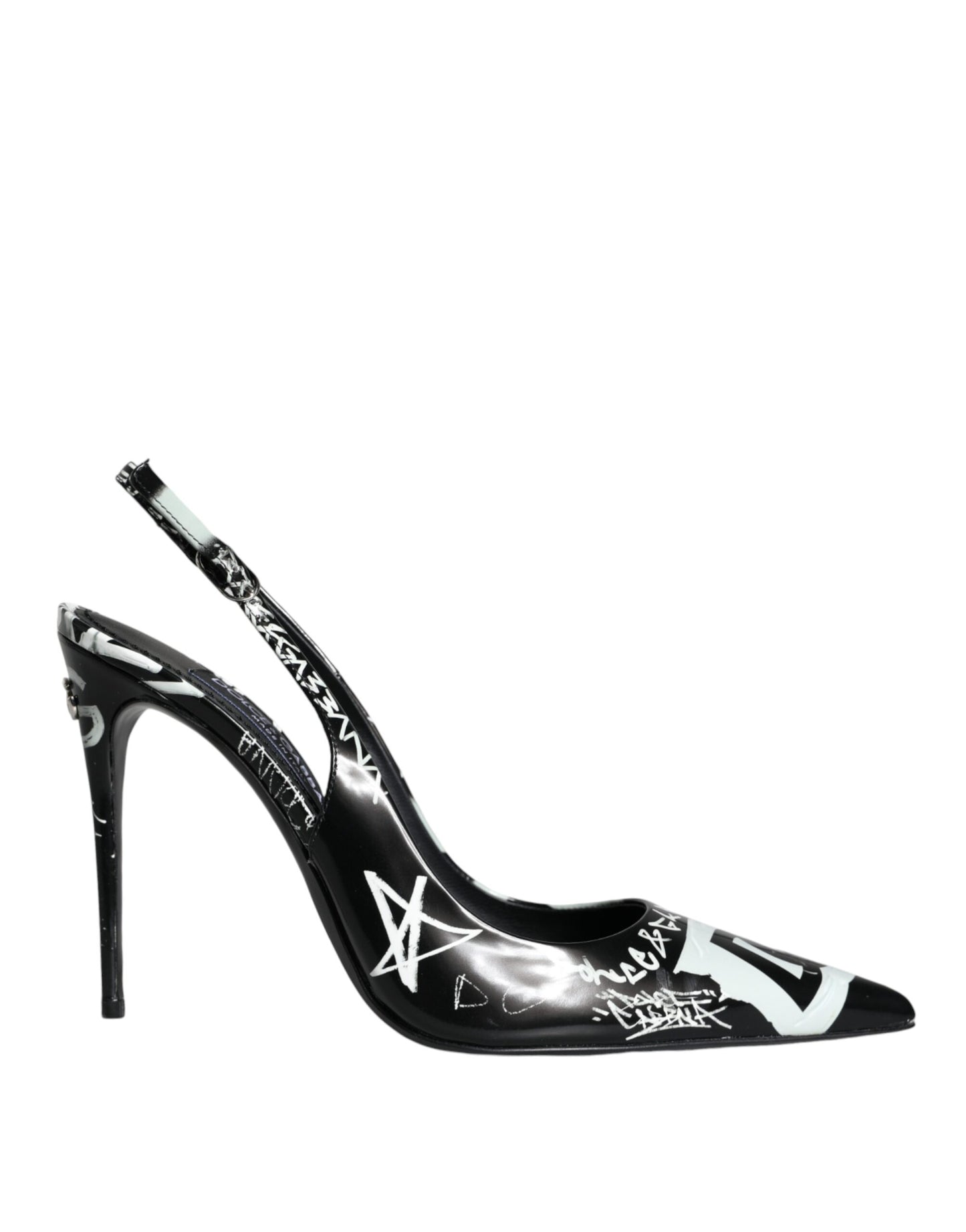 Black Graffiti Leather Slingback Heels Pumps Shoes