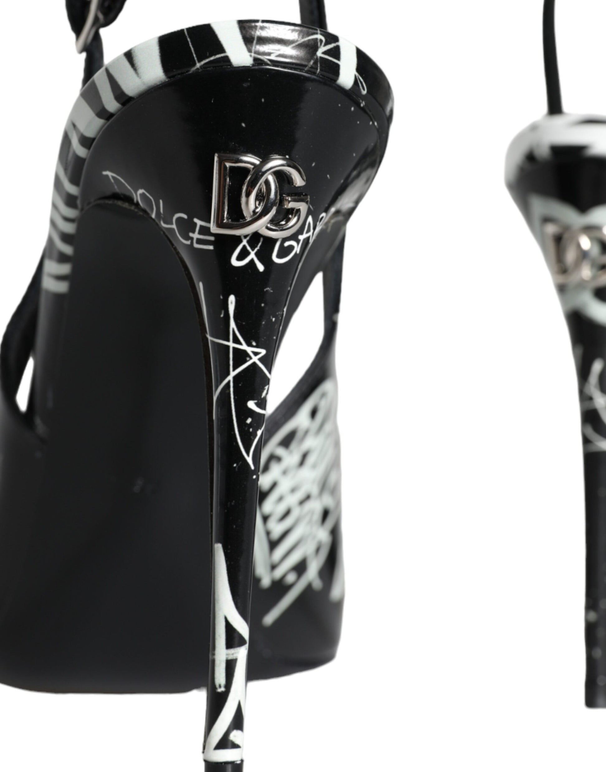 Gorgeous brand new with tags, 100% Authentic Dolce & Gabbana leather slingback heels pumps with graffiti print.