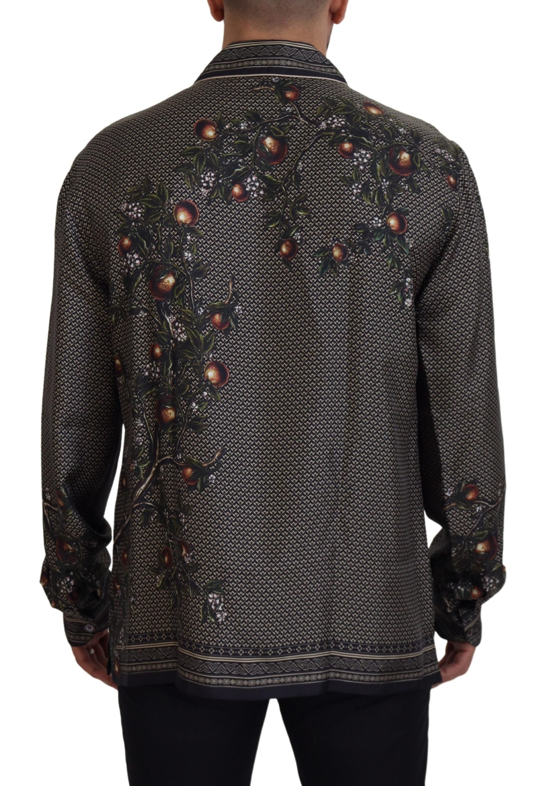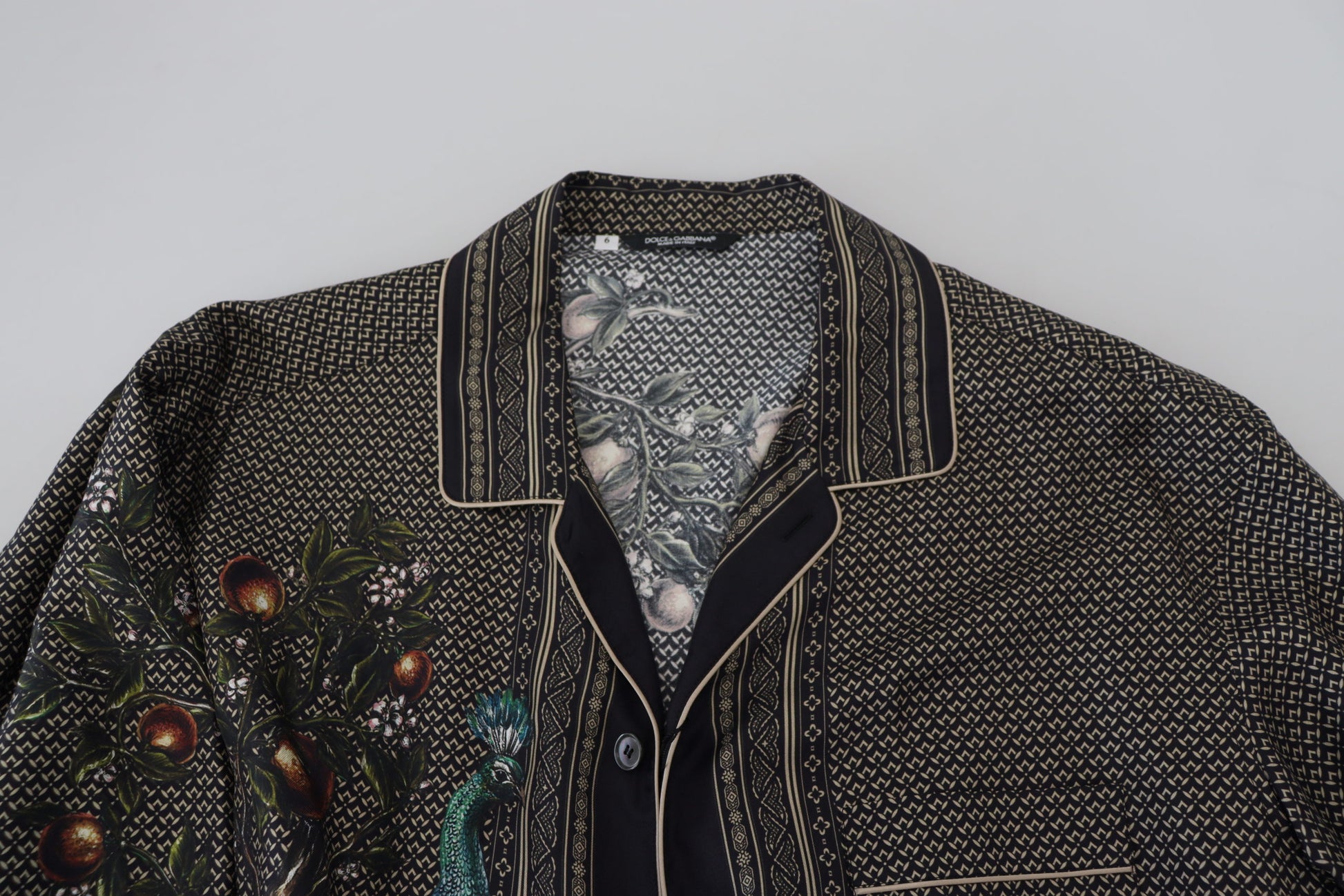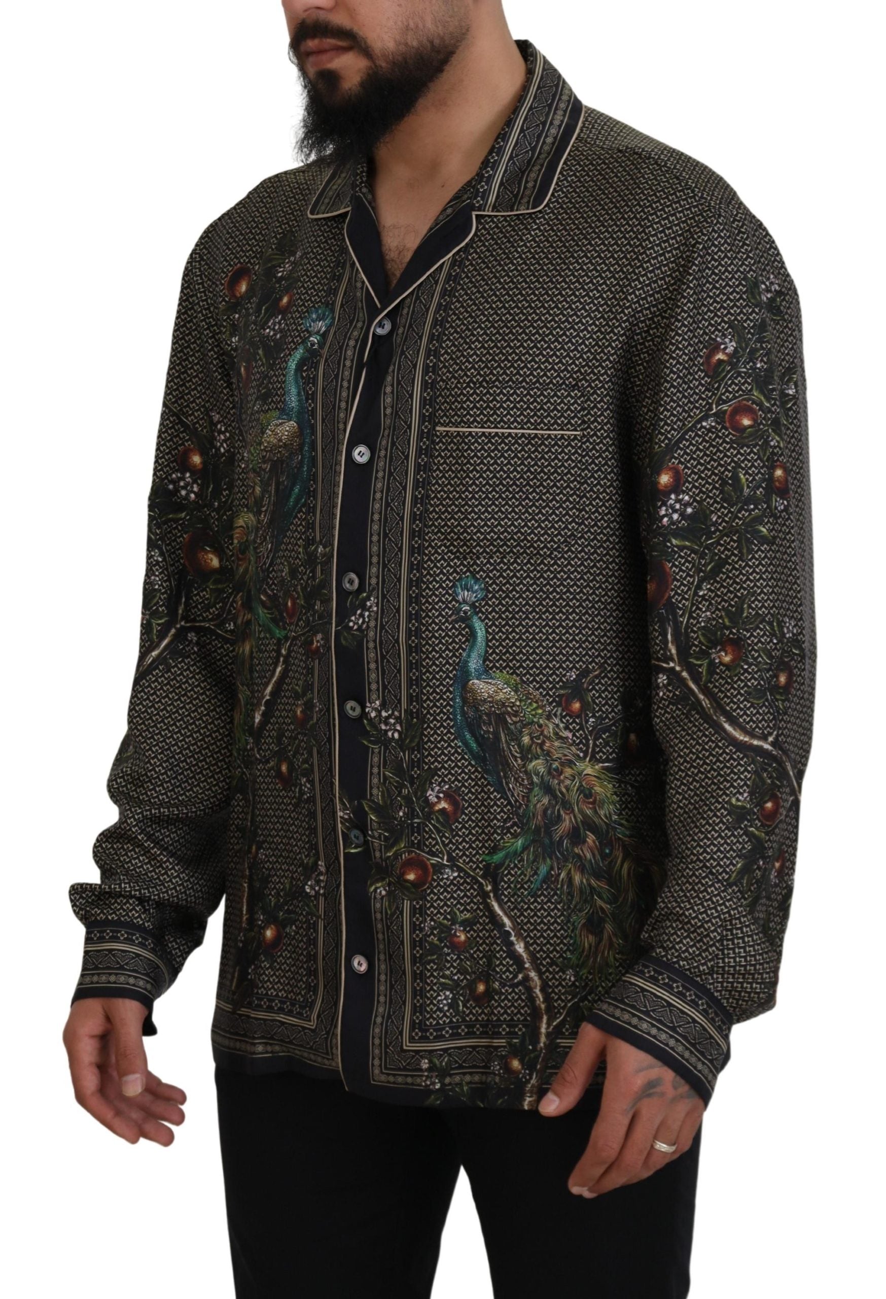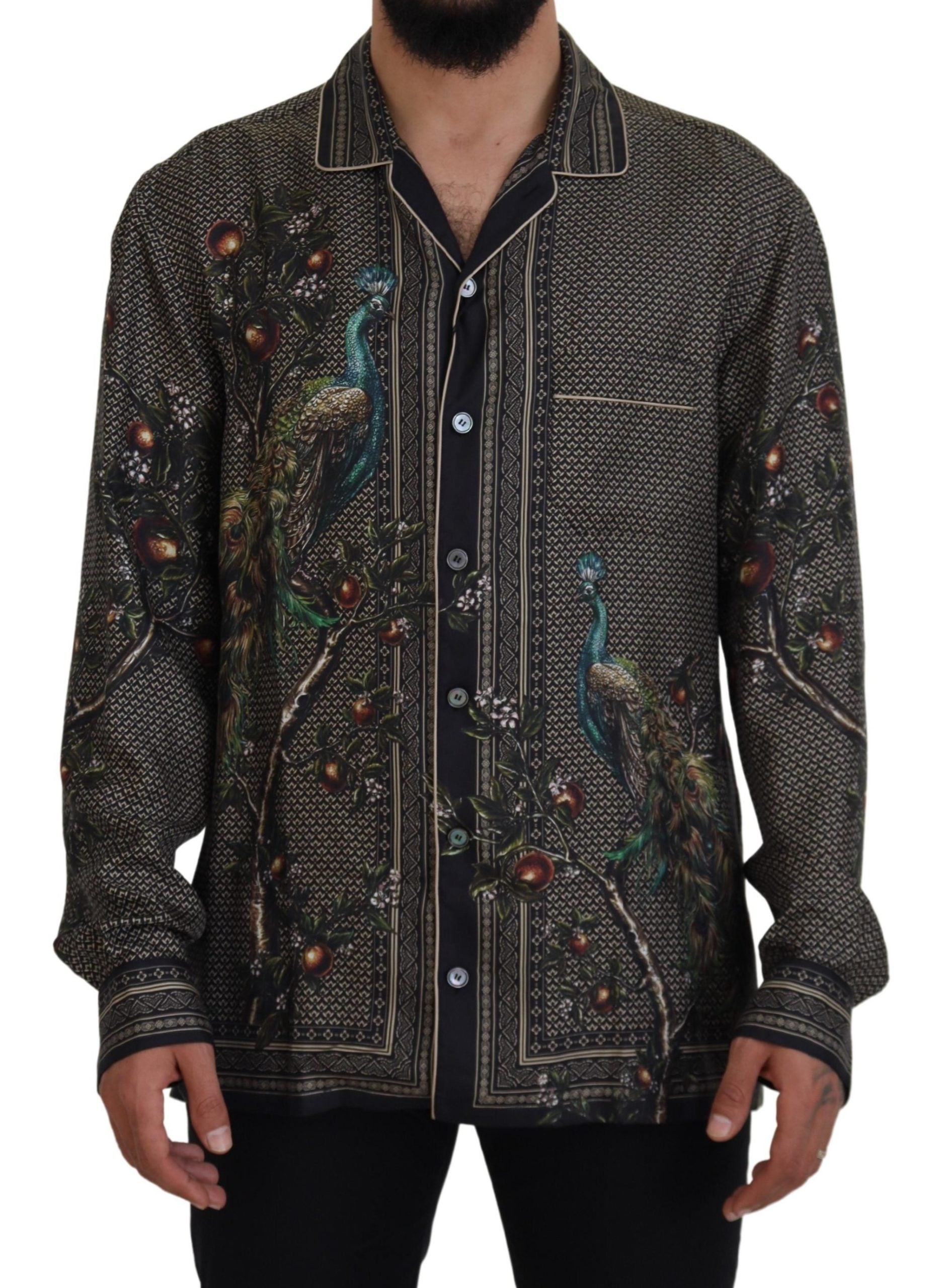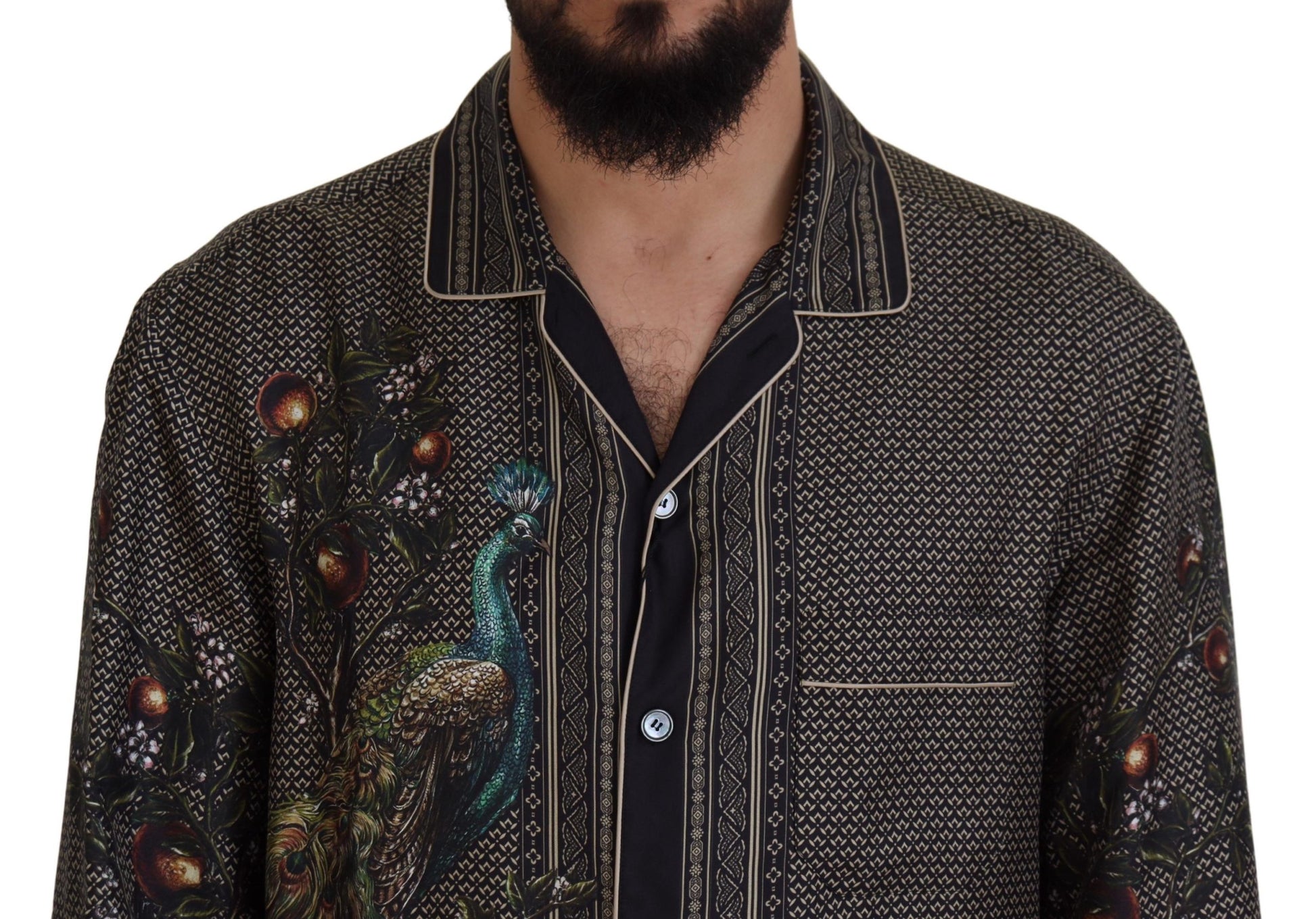 Indulge in the epitome of luxury with Dolce & Gabbana’s green and black Ostrich print shirt. This stunning piece echos sophistication, perfect for a discerning fashion enthusiast. Its silky material and casual pajama look offer a distinct blend of comfort and style, ensuring that it effortlessly elevates your wardrobe. The regular fit is ideal for any body type, and meticulous Italian craftsmanship is evident in every detail. Front button closures and the subtle logo details add a signature touch to this authentic piece. A must-have for those who appreciate the fine art of dressing.
