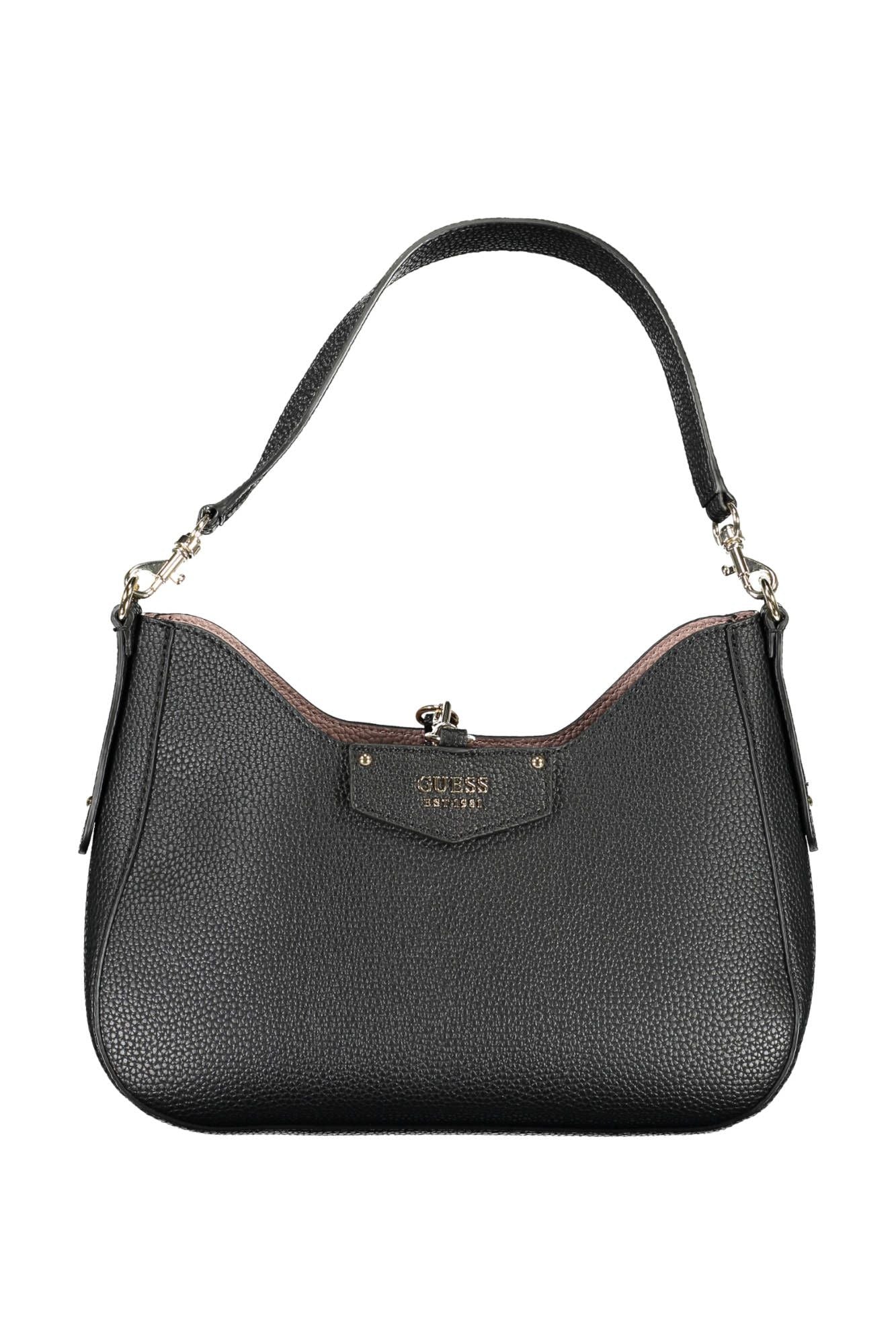 Indulge in the epitome of sophistication with this striking Guess Jeans handbag. Meticulously crafted from luxurious polyurethane, it boasts a sleek black hue that commands attention. Designed for versatility, it features a removable shoulder handle, paired with a convertible and detachable internal pochette for your essentials. Stay organized effortlessly with the internal pocket and dedicated card spaces. Security meets style with its zip closure and chic carabiner detail, all while the unmistakable Guess logo takes center stage, proclaiming your fashion-forward choice.