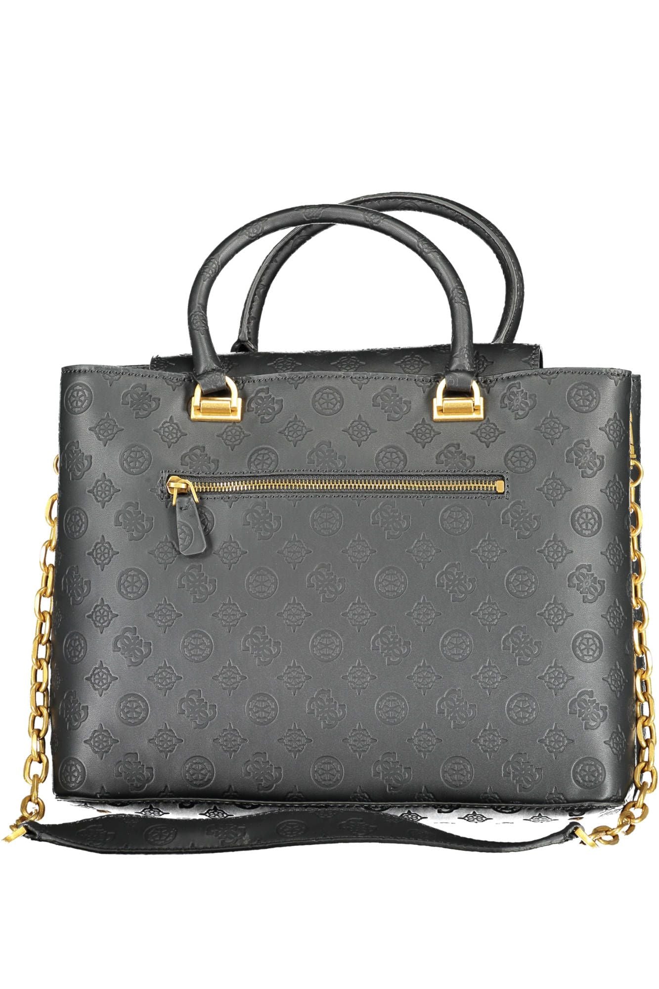 Elevate your accessories collection with the Guess Jeans handbag—a flawless blend of function and high-style. Its sleek black polyurethane body is accented by contrasting details and the iconic Guess logo, offering a statement piece that’s both versatile and chic. Make it your go-to with its comfortable 2 handles, optional chain shoulder strap, and an array of pockets designed to keep you organized on the go. Whether it’s a day out or an evening affair, this bag is a true showstopper.