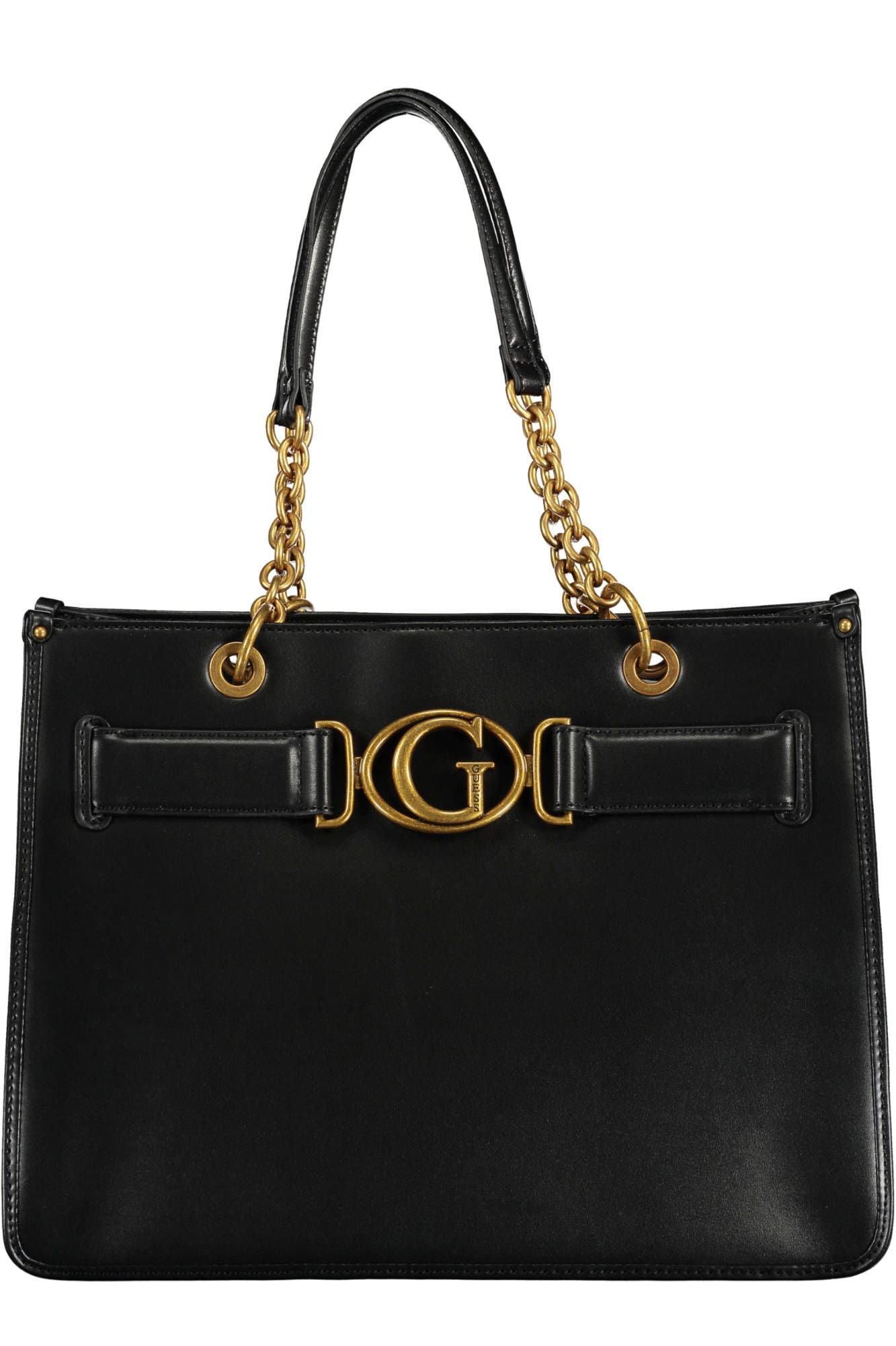 Elevate your style with the Guess Jeans chic shoulder bag, designed for the fashion-forward individual. This eye-catching accessory features a sleek black hue adorned with contrasting details that will stand out in any crowd. Practicality meets elegance with two comfortable shoulder handles and a secure clip closure to keep your essentials safe. Inside, three pockets provide ample organization for your daily needs. Crafted from durable polyurethane with meticulous attention to detail, this is more than just a bag—it’s a statement.