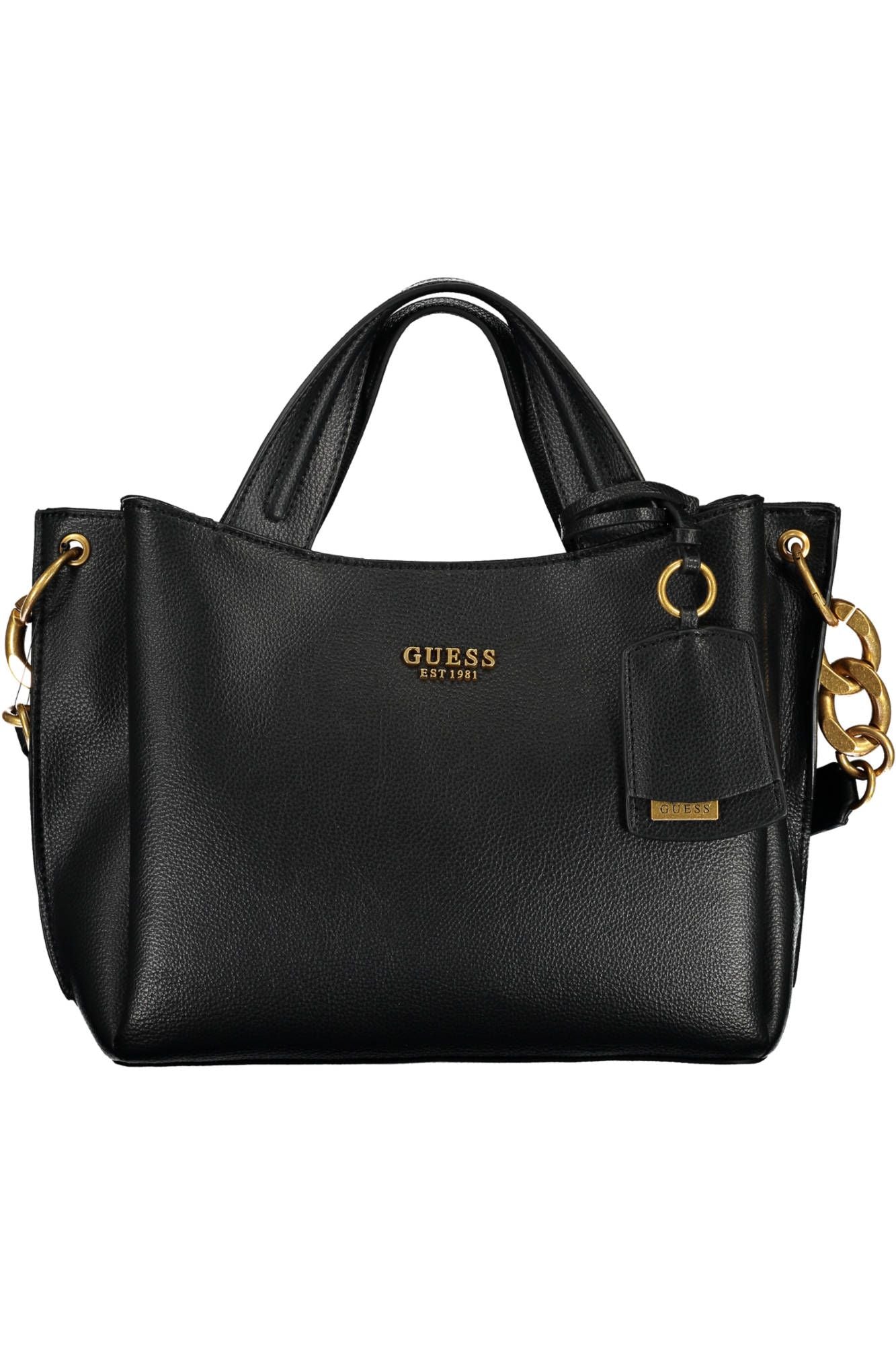 Experience the seamless blend of functionality and style with the Guess Jeans signature handbag. Crafted for the modern, trendsetting individual, this essential accessory features a sleek black polyurethane construction that promises durability and a luxurious feel. Its practical design boasts two handles for versatility, complemented by a detachable shoulder strap for when you’re on the move. Inside, indulge in organizational bliss with three separate compartments and trio of pockets, ensuring that your essentials remain secure and accessible. The chic clip closure and contrasting details only heighten the bag’s sophisticated allure, while the iconic Guess logo unapologetically announces your penchant for revered labels. Elevate your arm candy collection with this must-have piece.