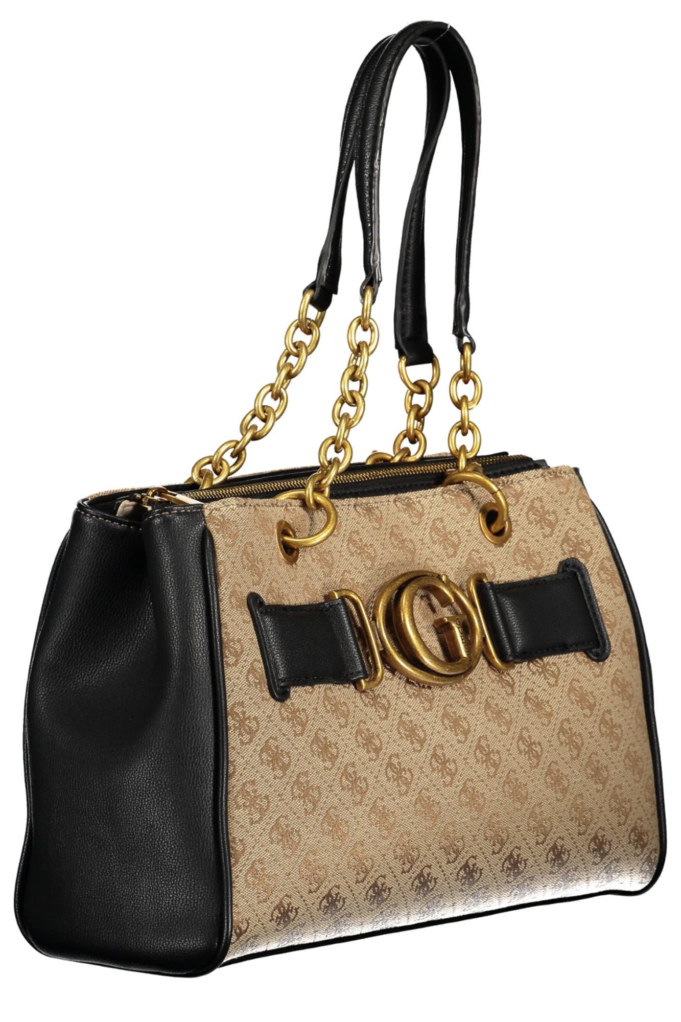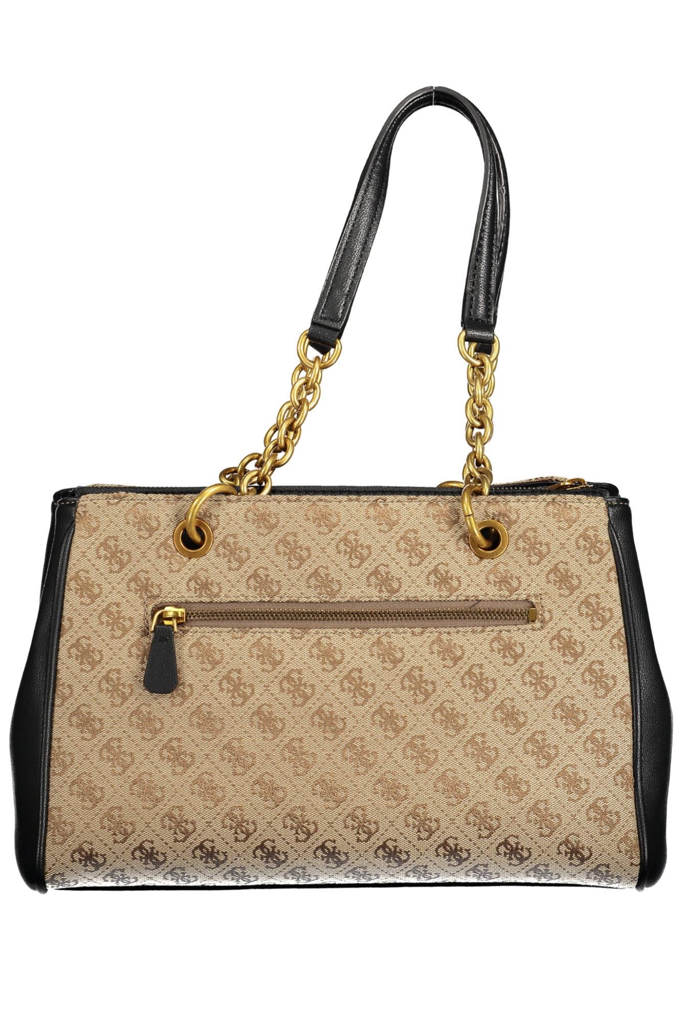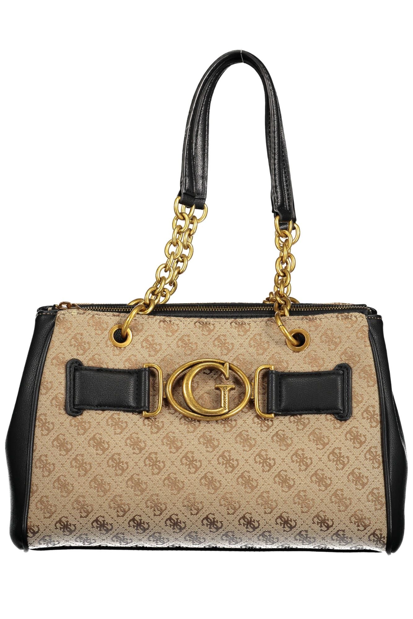 Make a statement with the ultra-chic Guess Jeans handbag, designed for the trendsetter on-the-go. Impeccably crafted in sleek black polyethylene, this bag boasts two elegant chain handles that add a touch of glamour to any ensemble. Stay organized and stylish with its practical external pocket, three distinct compartments, and dedicated central zip pocket. Keep essentials at hand in the internal pocket, and never fumble for your phone again with the convenient internal holder spaces. Contrasting details and the iconic Guess logo elevate the design, ensuring that both functionality and high fashion go hand-in-hand. From the office to the evening, this handbag transitions effortlessly, secured with a robust zip and snap closure.