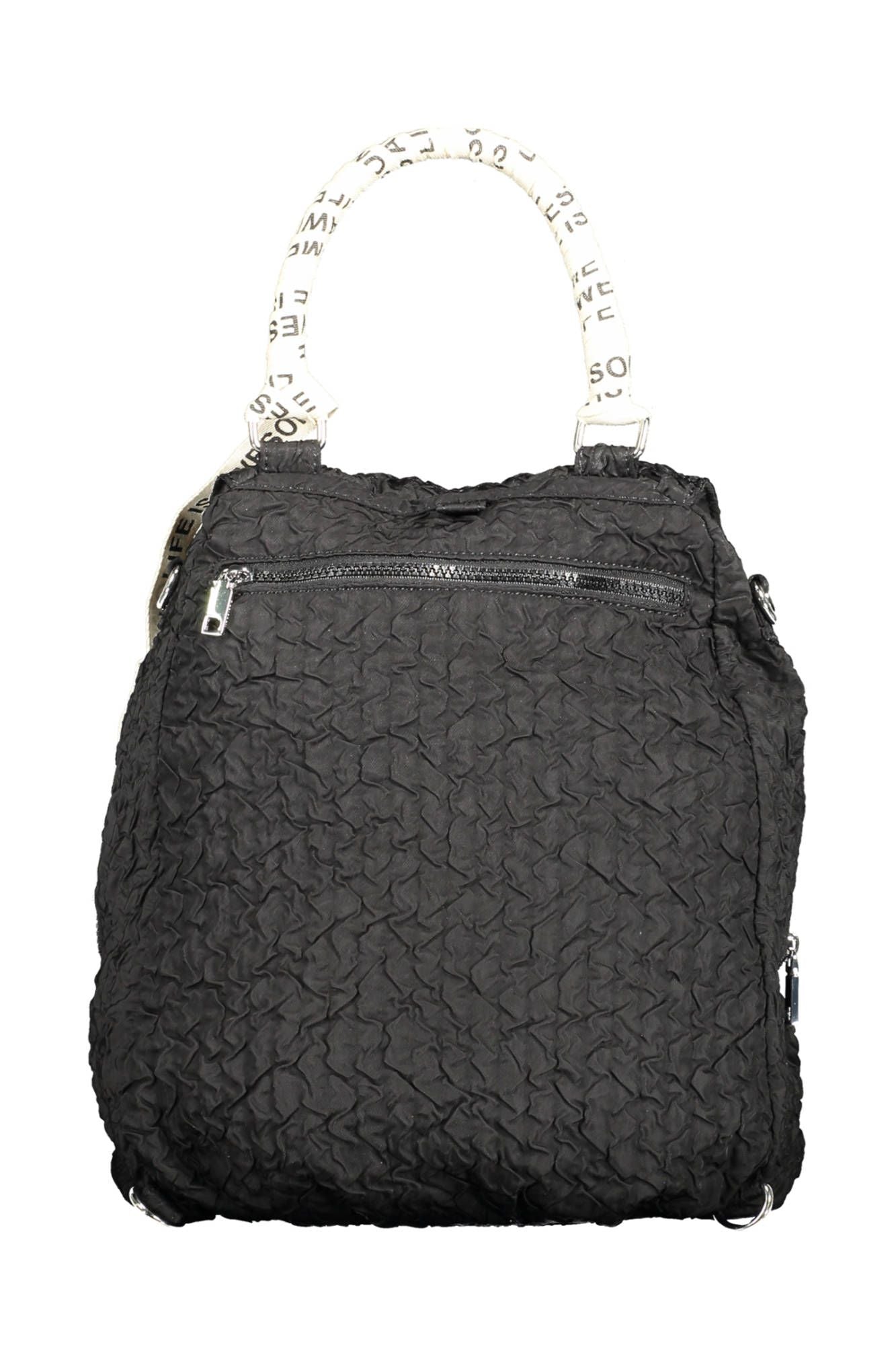 Elevate your accessory game with the sleek and versatile Desigual bag, a masterful blend of function and fashion. Transition seamlessly from a chic handbag to a stylish backpack with the adjustable and removable straps offered by this multifaceted piece. Outfitted with a duo of compartments and a secure zip closure, it’s ideal for safeguarding your essentials. The contrasting details and prominent Desigual logo add an edgy flair, while the external pockets provide quick access to your must-haves. A perfect companion for the bold and dynamic fashionista on the go.