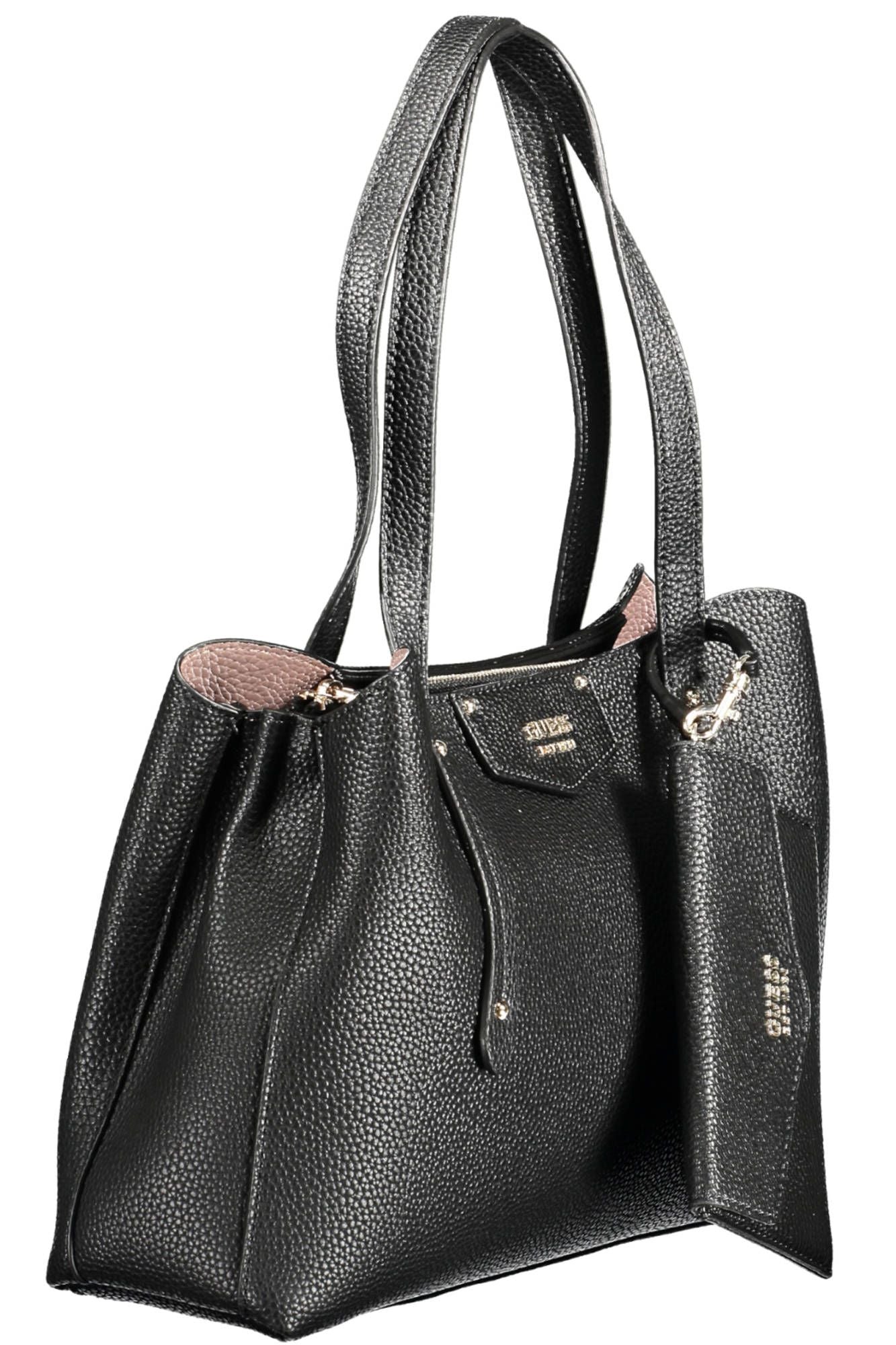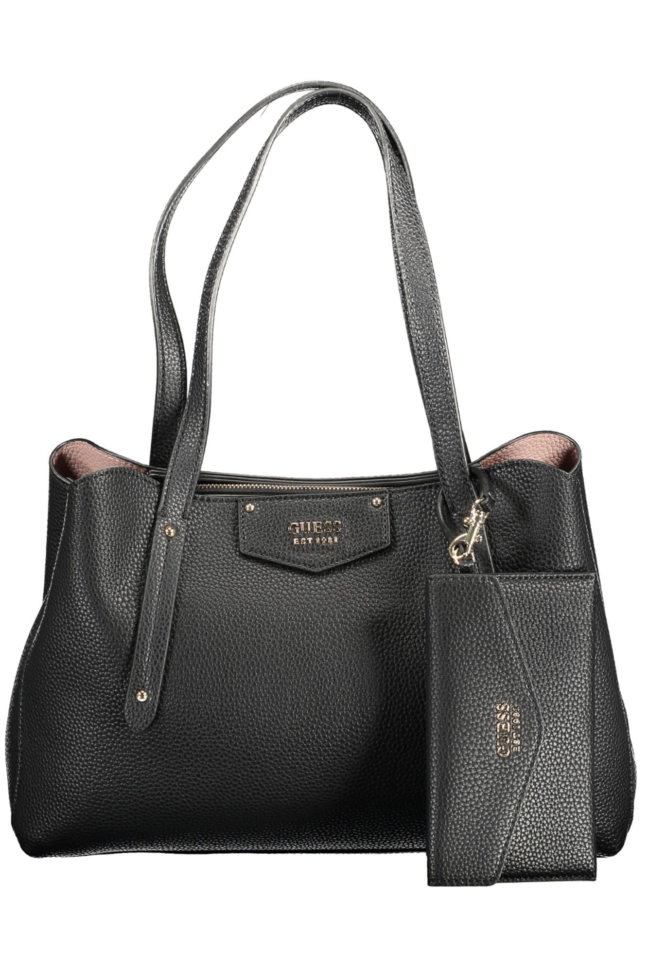 Elevate your accessory game with the iconic Guess Jeans handbag, where high-end fashion meets functionality. Crafted for the modern woman, this exquisite black tote boasts a sophisticated design with a seamless blend of style and utility. Its spacious dual compartments, coupled with a secure central pocket, keep your essentials organized, while the additional two inside pockets promise convenience. The removable document holder is a thoughtful addition, catering to your ever-changing needs. With its zip and snap closure, your valuables are safe and easily accessible. Accented with the unmistakable Guess logo, this bag isn’t just a carryall—it’s a statement.