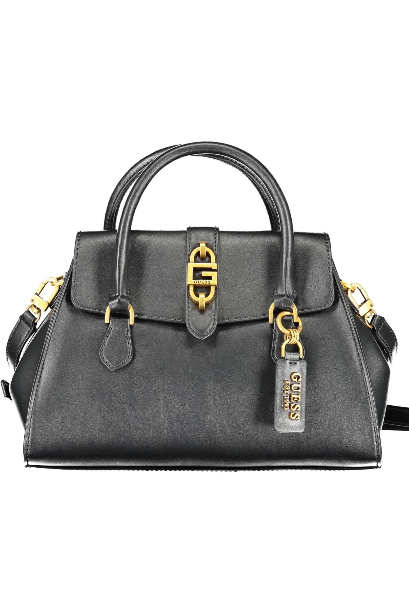 Dare to stand out with this Guess Jeans handbag – a sophisticated blend of functionality and style. Boasting an expandable design with chic buttons, it features two versatile handles alongside an adjustable, detachable shoulder strap for ultimate comfort. Stash your essentials securely in two external pockets or the discreet internal pocket adorned with handy card compartments. Contrasting details elevate its allure, while the iconic Guess Jeans logo assures its designer pedigree. Stride into your day with this black polyurethane must-have, designed to complement every ensemble and occasion.