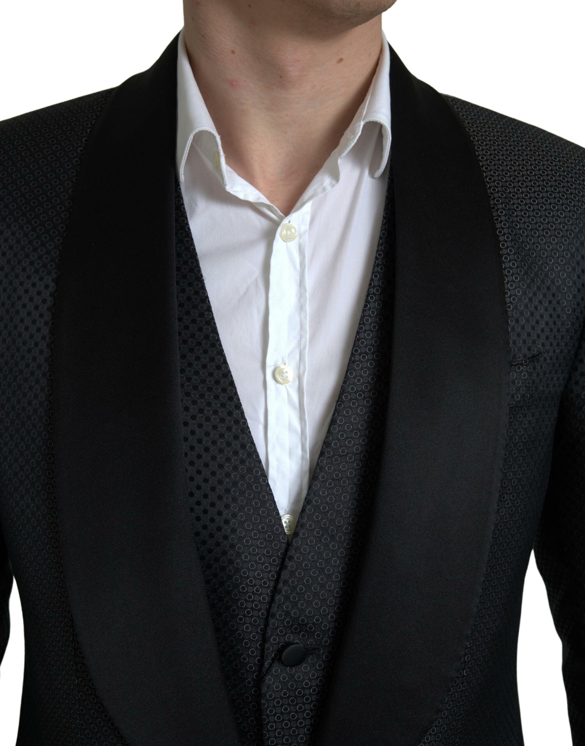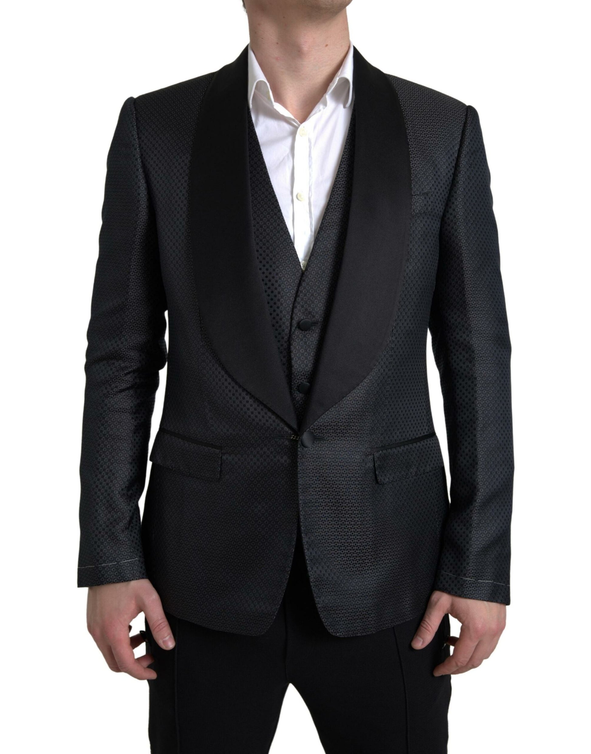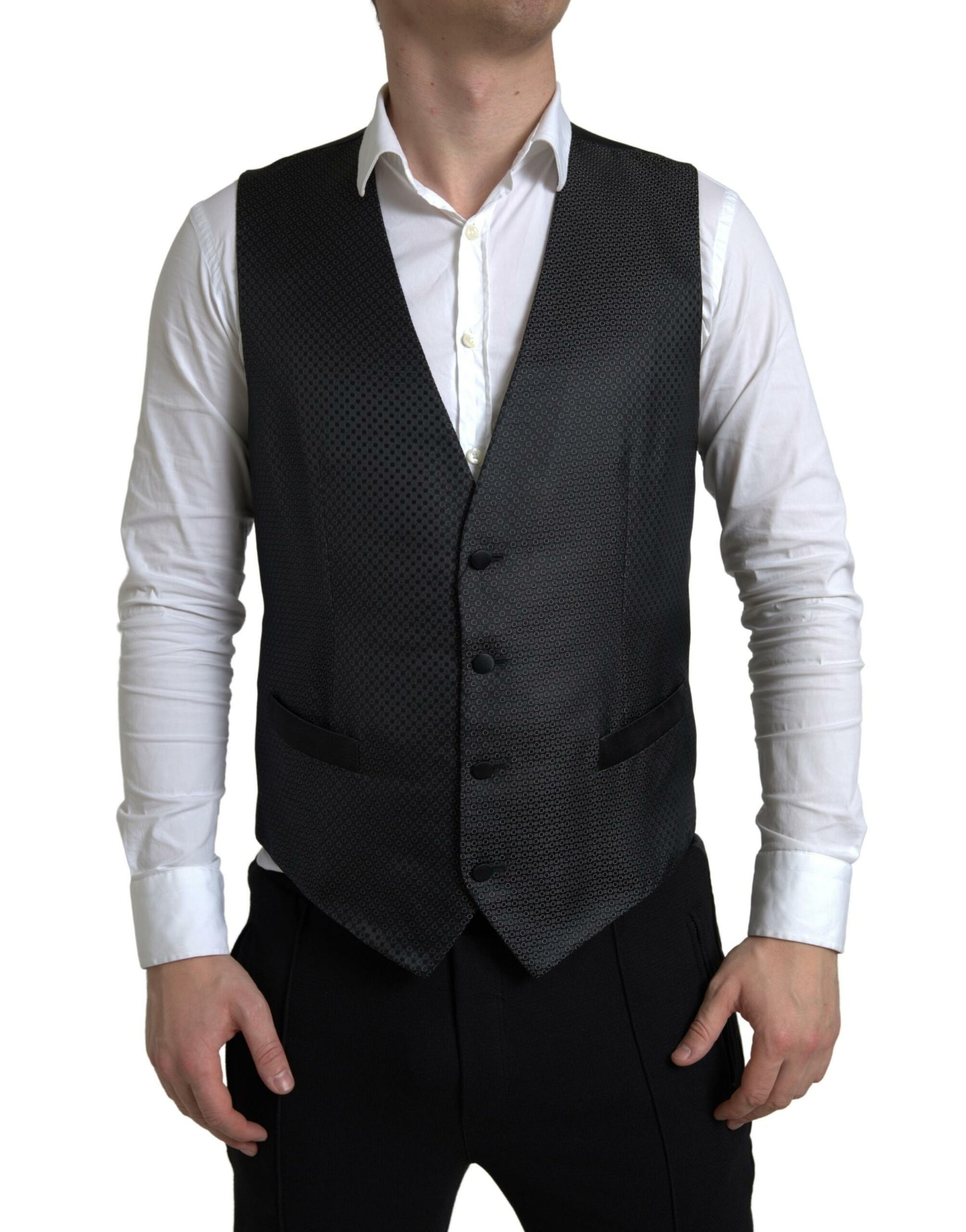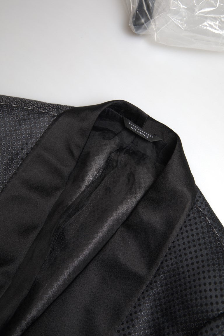 Step into the world of high fashion with this absolutely stunning, 100% authentic Dolce & Gabbana slim fit suit. Crafted with impeccable attention to detail, this single-breasted, two-piece suit is a testament to Italian craftsmanship. Perfect for elevating your formal attire, the sleek black color and luxurious silk-cotton blend material radiate an air of sophistication. Designed for the modern gentleman seeking a slim fit silhouette, this suit promises not only style but also comfort and durability.