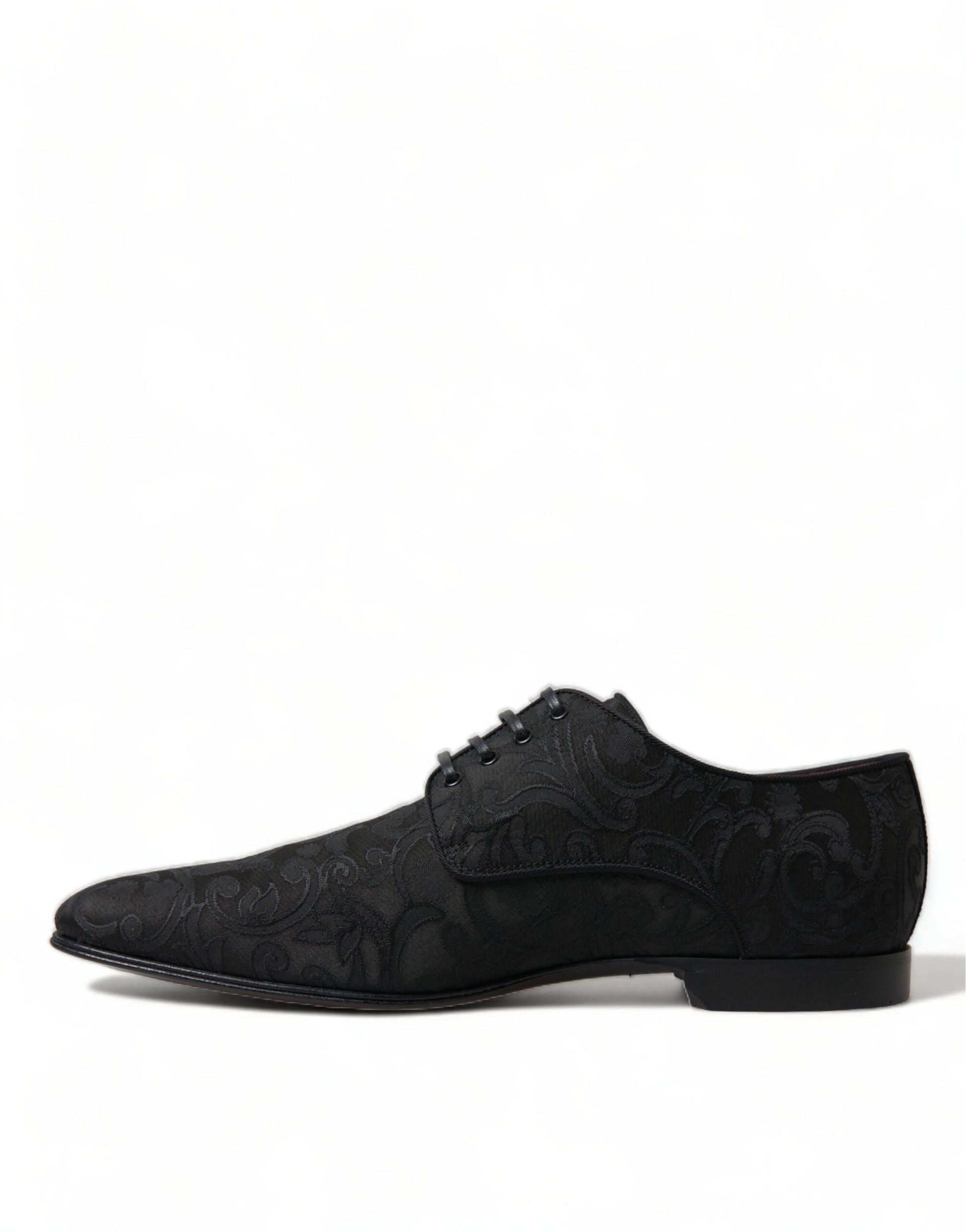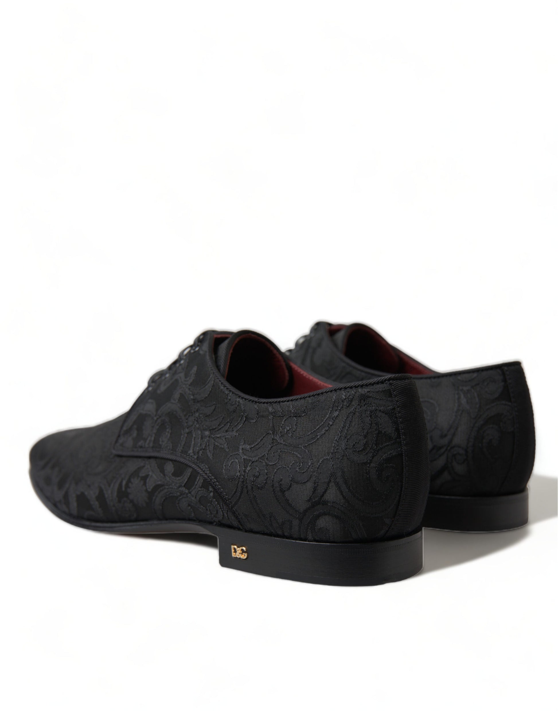 Step into refined elegance with these exquisite Dolce & Gabbana men’s derby dress shoes. These luxurious shoes feature intricate jacquard detailing, perfect for formal events or adding a sophisticated touch to your business attire. Expertly crafted in Italy, they boast superior craftsmanship and a design that radiates exclusivity.