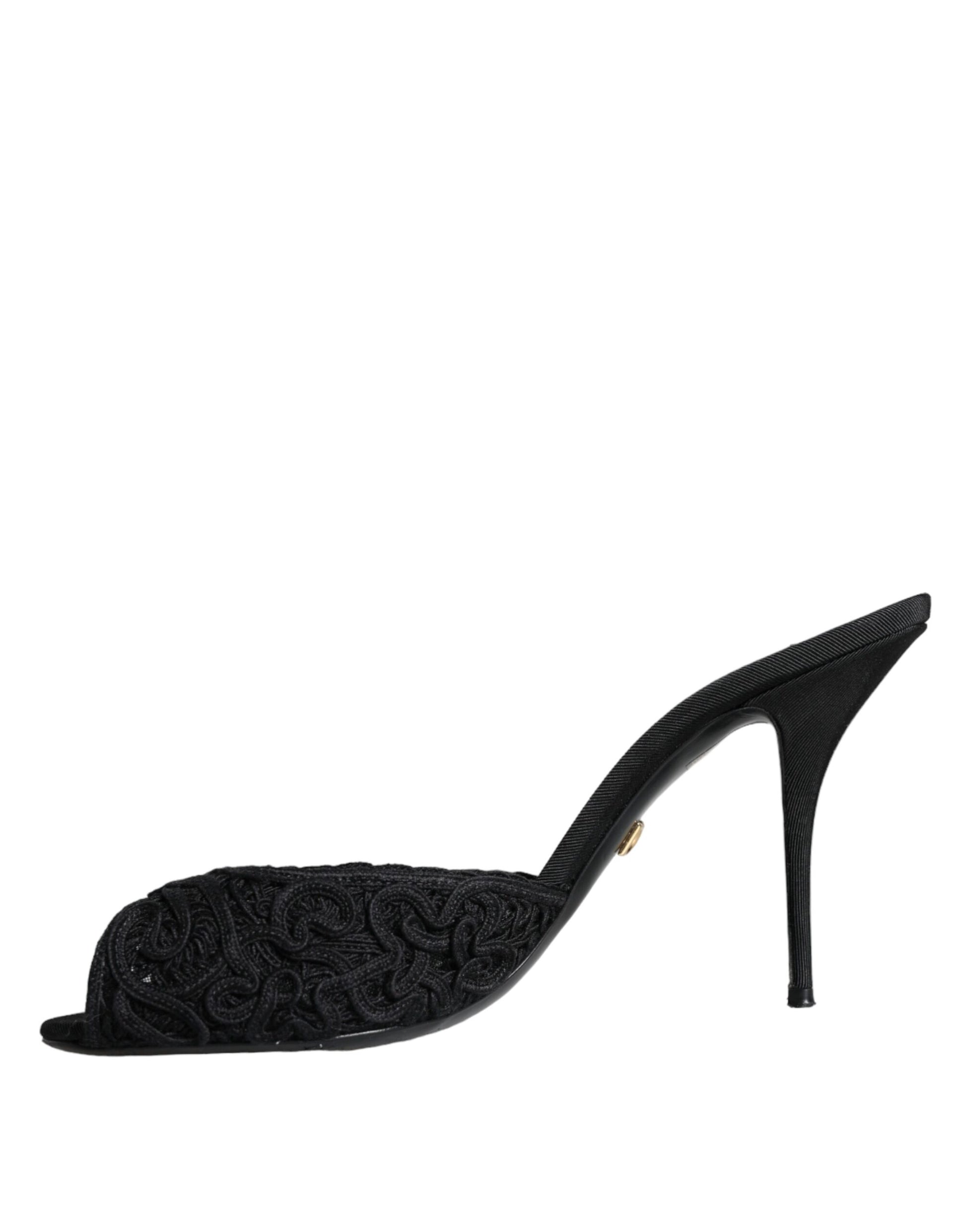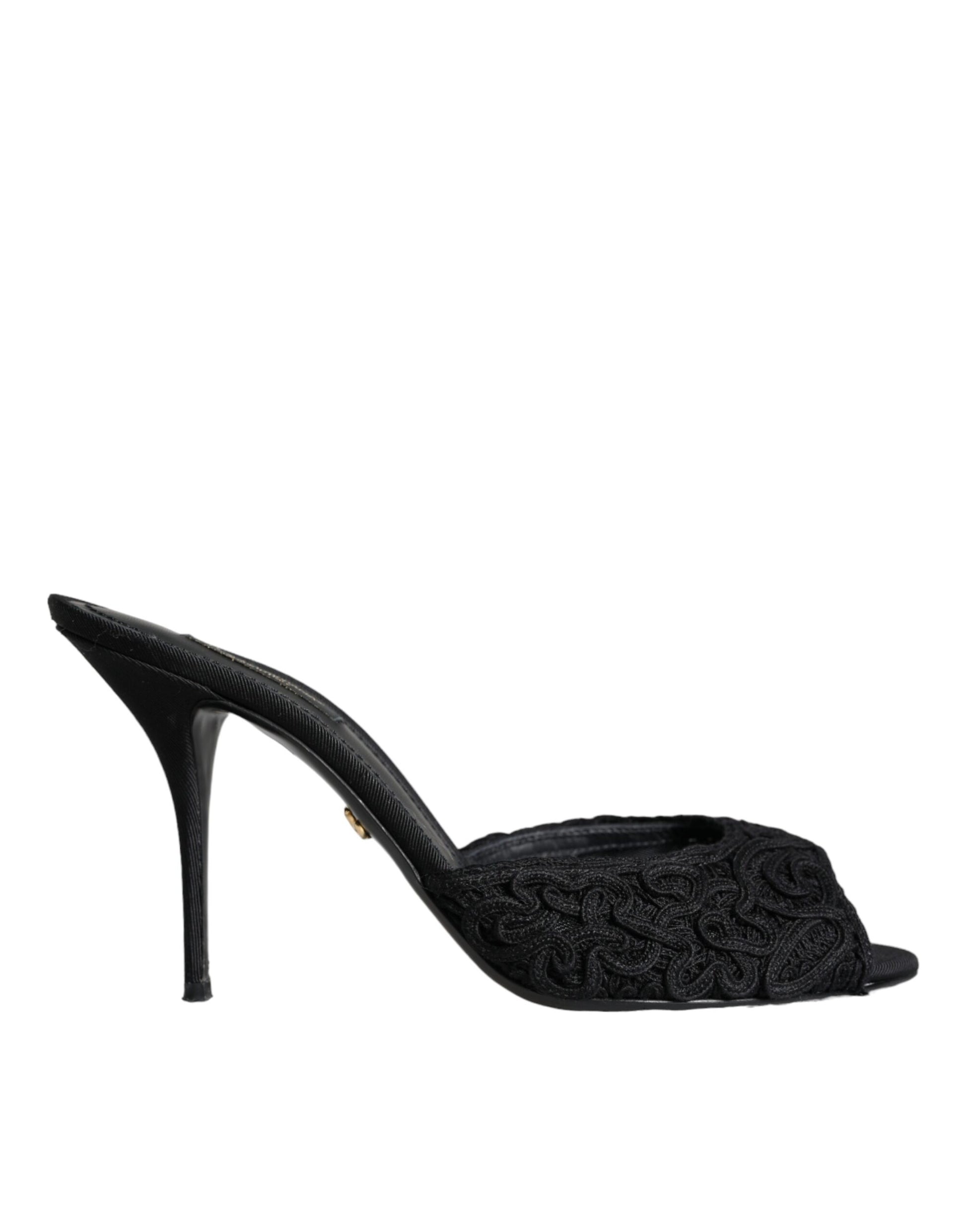 Black Keira Cordonetto Heels Slides Shoes