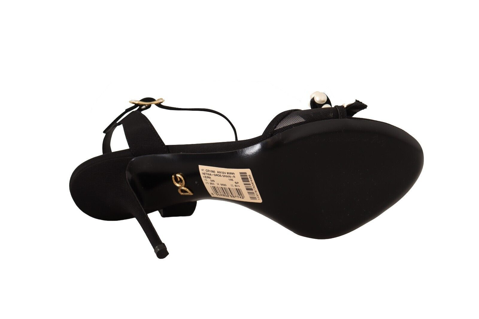 Indulge in the epitome of sophistication with these Dolce & Gabbana mesh ankle strap heels, accented with exquisite faux pearl appliqués. With a design that embodies grace and opulence, these black high-heeled sandals feature an open-toe and are crafted from the finest leather and mesh to ensure ultimate comfort and enduring quality. Straight from the runways of Italy, they bear the hallmark logo details that resonate with luxury and style.