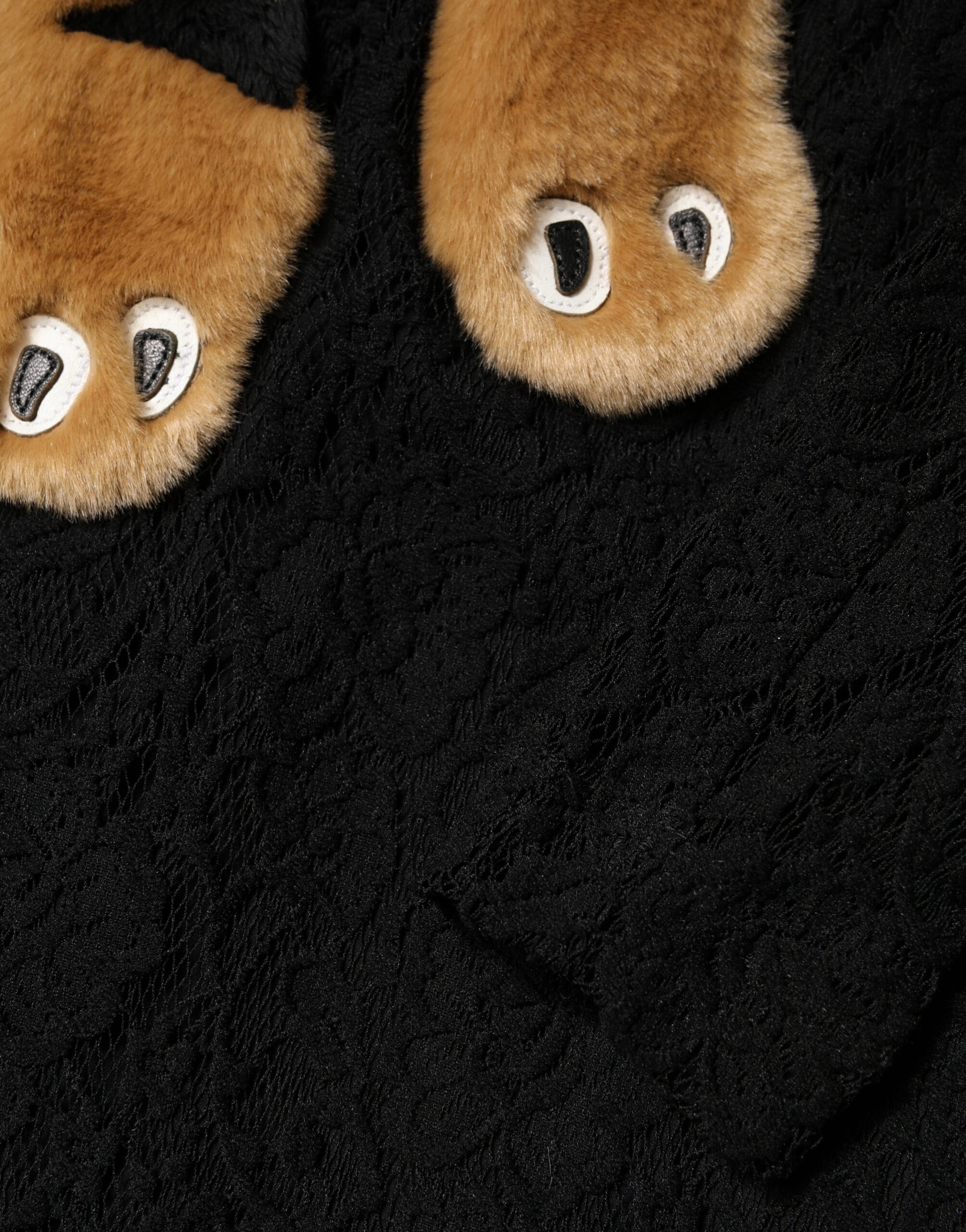 Black Lace Faux Fur Tiger Appliqué Sheath Dress