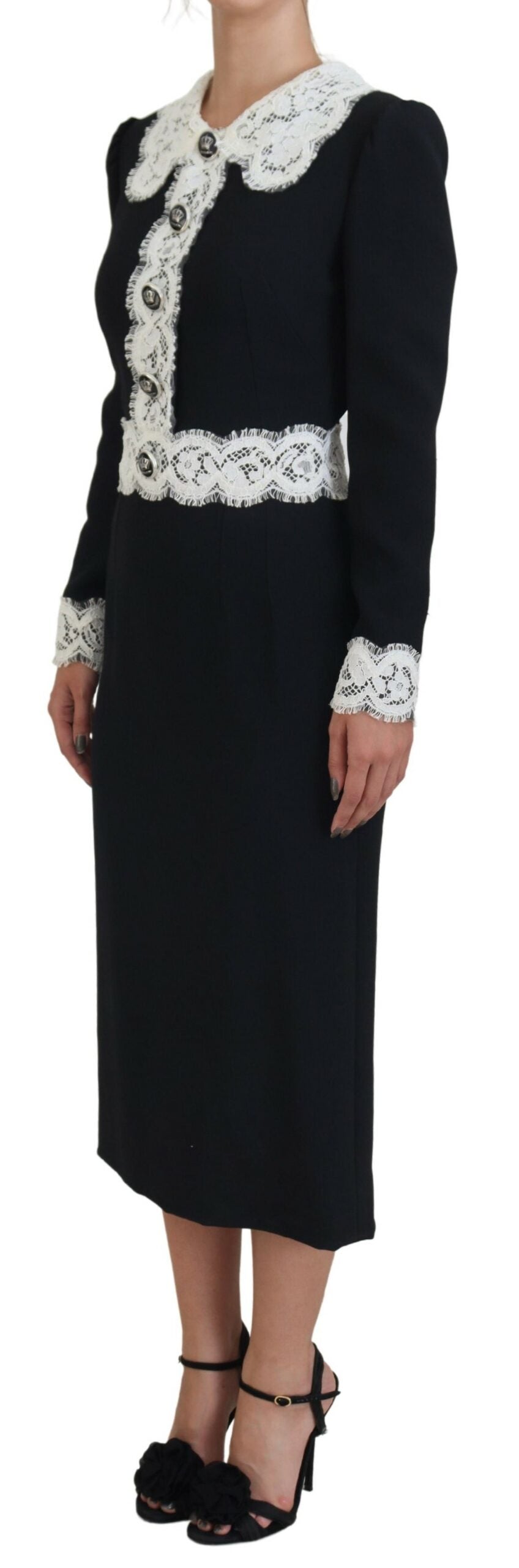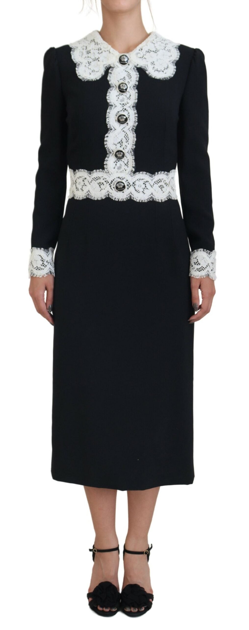 Step into timeless sophistication with this stunning Dolce & Gabbana long sleeves midi dress. Crafted in Italy, this dress portrays the height of Italian tailoring with its sleek design, classic black and white color palette, and figure-flattering silhouette. A perfect blend of fabrics ensures comfort with a touch of stretch, ready to turn heads at any event.