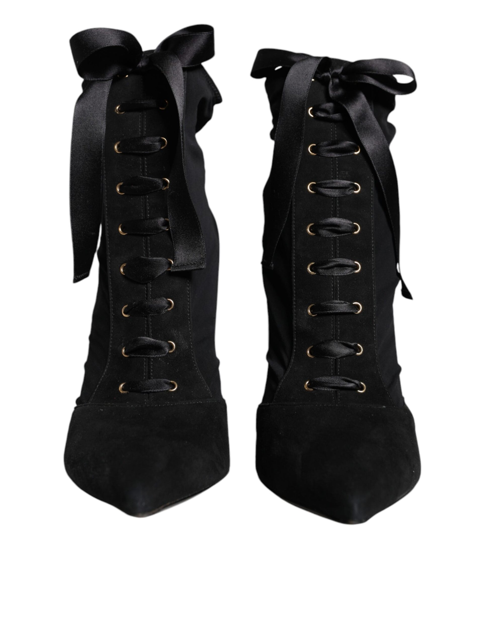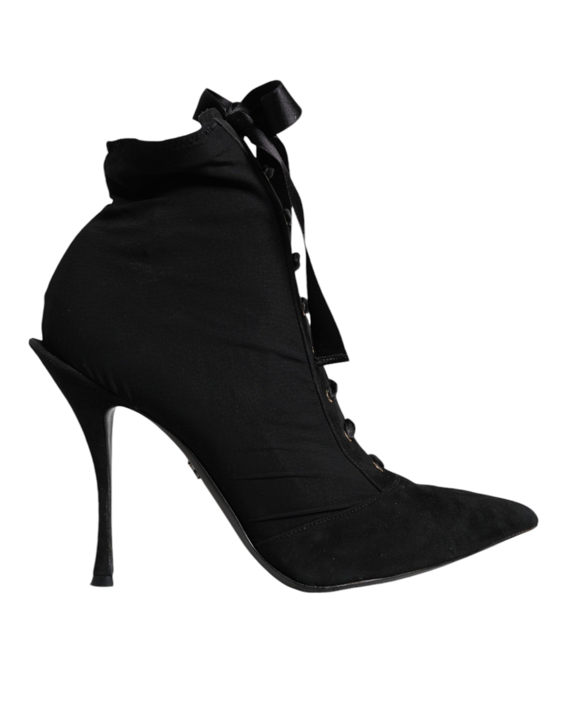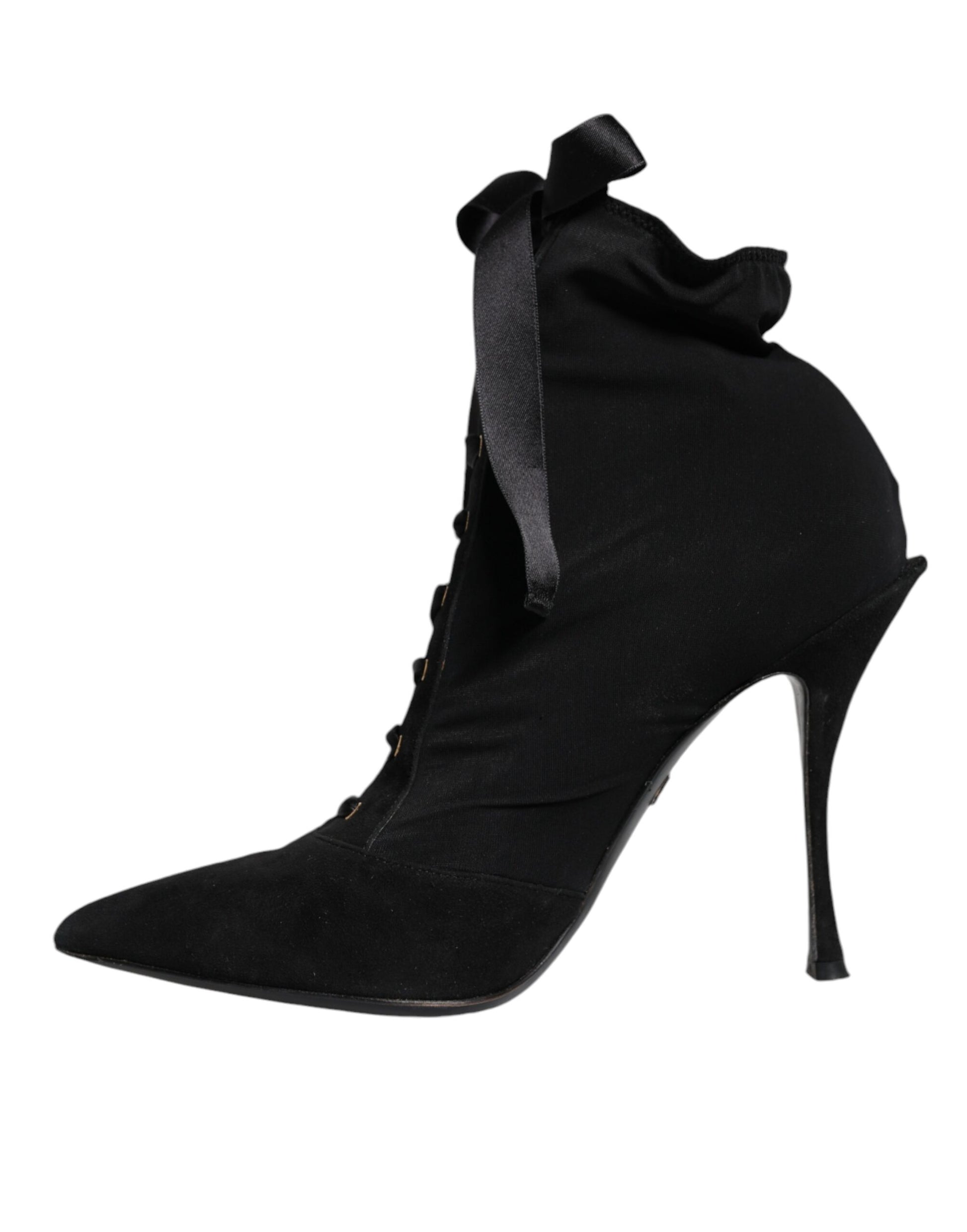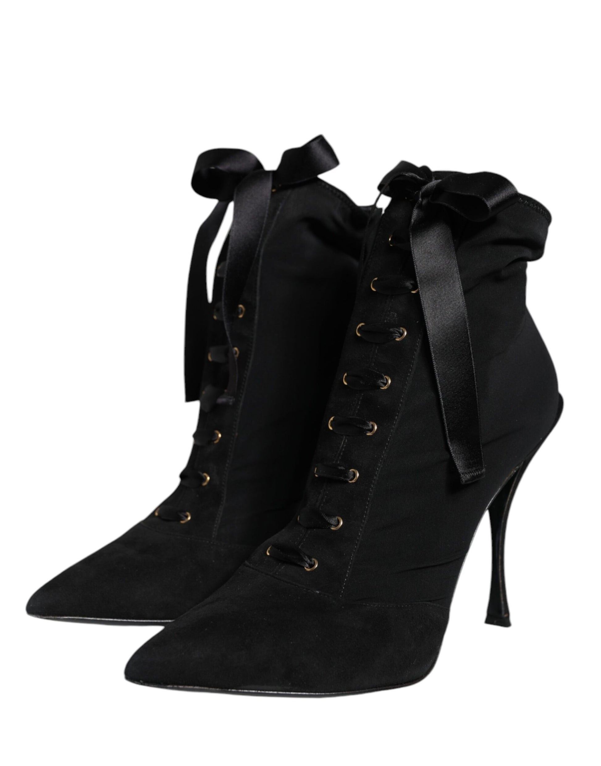 Gorgeous preowned with tags, 100% Authentic Dolce & Gabbana ankle boots feature a pointed toe, a lace-up front fastening and an ankle length.