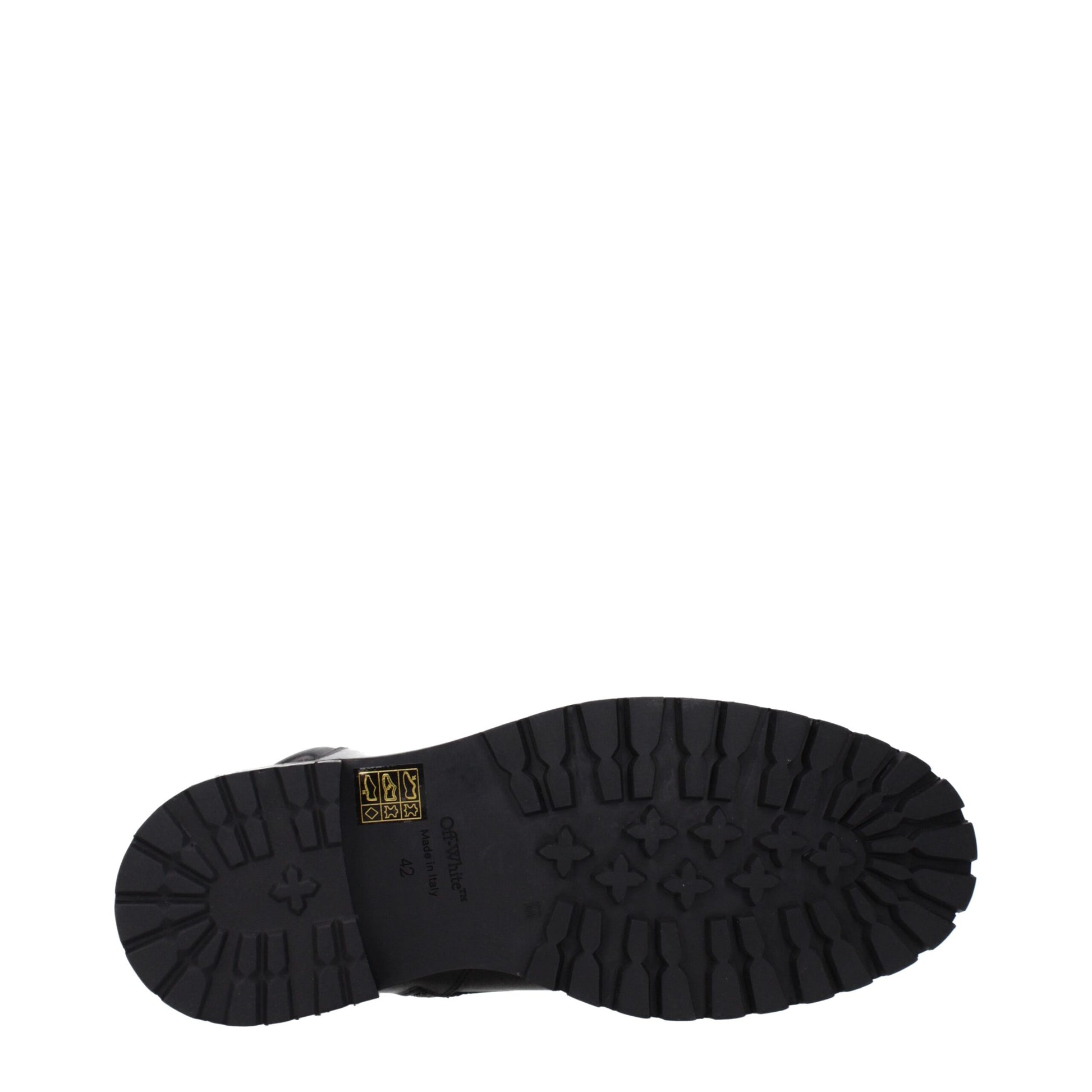 The product with MPN OMID025LEA0011010 and code F84974 leather in black is a ankle boots designed by Off-White . It has features like side logo, vintage effect, aged effect .