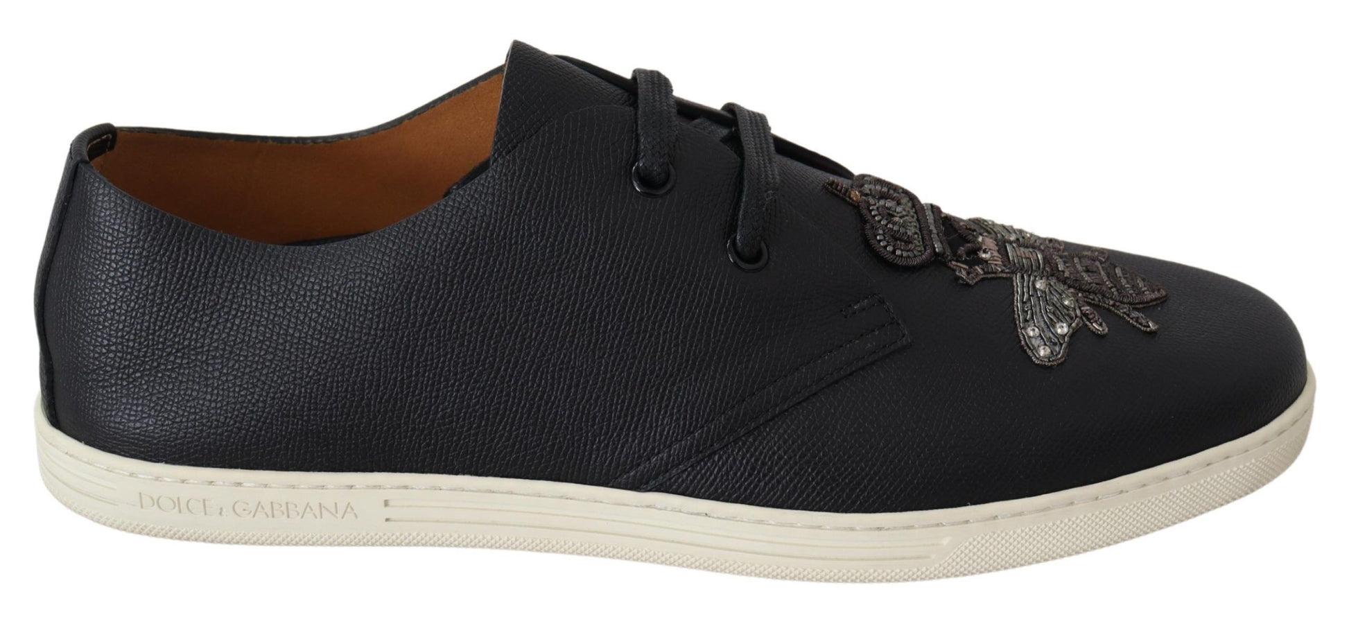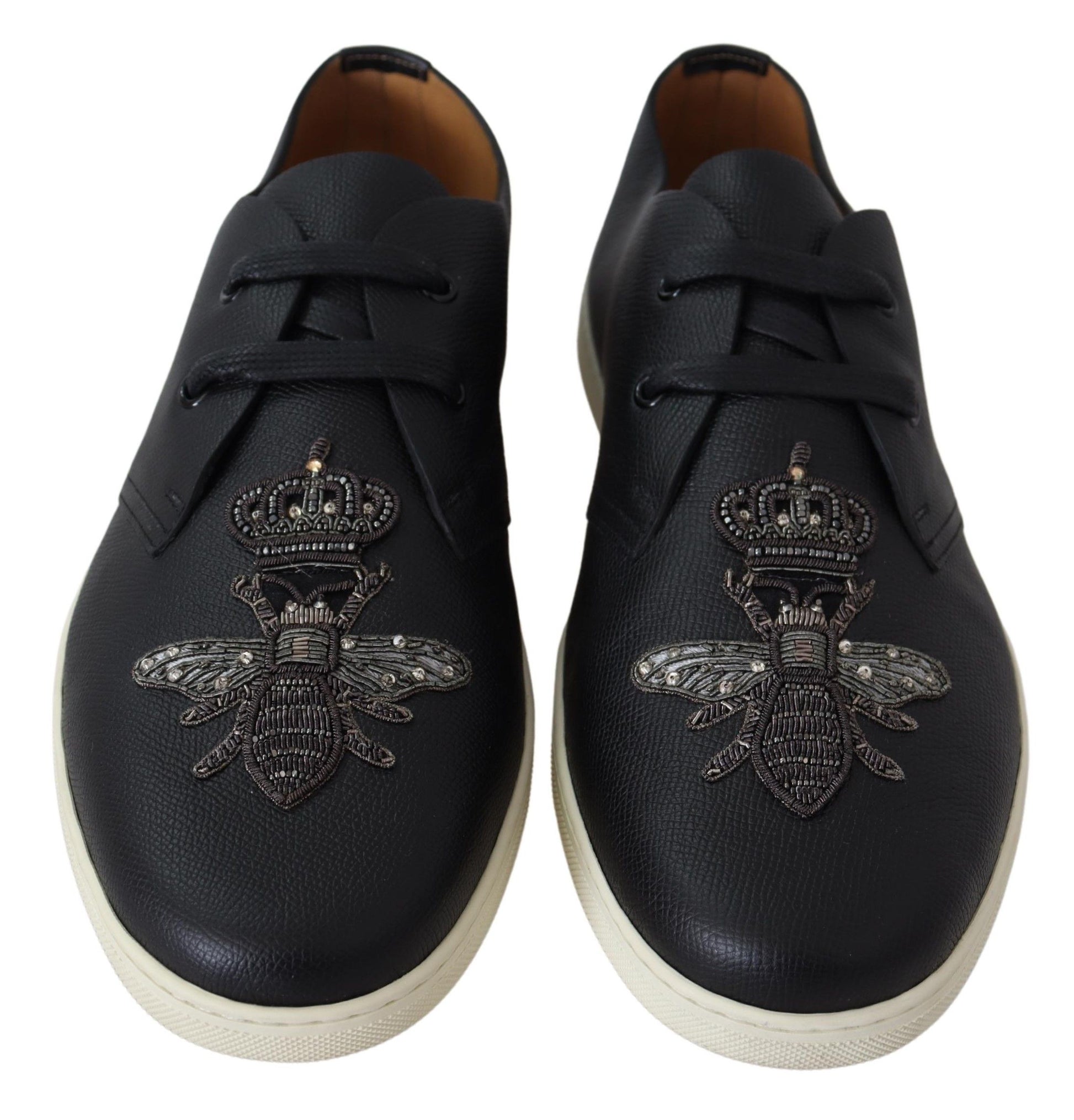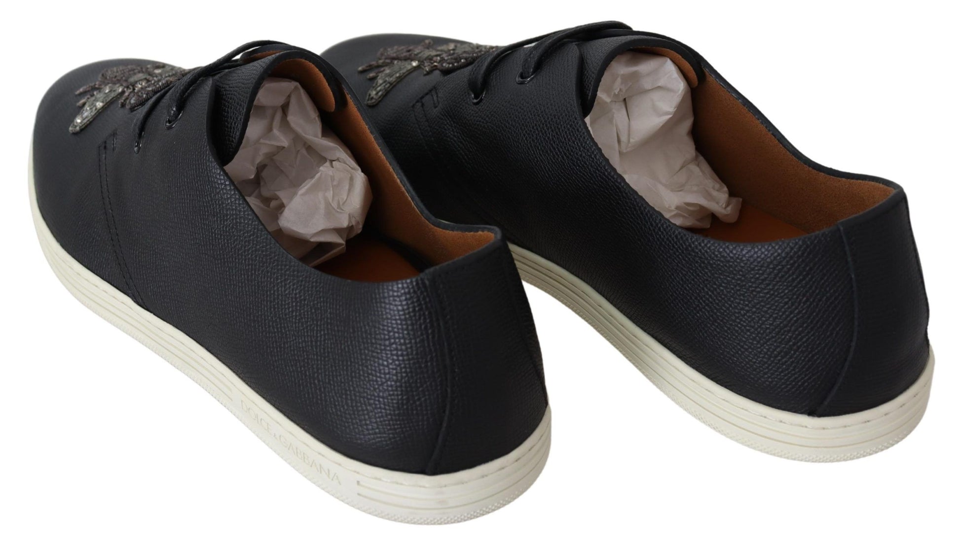 Step into luxury with these exquisite Dolce & Gabbana Men’s Casual Sneakers. Crafted with the finest leather and detailed with a unique crown bee embroidery, these sneakers merge comfort with high-end style. A rubber sole ensures durability and grip, making them perfect for any occasion. Made in Italy, they exemplify the pinnacle of craftsmanship and exclusivity. Add a touch of elegance to your wardrobe with these iconic sneakers, complete with notable logo details.