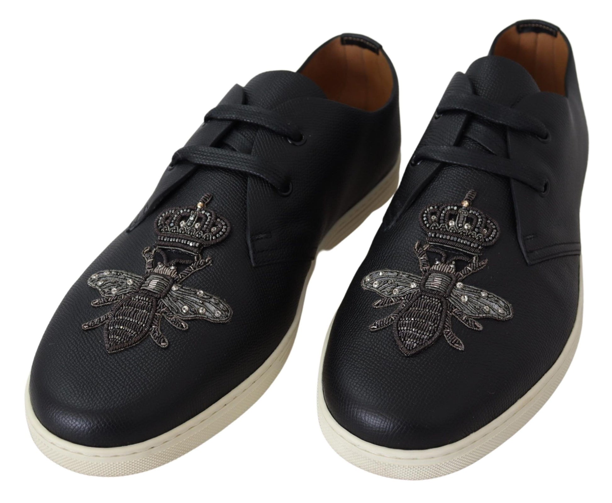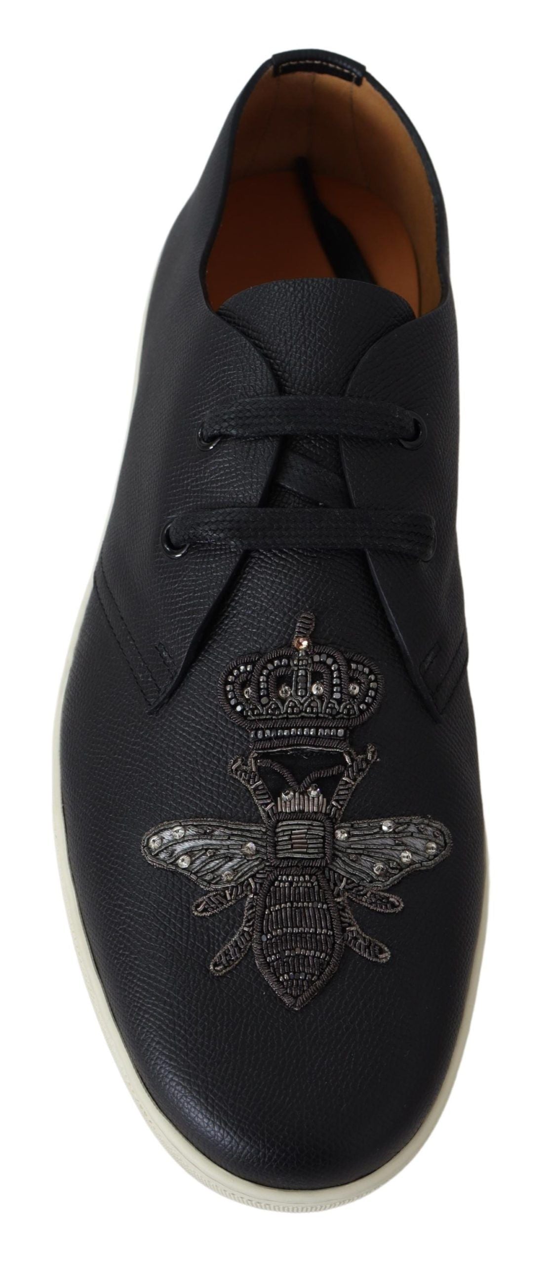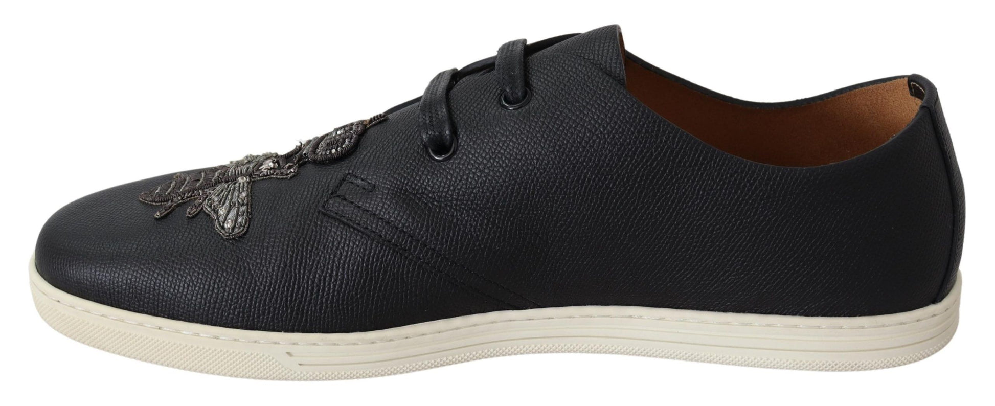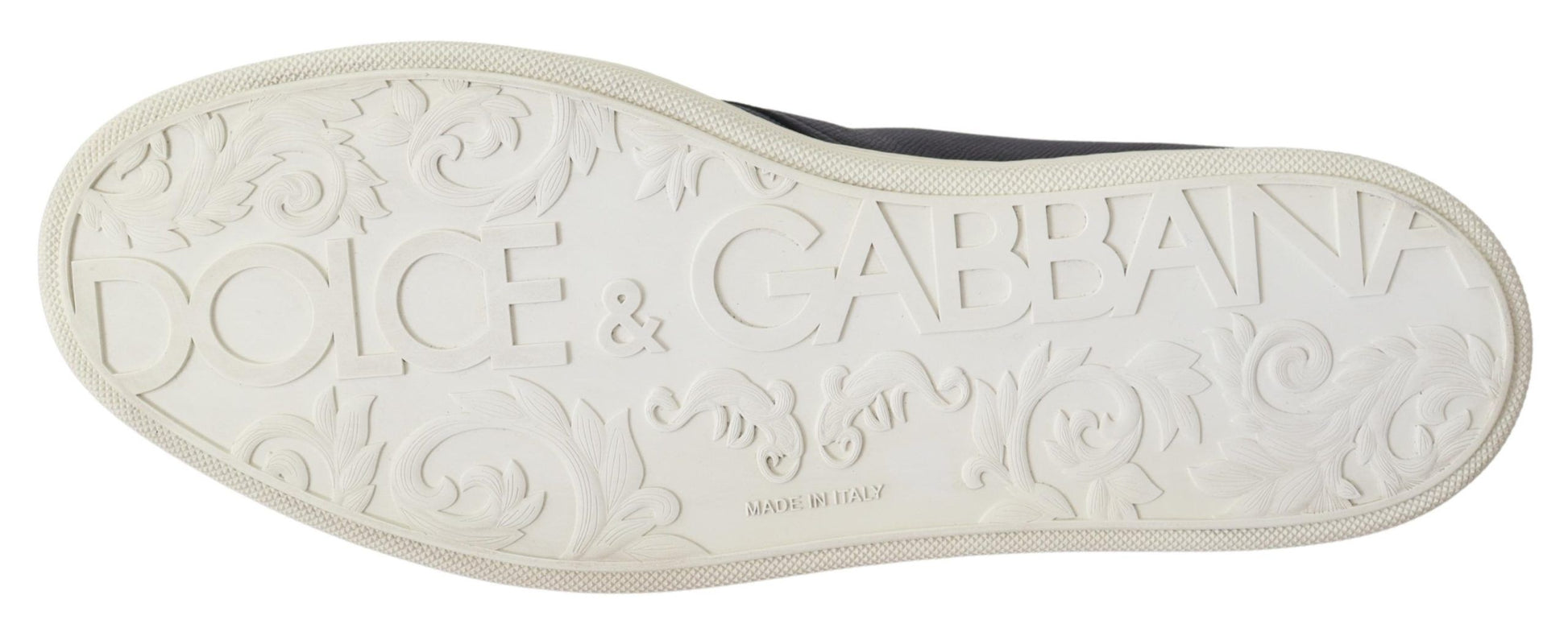 Step into luxury with these exquisite Dolce & Gabbana Men’s Casual Sneakers. Crafted with the finest leather and detailed with a unique crown bee embroidery, these sneakers merge comfort with high-end style. A rubber sole ensures durability and grip, making them perfect for any occasion. Made in Italy, they exemplify the pinnacle of craftsmanship and exclusivity. Add a touch of elegance to your wardrobe with these iconic sneakers, complete with notable logo details.