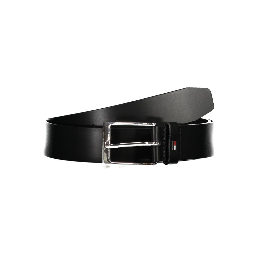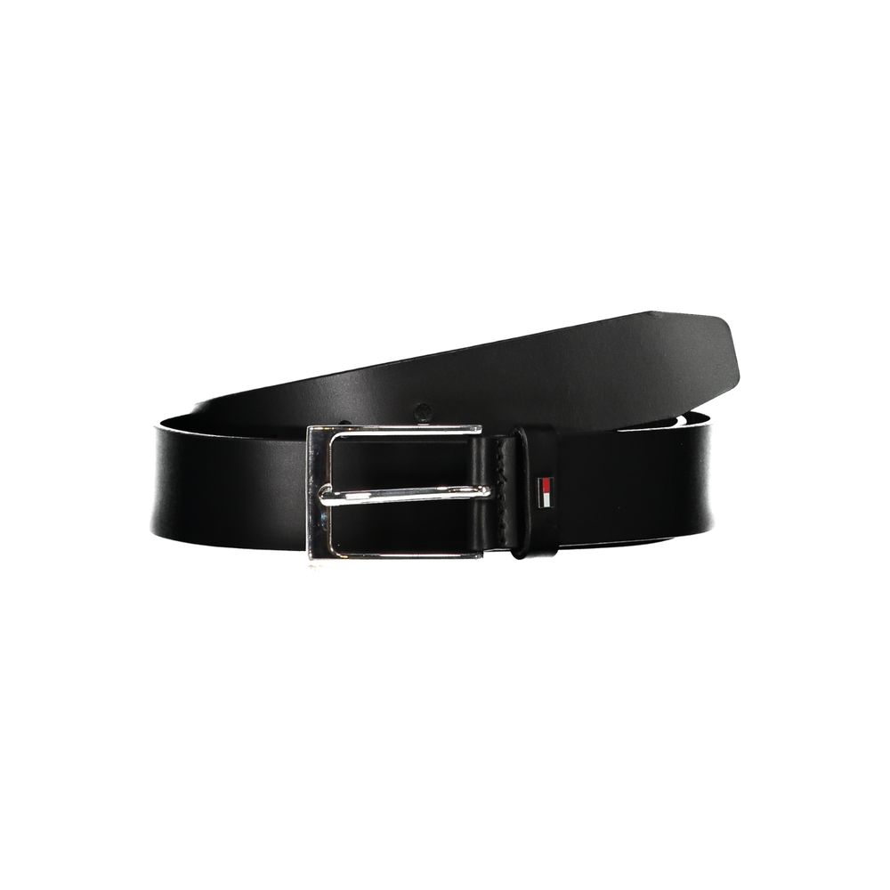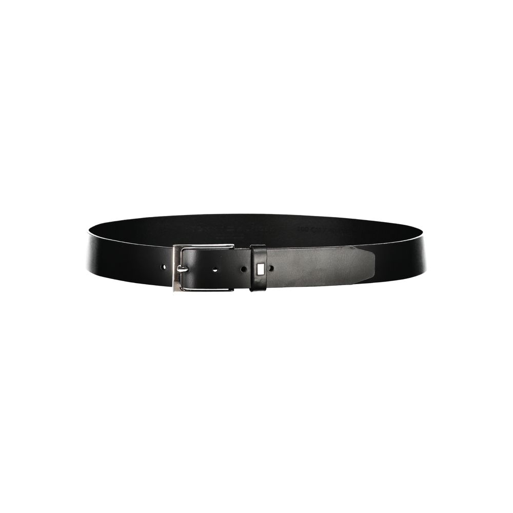 Elevate your style with the sophistication of a Tommy Hilfiger leather belt. This sleek black accessory features a sturdy metal buckle and is proudly adorned with the brand’s iconic logo, offering a perfect blend of elegance and durability.