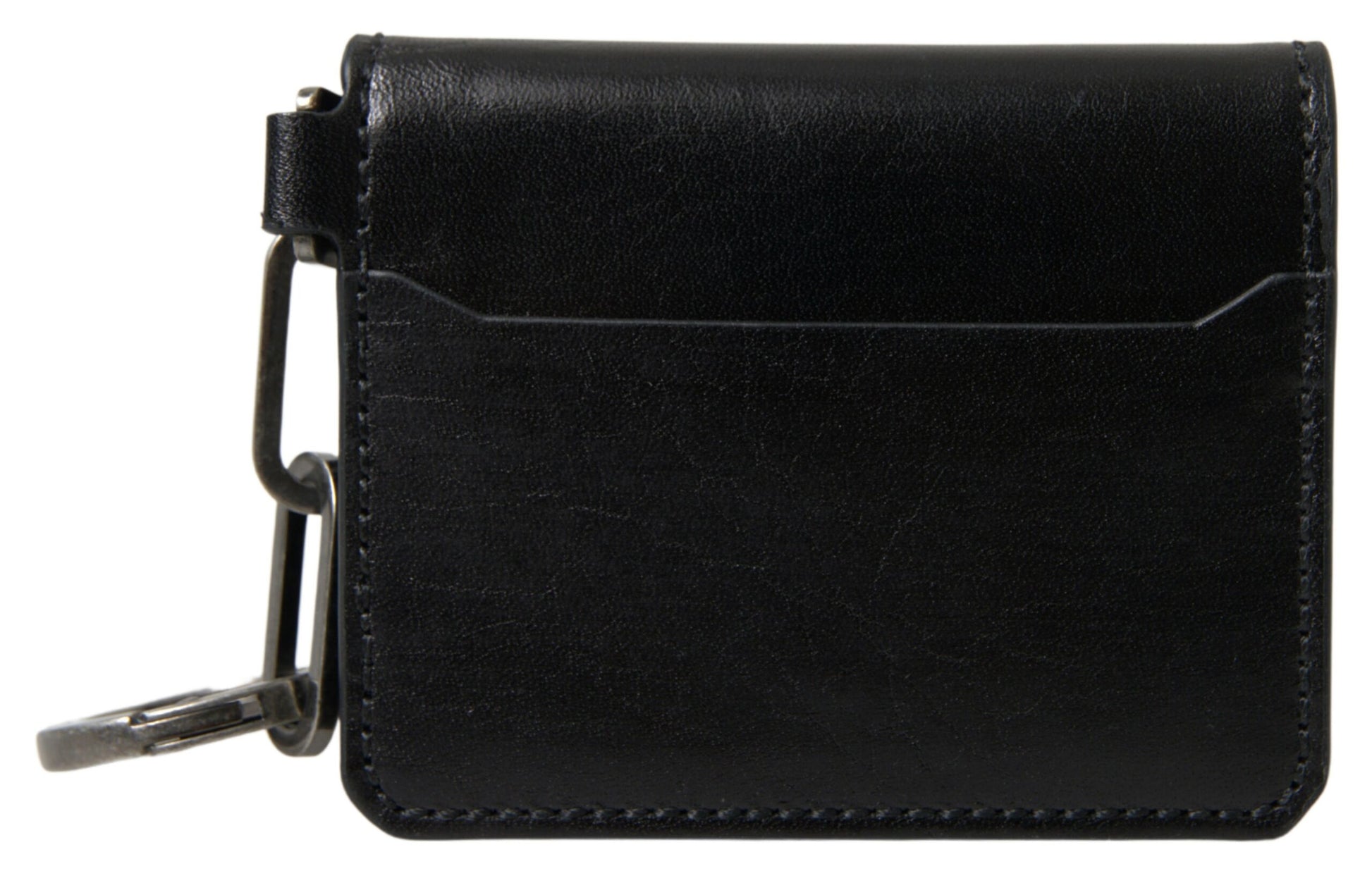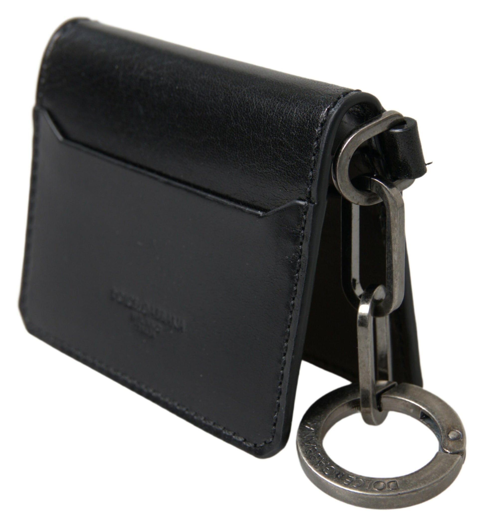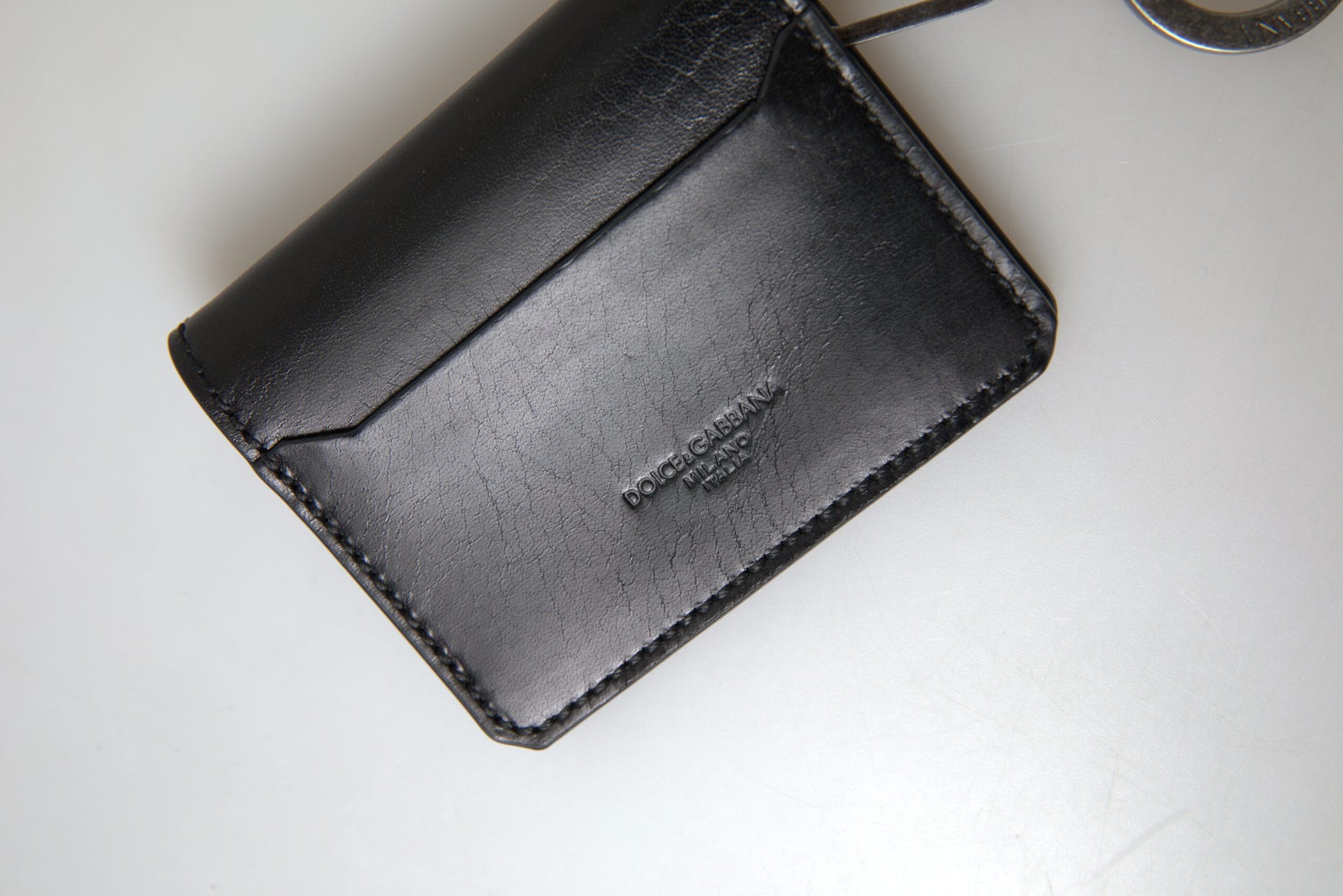 Indulge in the epitome of sophistication with our elegant black leather card holder from Dolce & Gabbana. Perfectly blending style with practicality, this authentic piece, new with tags, is accentuated with an embossed logo for a distinctive touch of luxury. Its compact design ensures your cards are organized and secure, making it an ideal accessory for the discerning gentleman.
