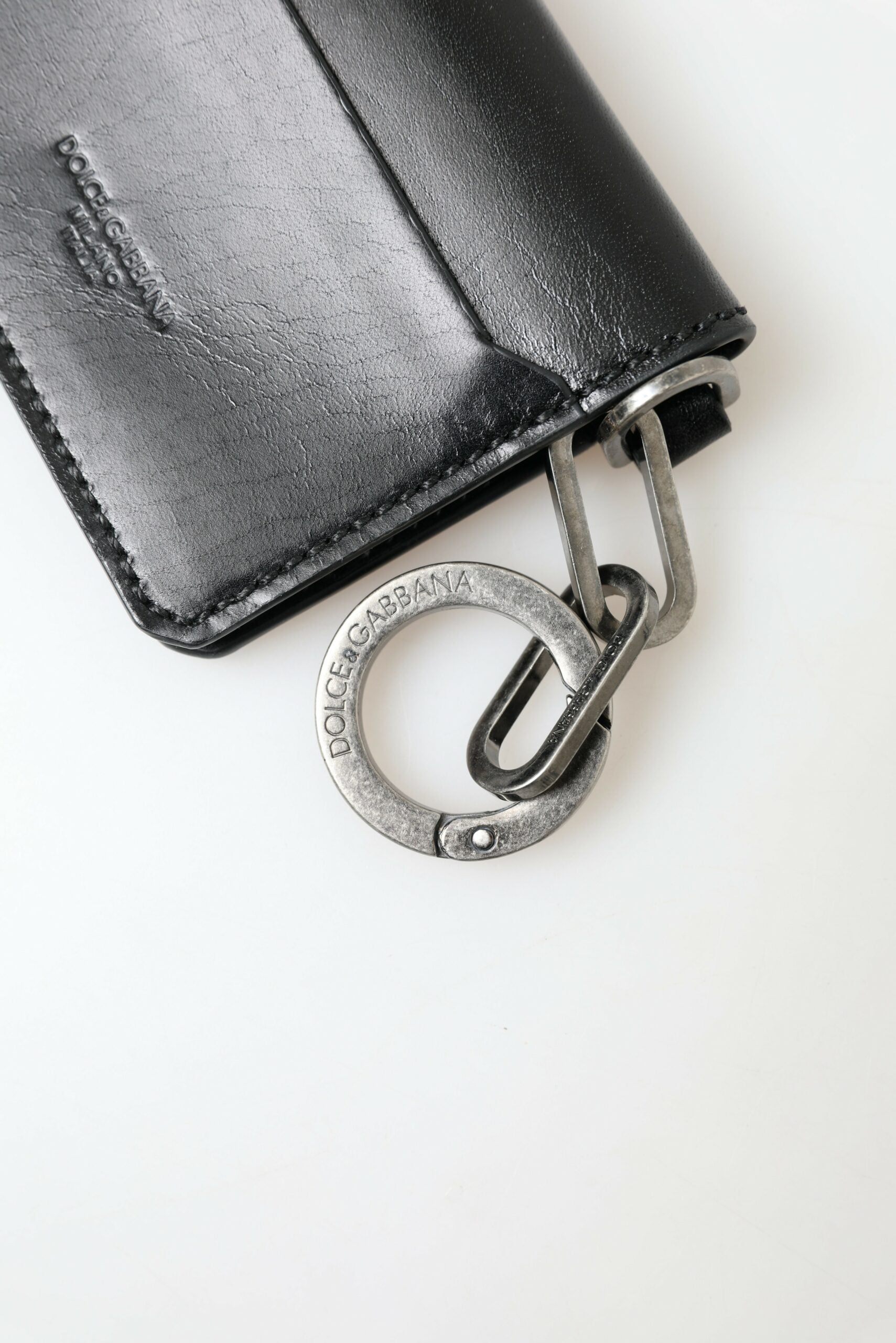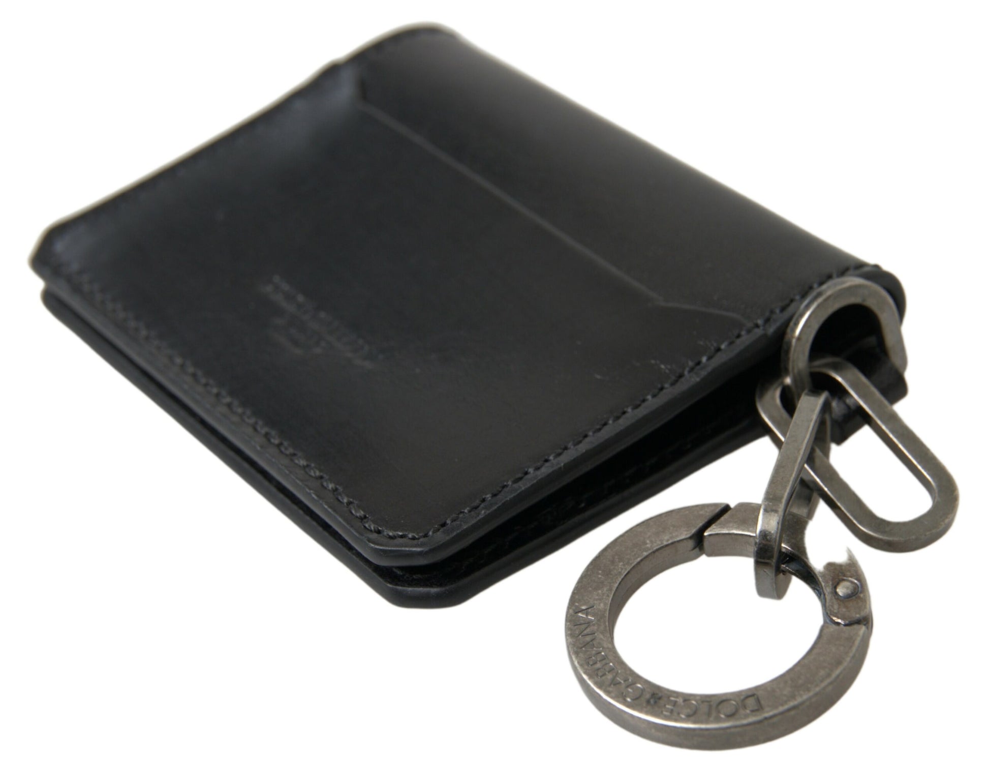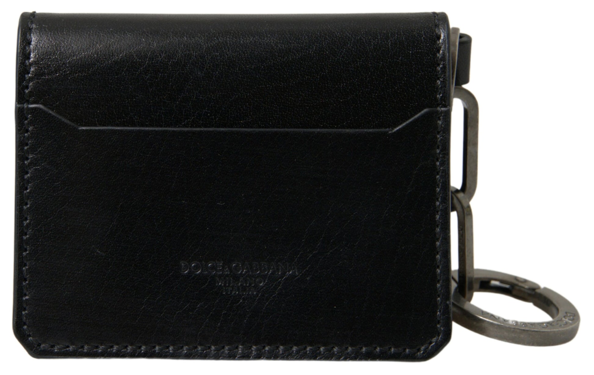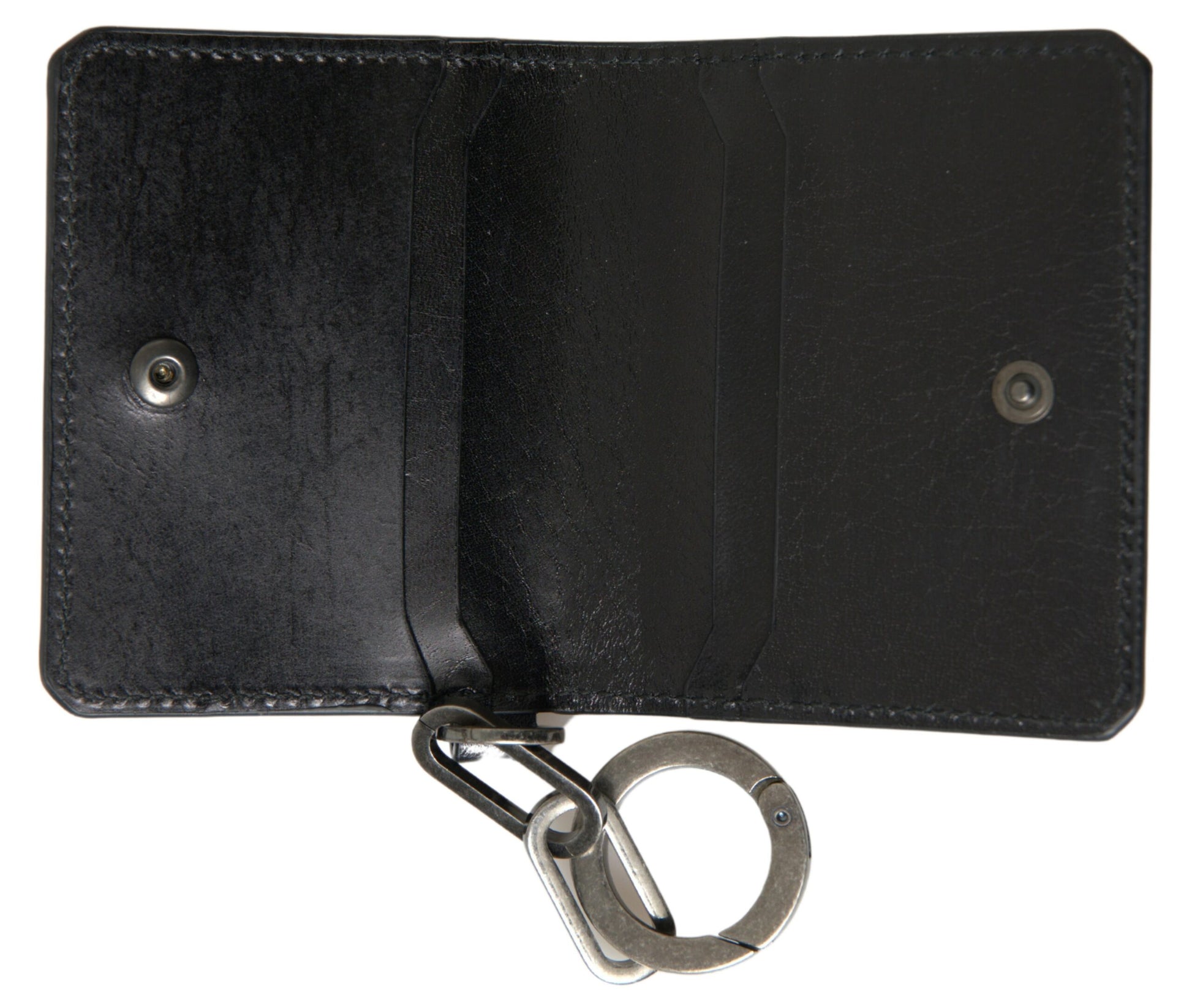 Indulge in the epitome of sophistication with our elegant black leather card holder from Dolce & Gabbana. Perfectly blending style with practicality, this authentic piece, new with tags, is accentuated with an embossed logo for a distinctive touch of luxury. Its compact design ensures your cards are organized and secure, making it an ideal accessory for the discerning gentleman.
