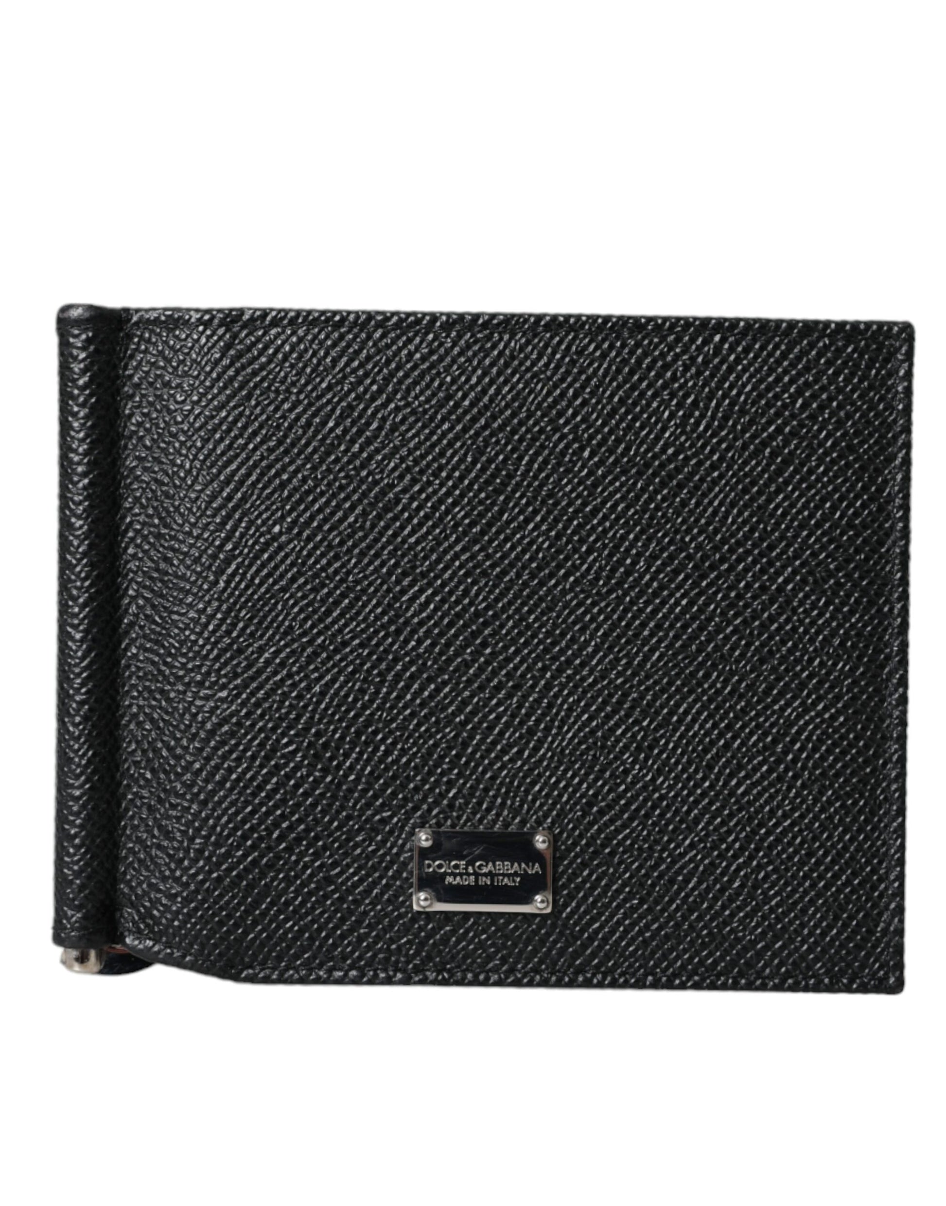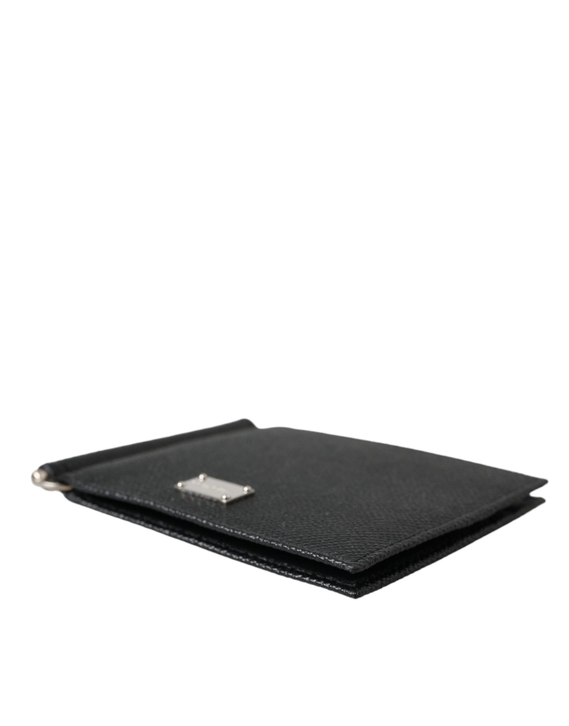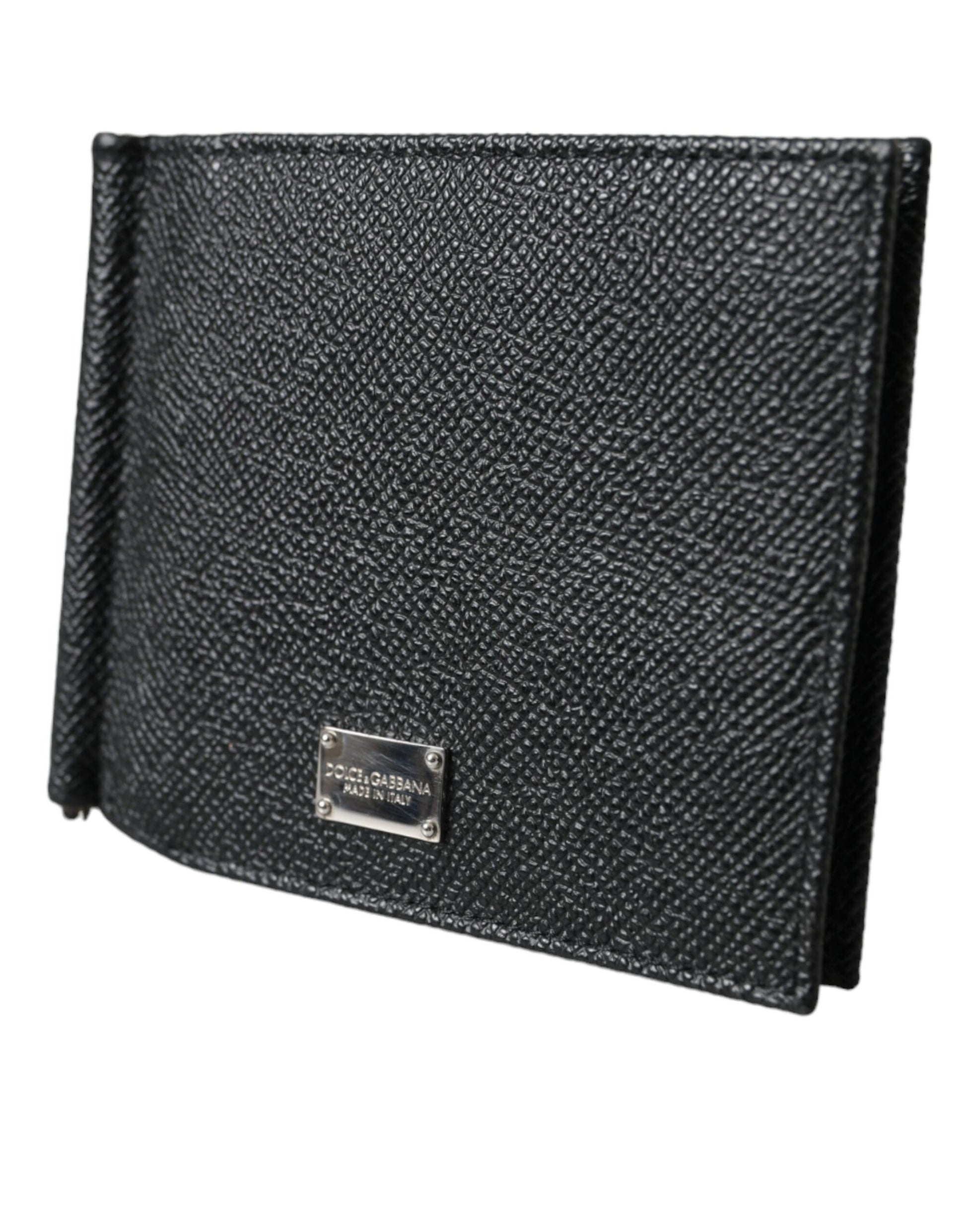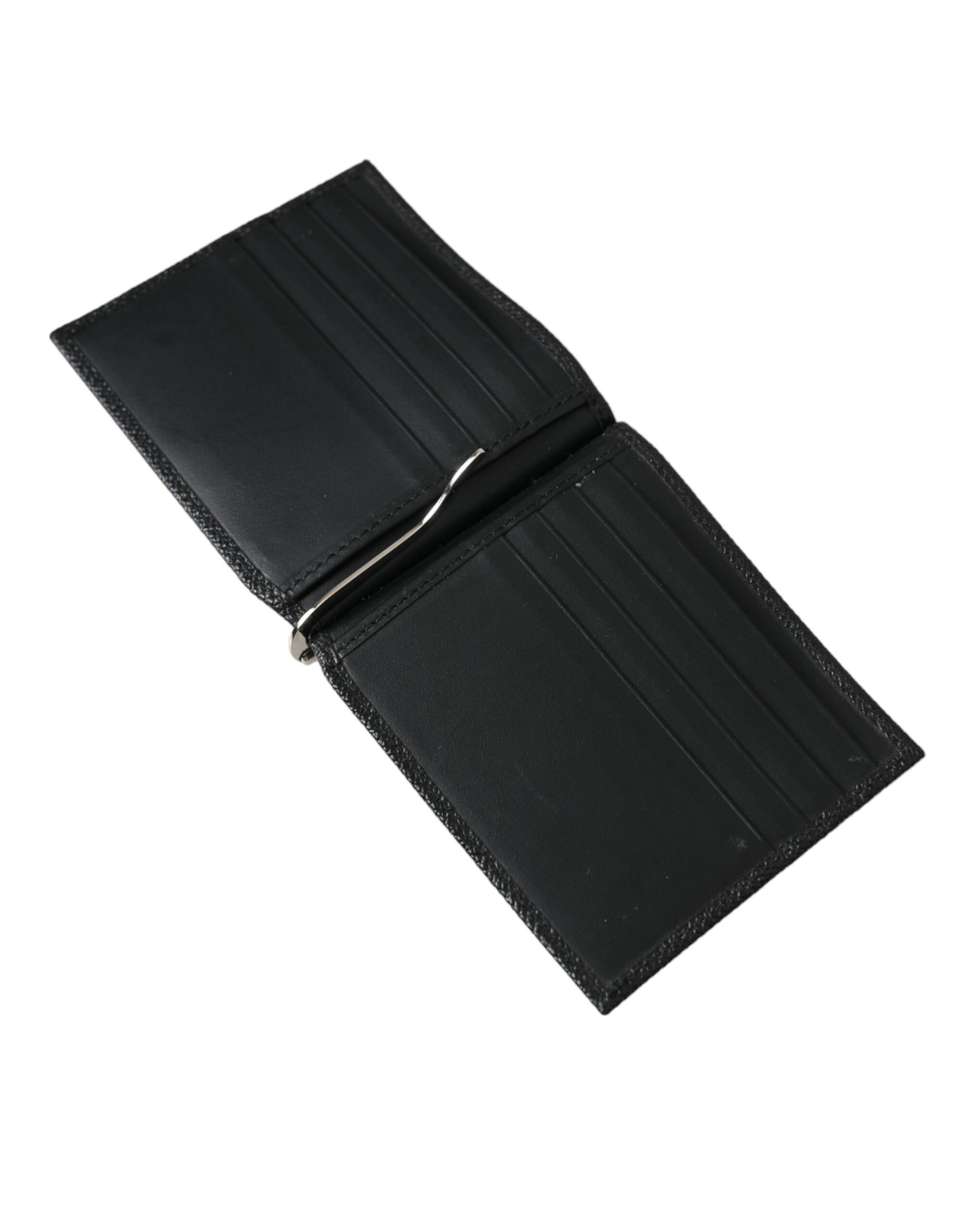 Black Leather Bifold Logo Plaque Card Holder Wallet
