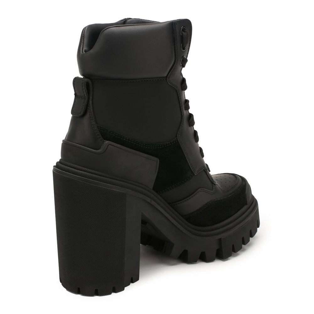 Step into luxury and style with these exquisite leather biker ankle boots, perfect for the fashion-forward individual. With a towering 13 cm heel and crafted suede details, these boots are sure to turn heads. Proudly made in Italy, they feature a durable rubber sole for excellent traction. Discover the blend of edgy design and sophisticated craftsmanship with these standout boots.