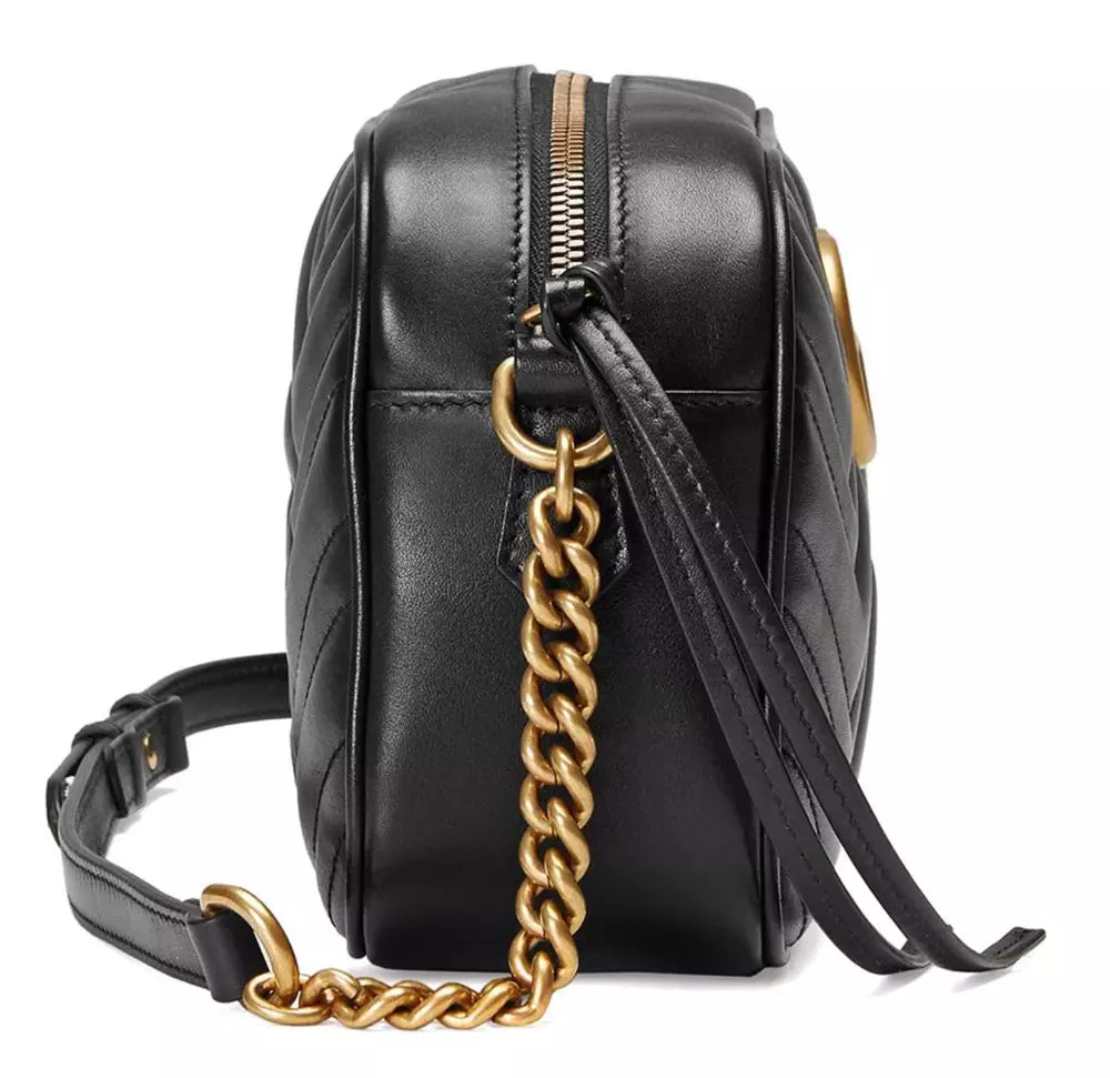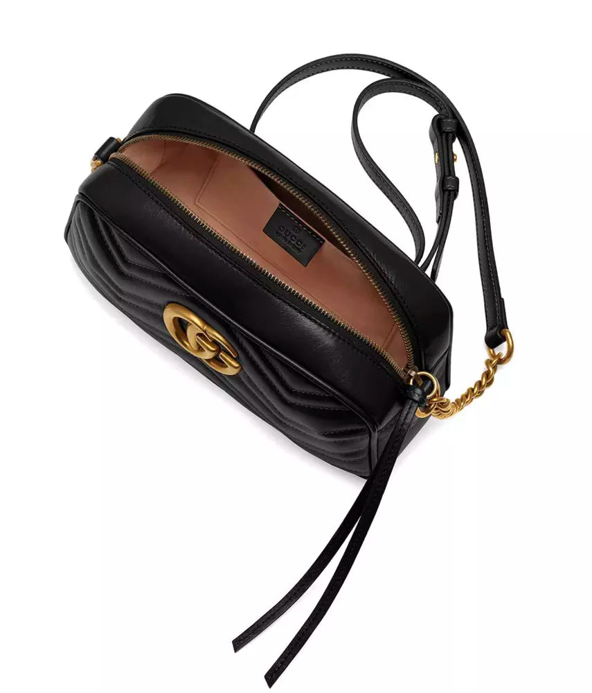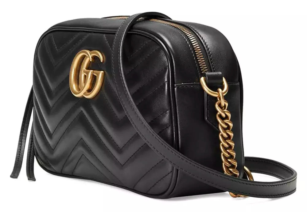 Indulge in the epitome of sophistication with this small, chevron quilted leather shoulder bag. Perfectly sized for elegance on the go, it features a sleek chain and leather strap and a secure zipper closure topped with an iconic Double G emblem. The distinctive quilted pattern with the GG monogram on the back adds a touch of luxury, making this piece a timeless accessory for any ensemble.